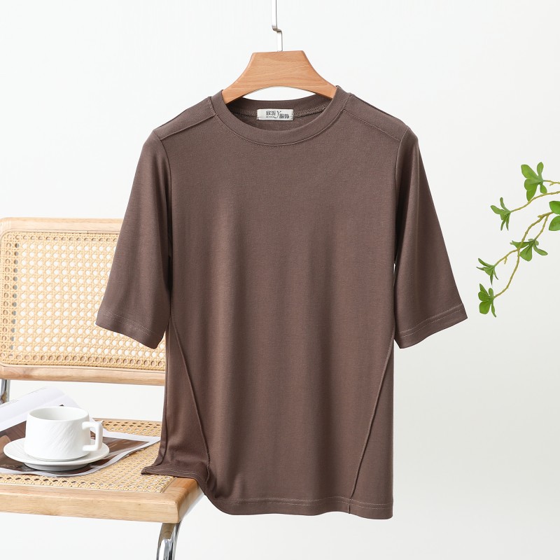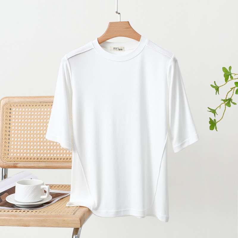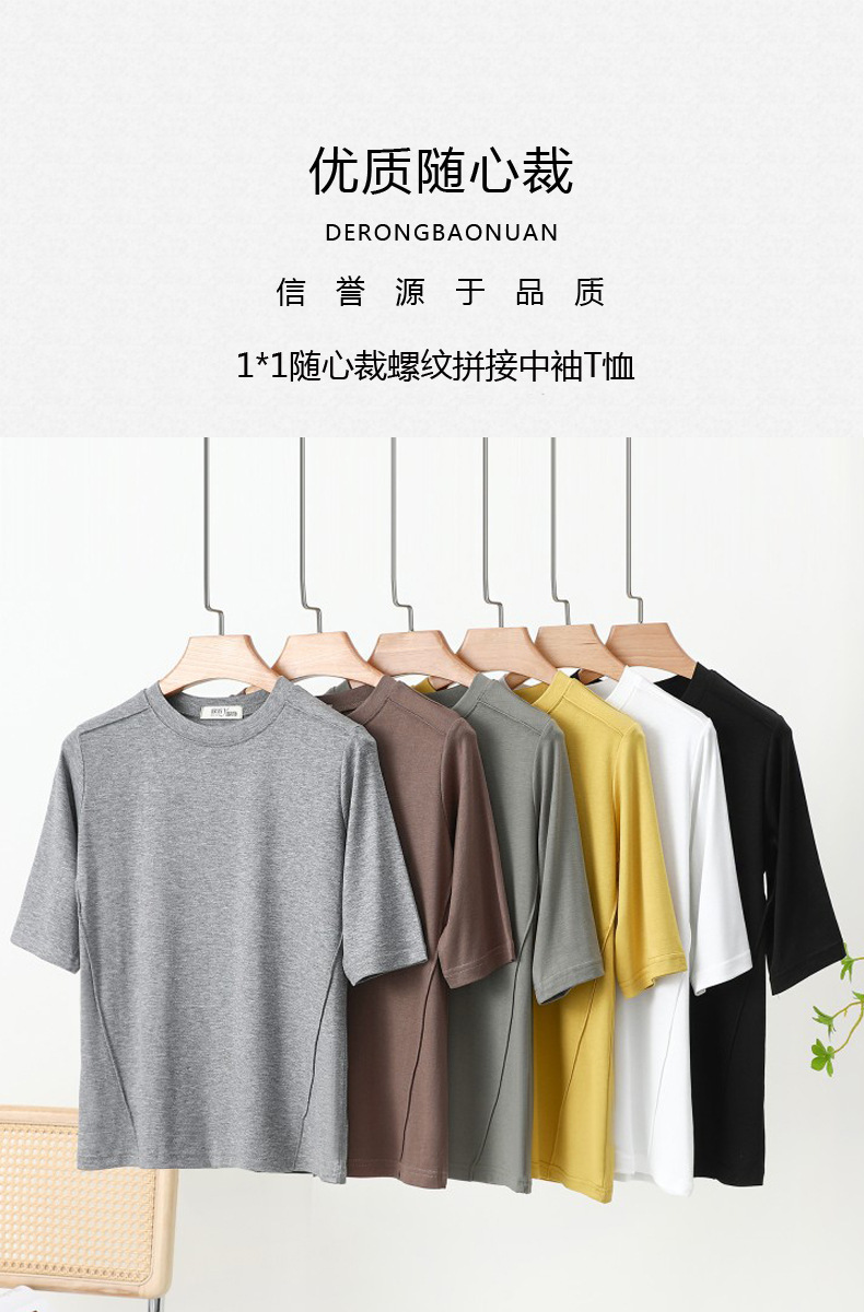 랜덤 스타일 스레드 미드 슬리브 티셔츠 여성용 여름 내복 슬리밍 베이스 셔츠 디자인 서양식 반소매 베이스 셔츠 트렌디스토어 가기