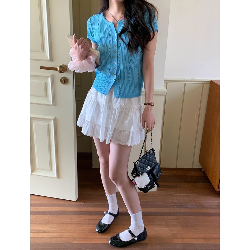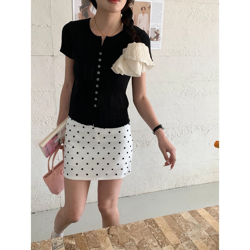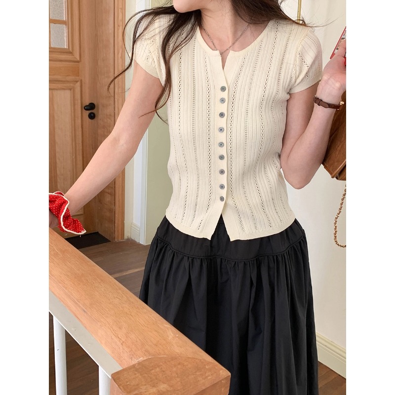 3 번째 아침 틈새 디자인 프랑스 컷 아웃 V-넥 슬림 핏 짧은 소매 니트 카디건 ZY2886스토어 가기