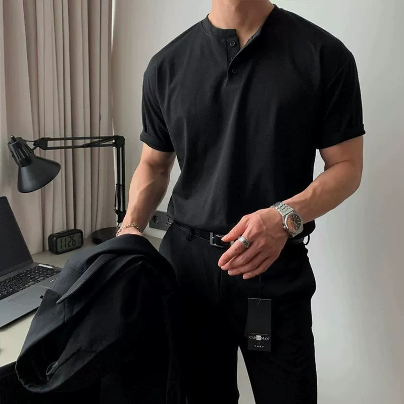 미국 헤비 티셔츠 여름 반팔 남자 폴로 셔츠 성숙한 꾸준한 타이트 커프스 피트니스 스포츠 레저 헨리 칼라스토어 가기