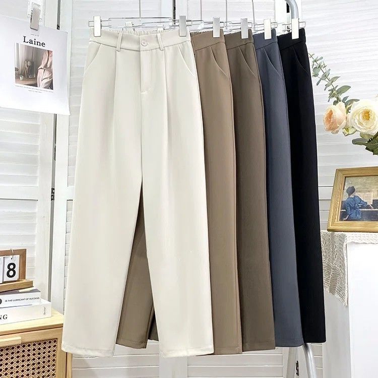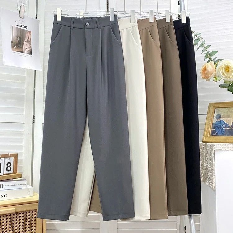 세트 파이프 바지 2025 새로운 슬림 핏 루즈 도스 캐주얼 스트레이트 바지 여성을위한 올 매치 9 포인트 할란 세트 바지스토어 가기