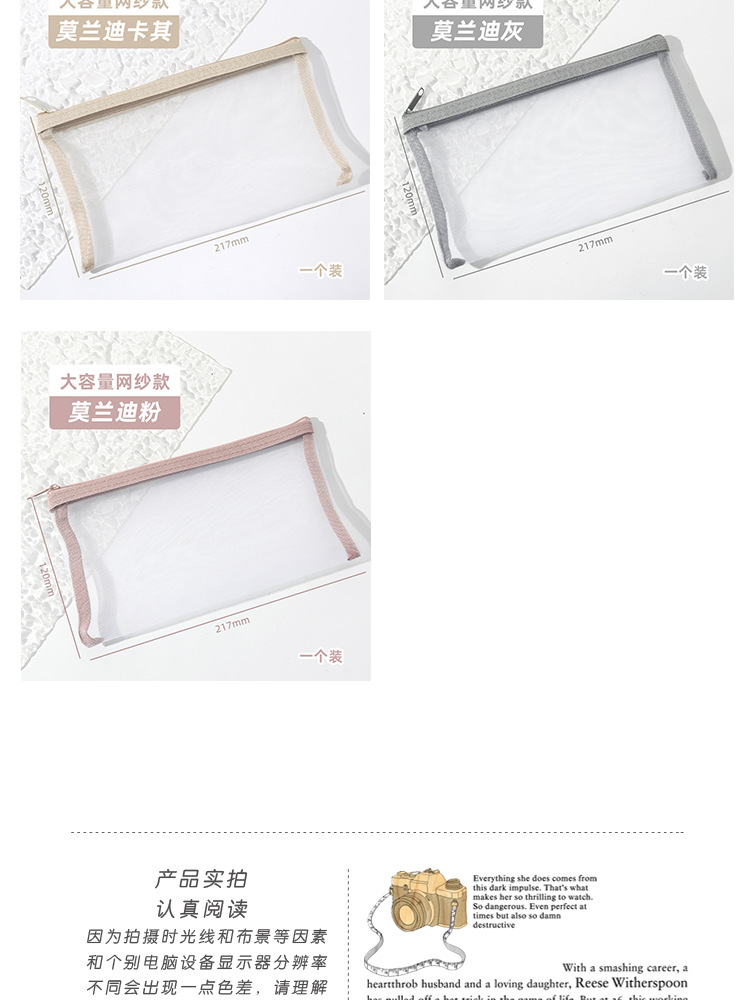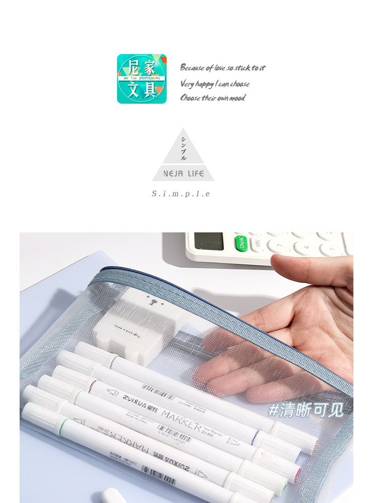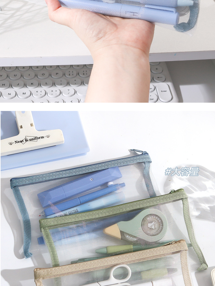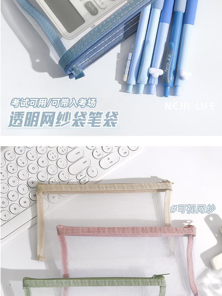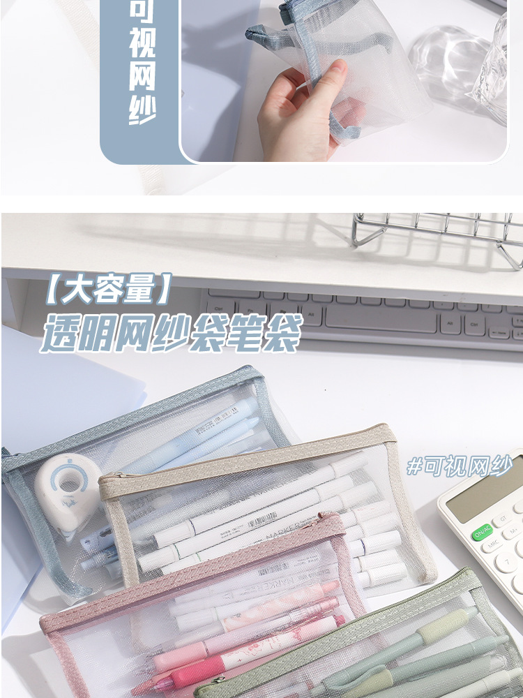 학생 시험을위한 간단한 투명 메쉬 연필 가방 보관 가방 특수 휴대용 연필 가방 대용량 문구 가방 도매