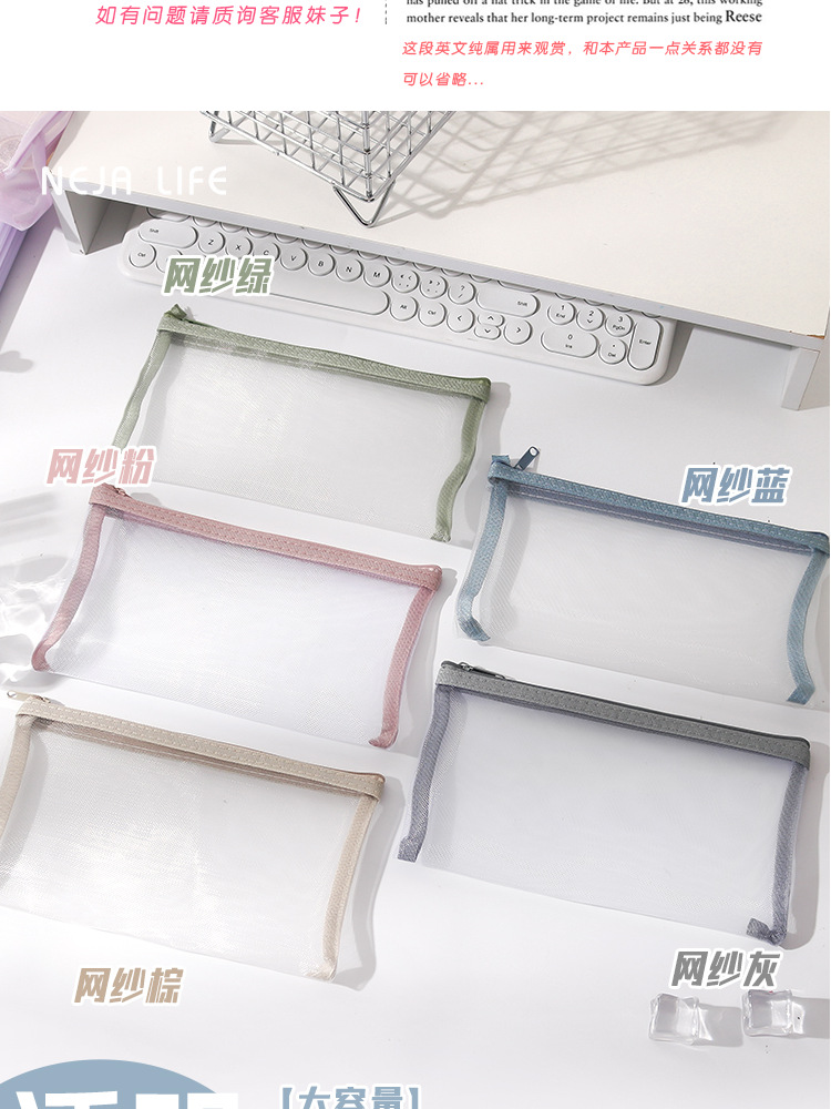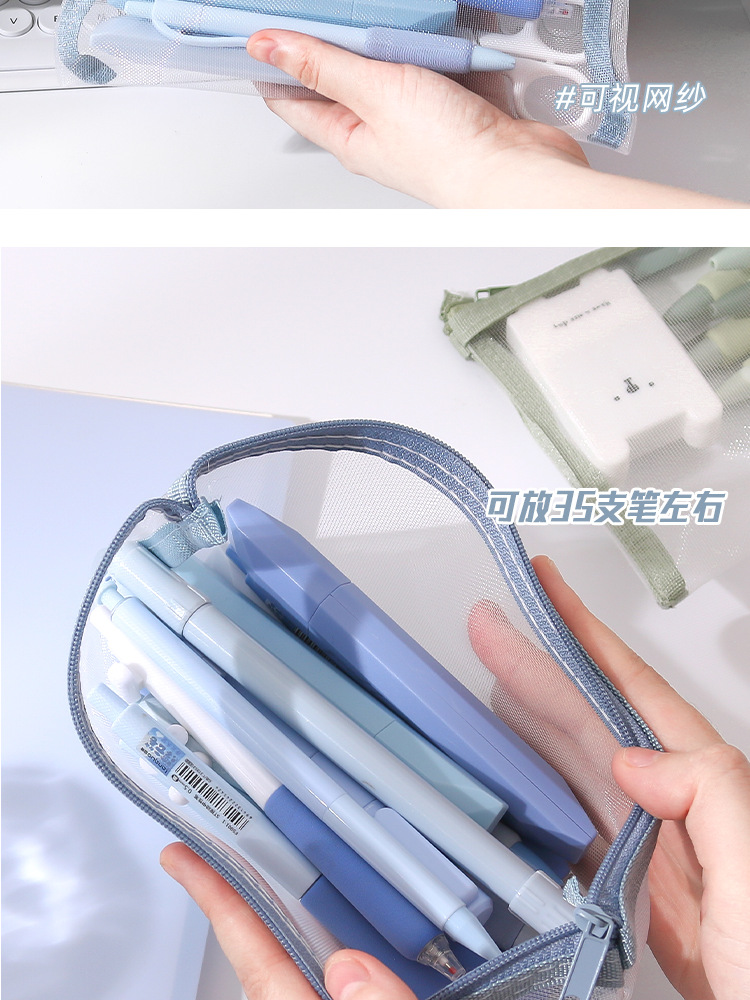 학생 시험을위한 간단한 투명 메쉬 연필 가방 보관 가방 특수 휴대용 연필 가방 대용량 문구 가방 도매스토어 가기