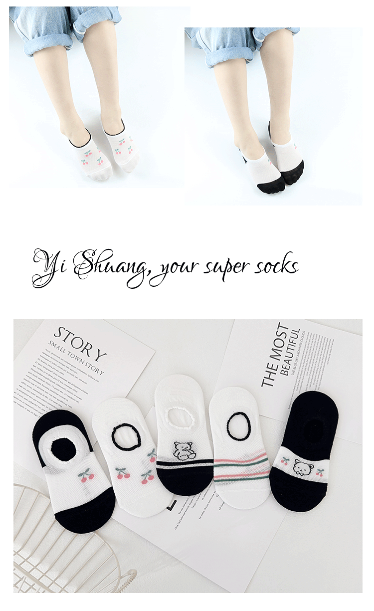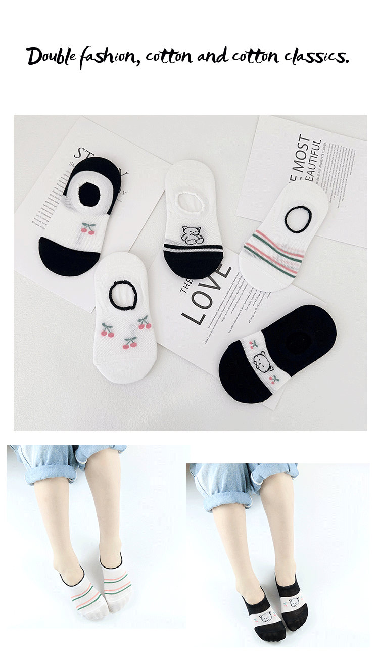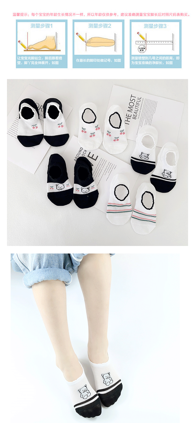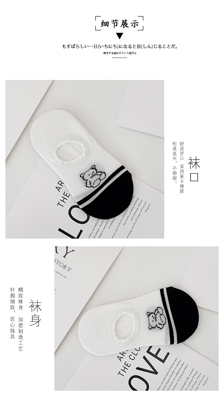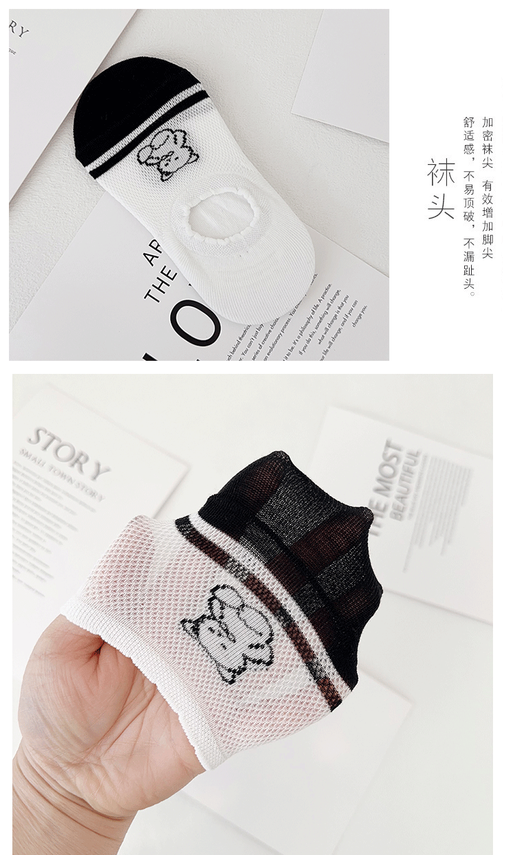 이족 쌍 어린이 양말 여름 메쉬 만화 곰 보트 양말 빗 코튼 소녀 흑백 얕은 입 보이지 않는 양말스토어 가기