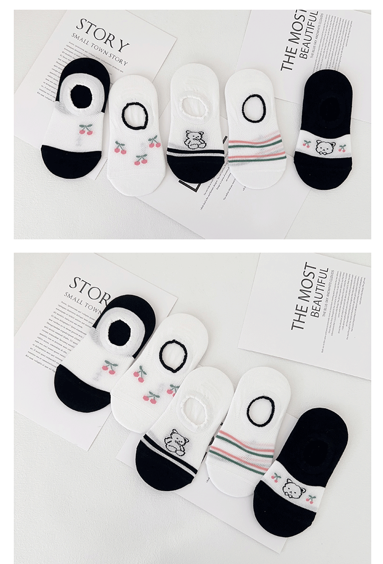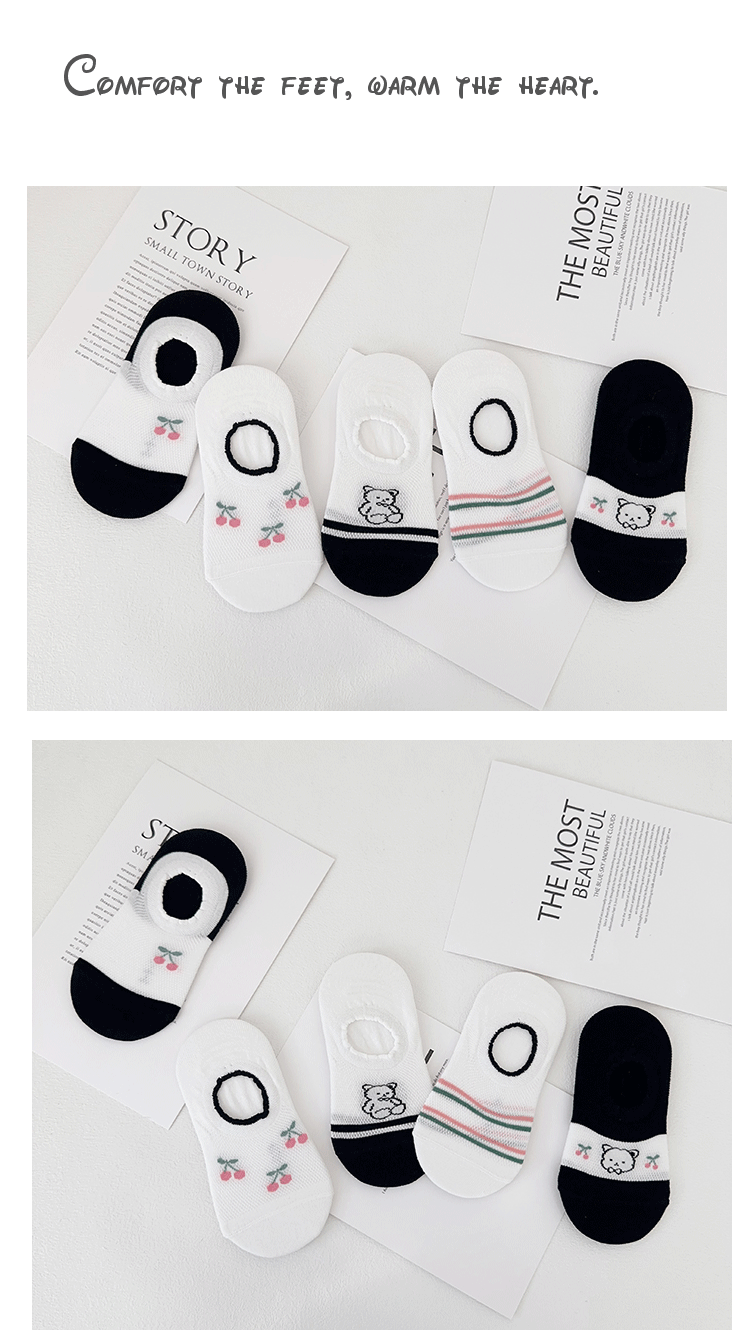 이족 쌍 어린이 양말 여름 메쉬 만화 곰 보트 양말 빗 코튼 소녀 흑백 얕은 입 보이지 않는 양말