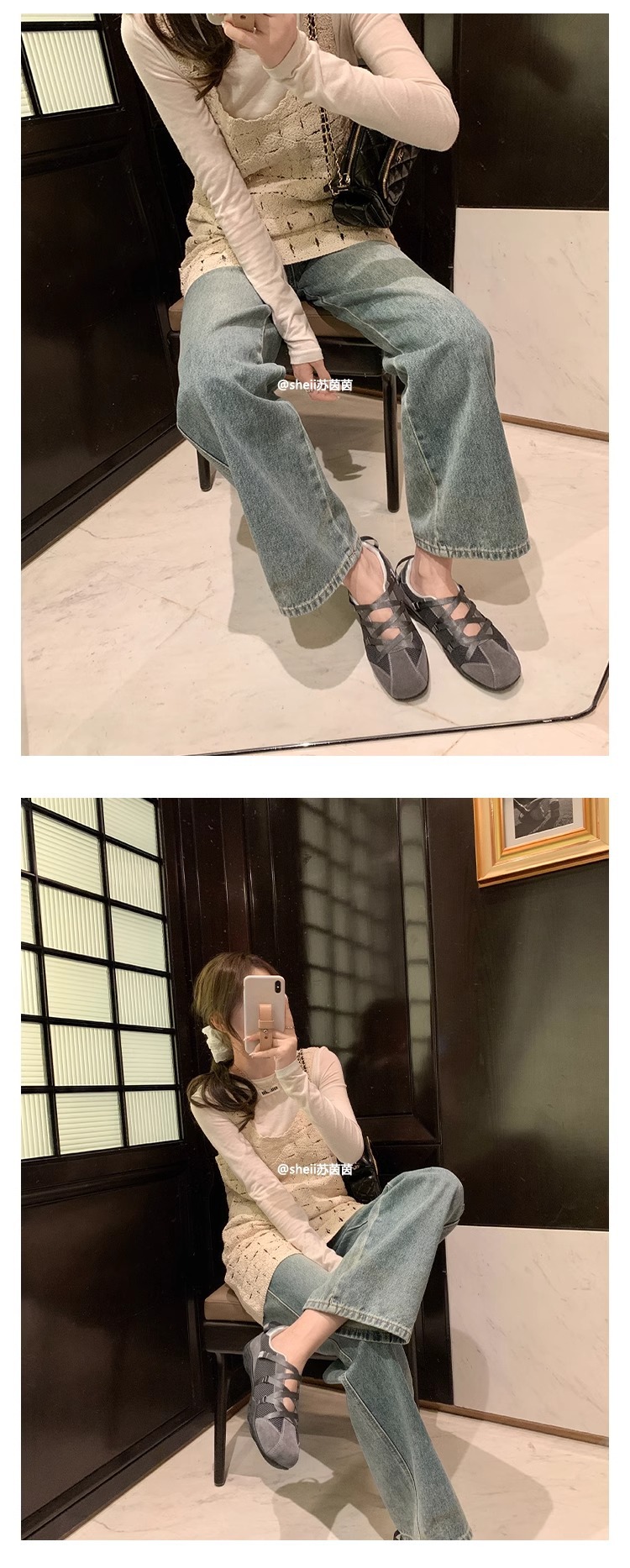 [셰이이수인인] 한국 블로거 ~ 크로스벨트 기능발레단 메리 제인 캐주얼 신발 여성 운동화