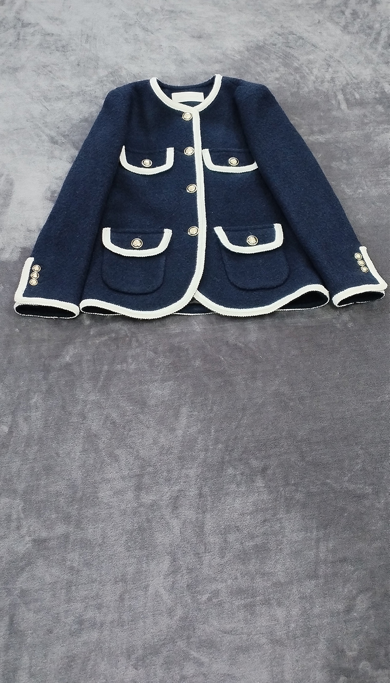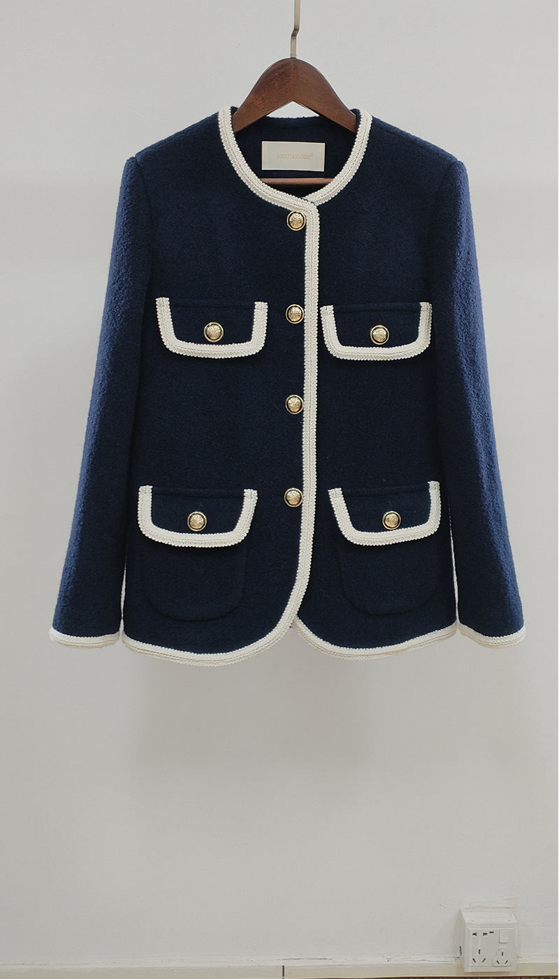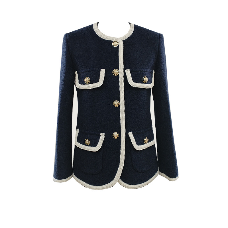 2025 가을과 겨울 새로운 여성 다크 블루 복고풍 대비 컬러 레이스 코트 사교계 트위드 작은 향기로운 스타일 코트 여성스토어 가기