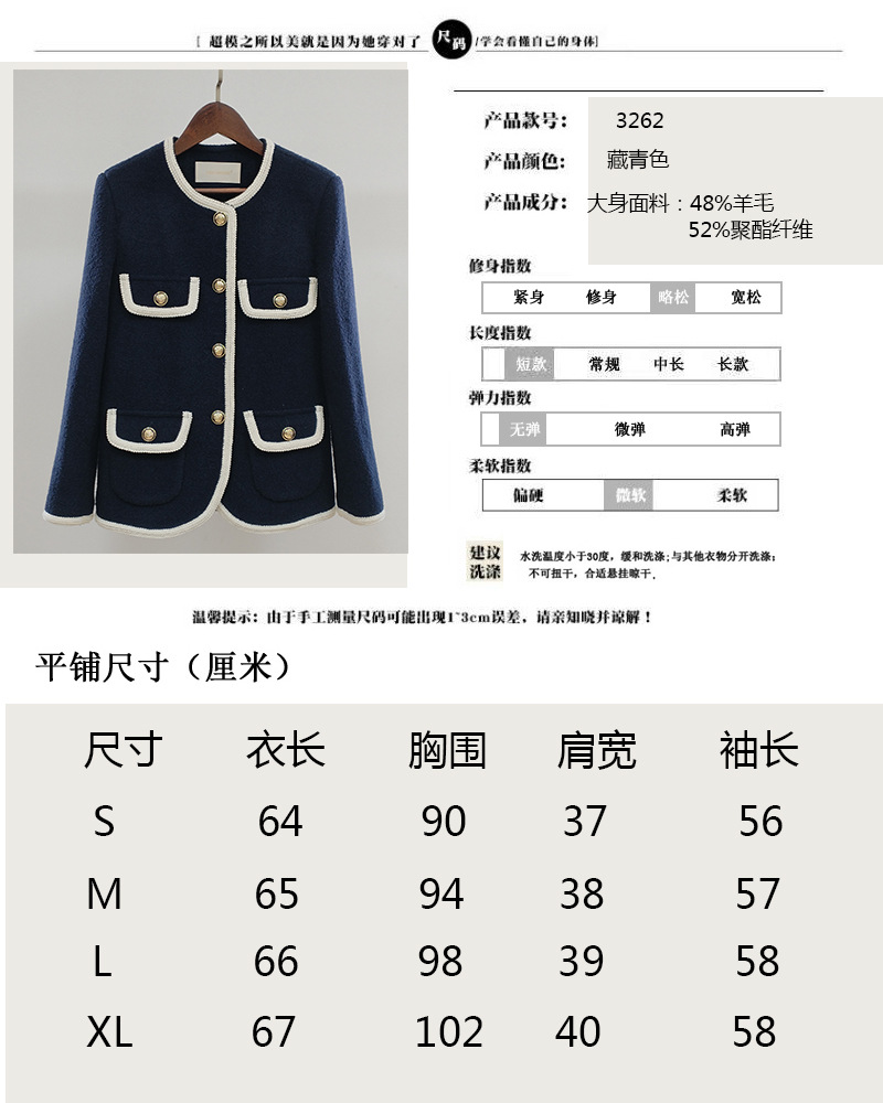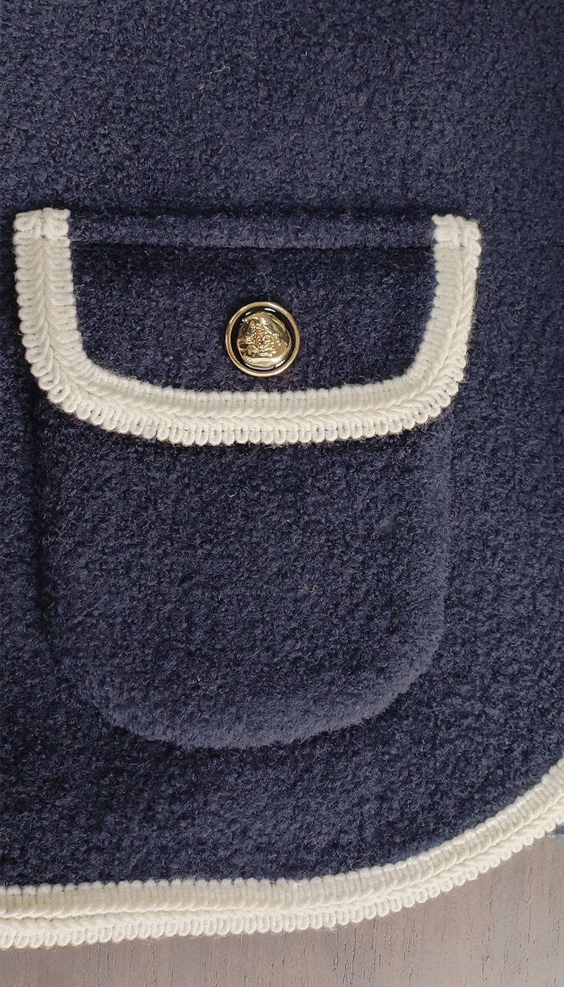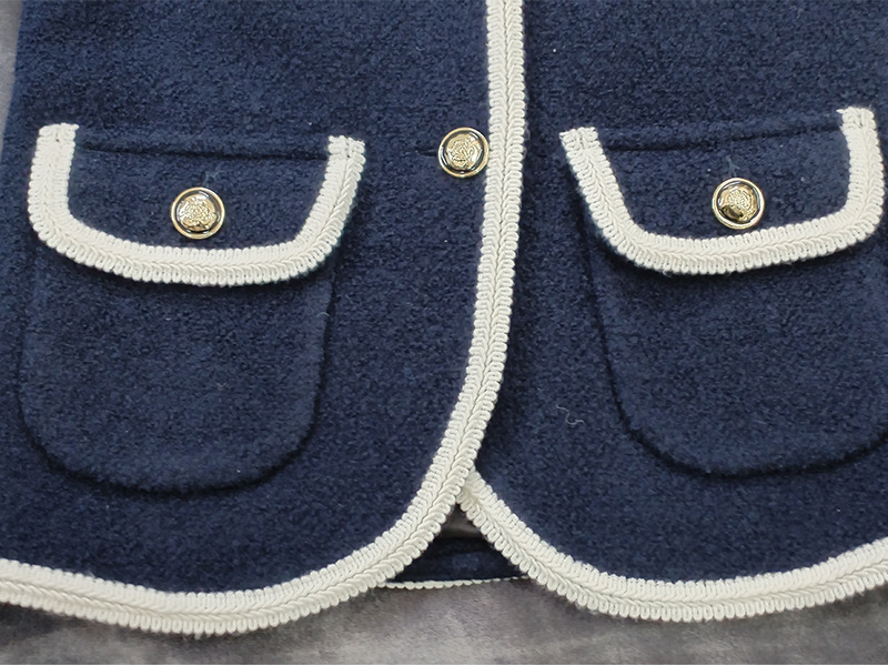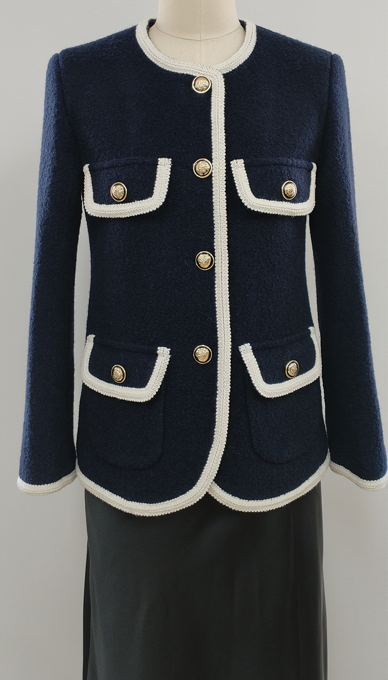 2025 가을과 겨울 새로운 여성 다크 블루 복고풍 대비 컬러 레이스 코트 사교계 트위드 작은 향기로운 스타일 코트 여성스토어 가기