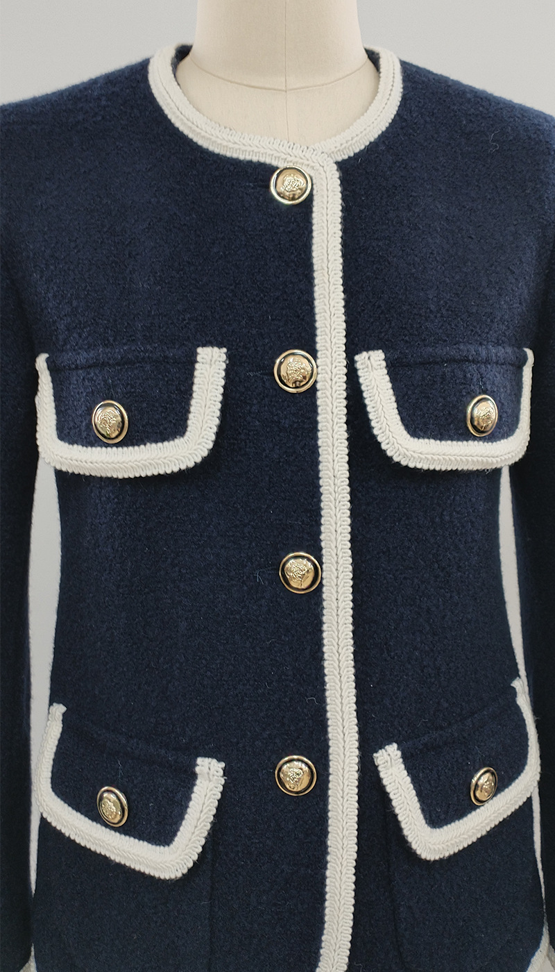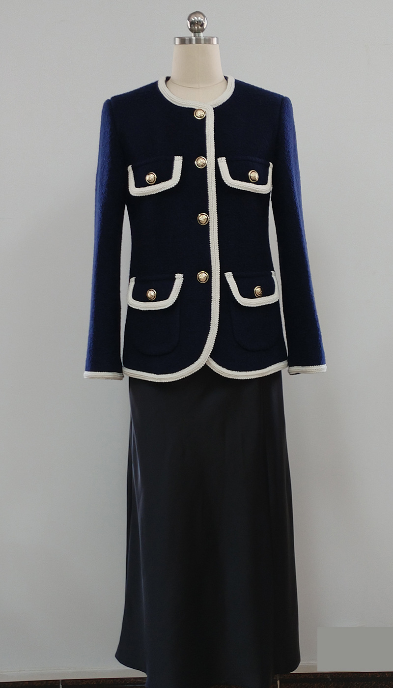 2025 가을과 겨울 새로운 여성 다크 블루 복고풍 대비 컬러 레이스 코트 사교계 트위드 작은 향기로운 스타일 코트 여성