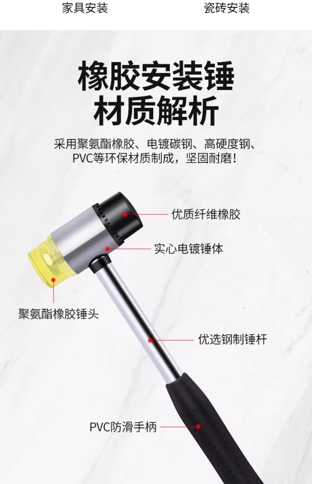 고무 해머 작은 해머 고무 해머 단단한 고무 해머 장착 해머 러빙 비트 및 스틱 바닥 타일 쇠고기 해머스토어 가기