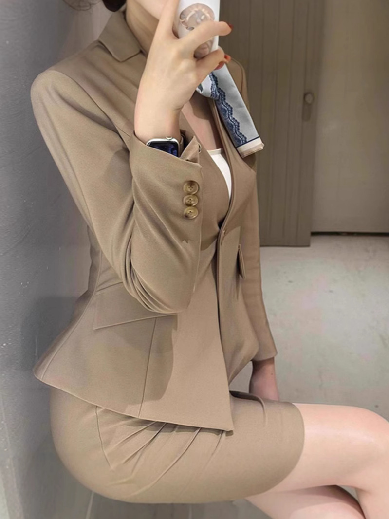 카키 여성 프로 라이트 럭셔리 하이 엔드 여성 세트 원피스 우아한 한국식 스커트 투피스 세트