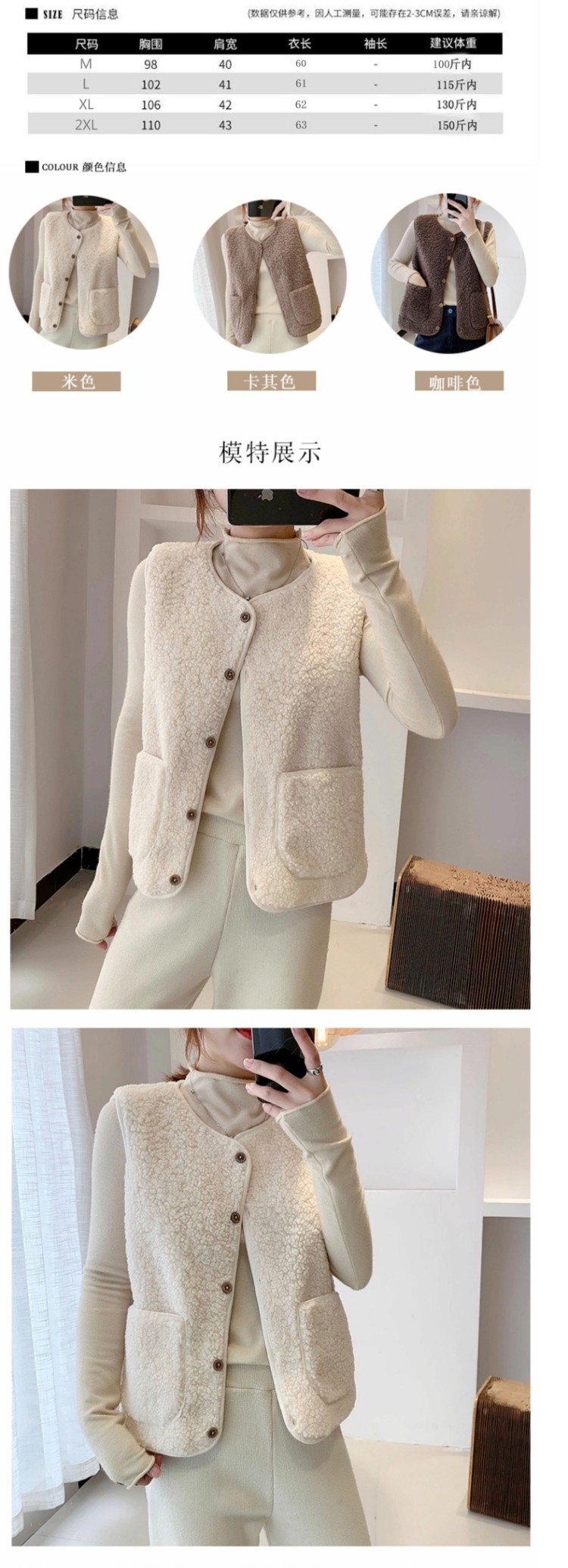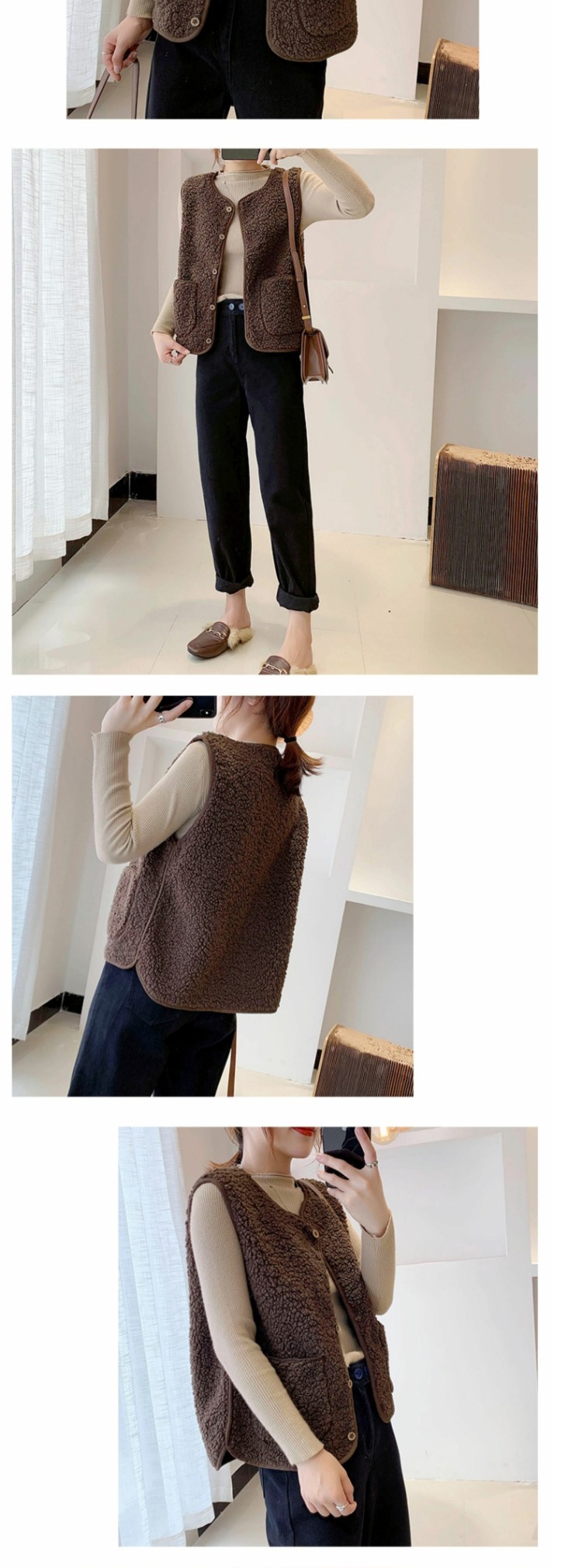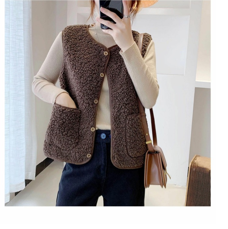 양고기 양모 조끼 여성 겨울 아우터 쇼트 2025 새로운 한국식 루즈 봉제 웨이스트 코트 서양식 조끼스토어 가기