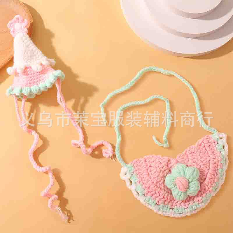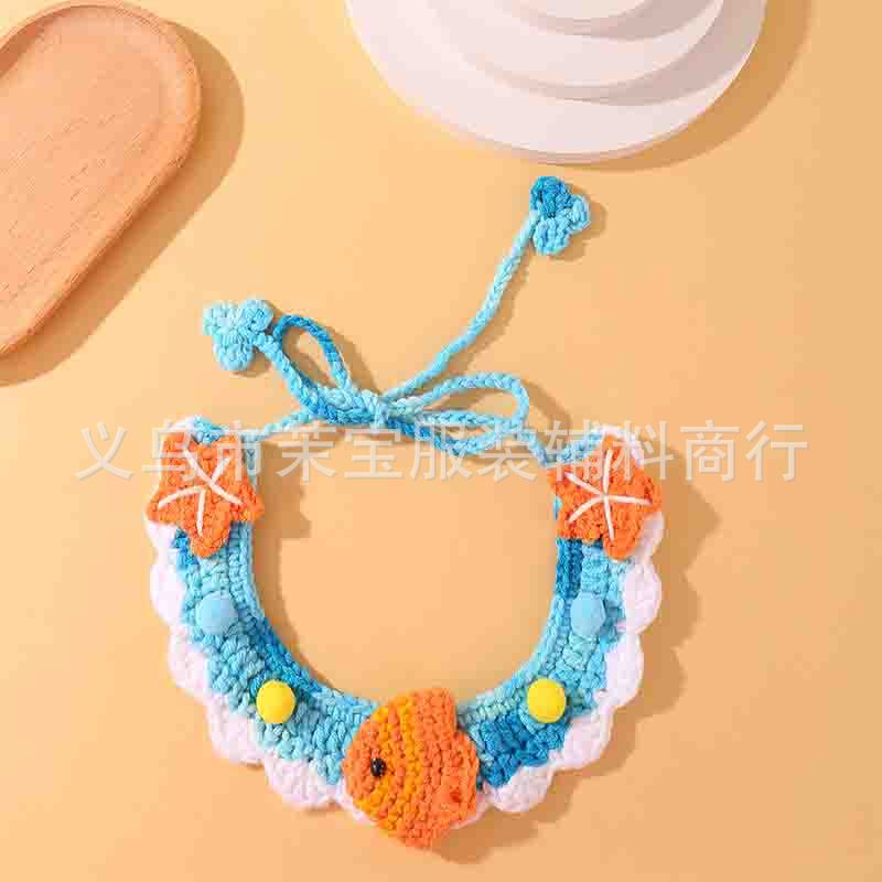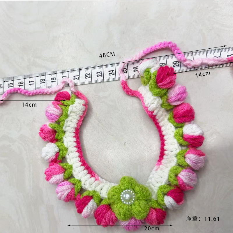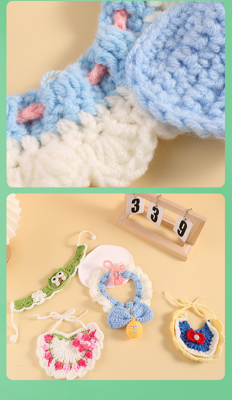 애완 동물 수제 니트 목걸이 귀여운 고양이 니트 미끄러운 수건 아기 고양이 목 반지 작은 개 목 보석