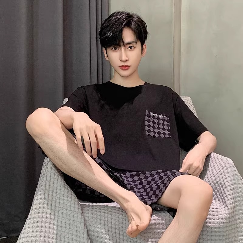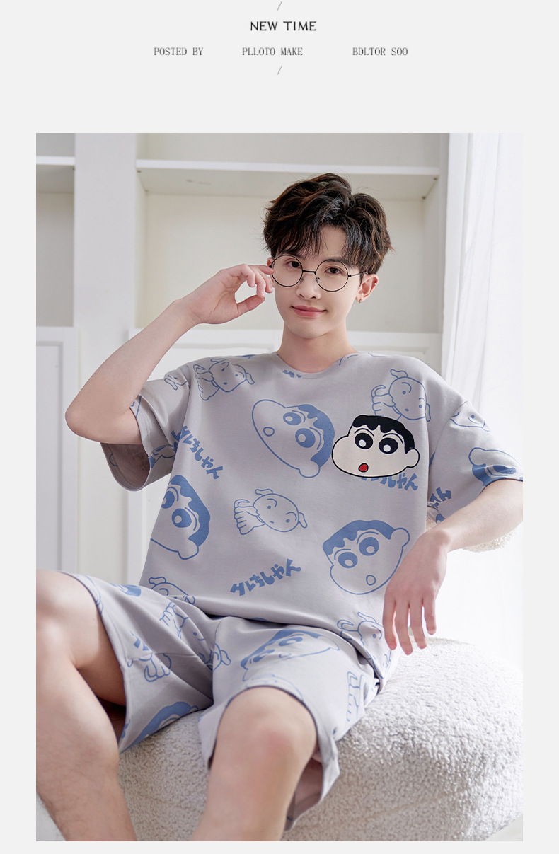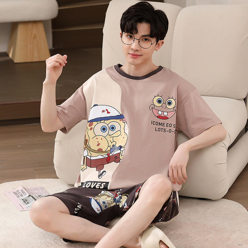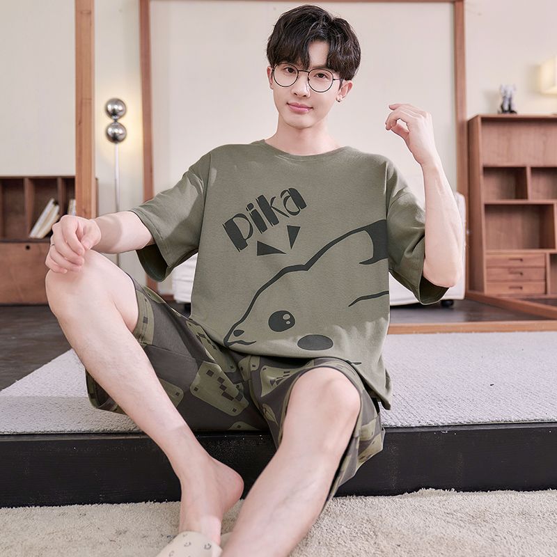 얇은 100.00kg 플러스 사이즈 잠옷 남자 여름 반팔 만화 청소년 여름 편안한 홈 옷 세트스토어 가기