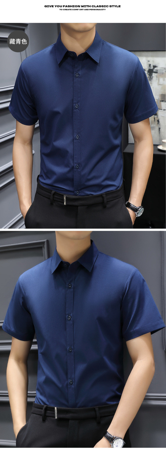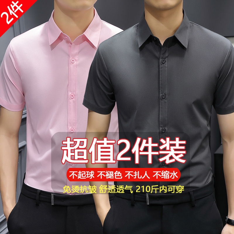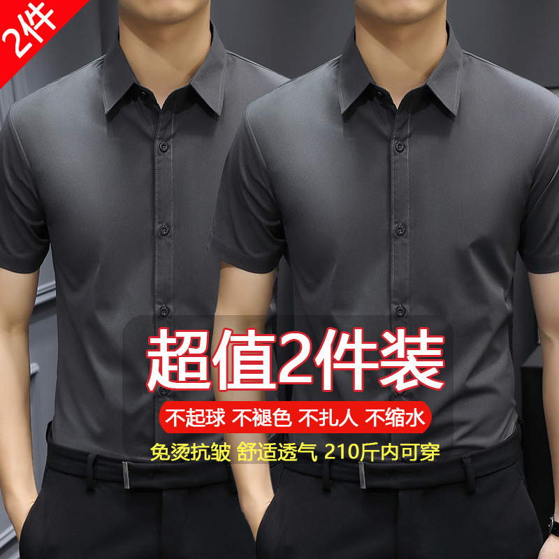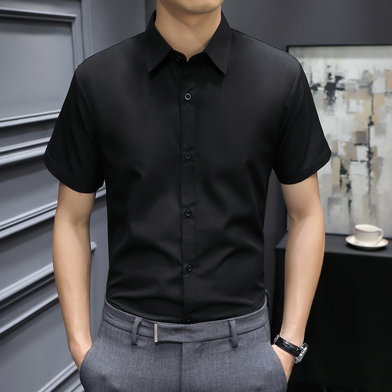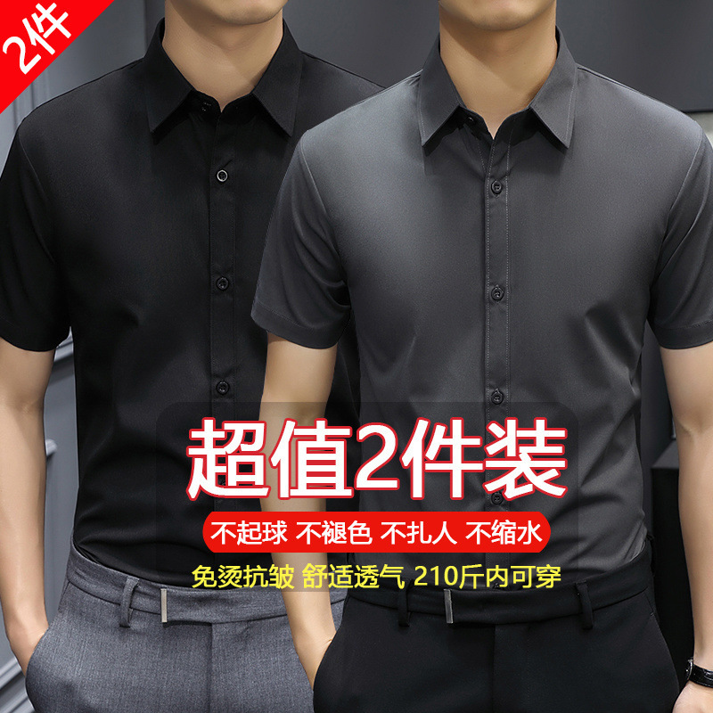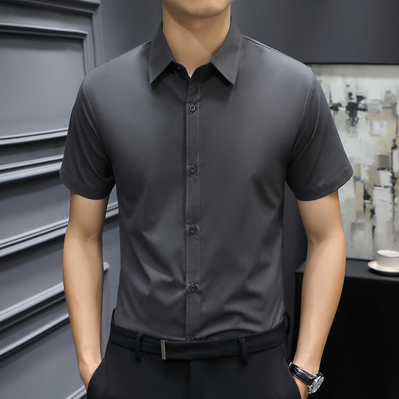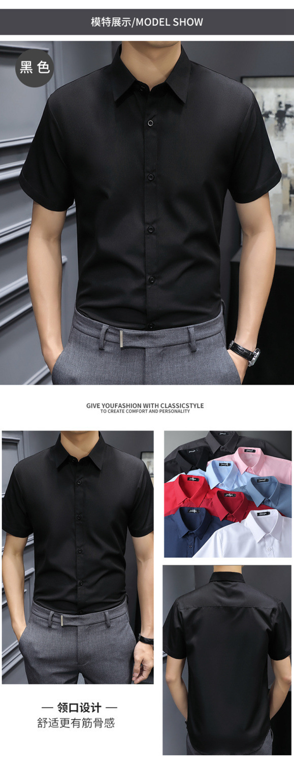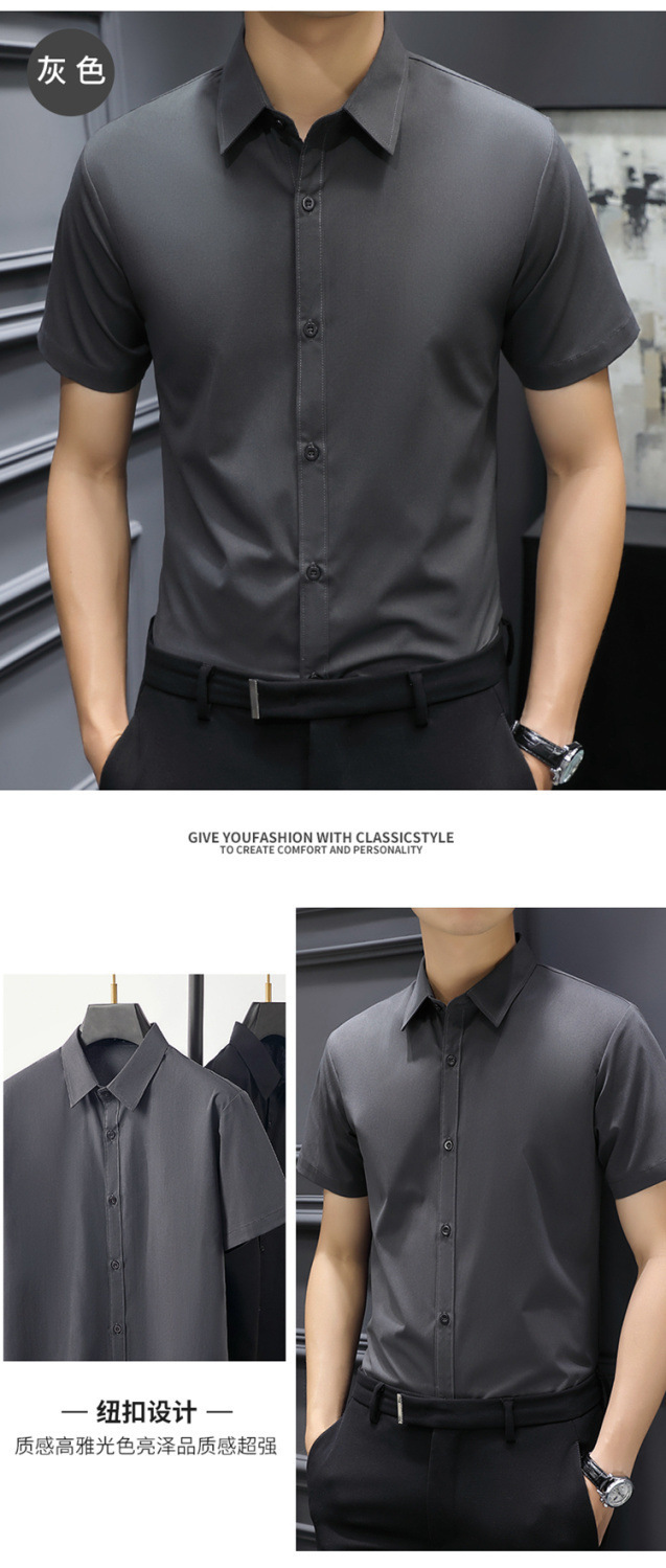 남성 여름 컬러 반팔 셔츠 2024 새로운 스타일 노 다림질 주름 방지 비즈니스 캐주얼 슬림 블랙 그레이 인치 셔츠