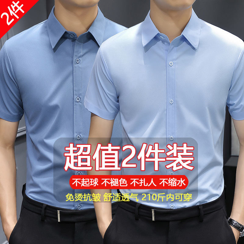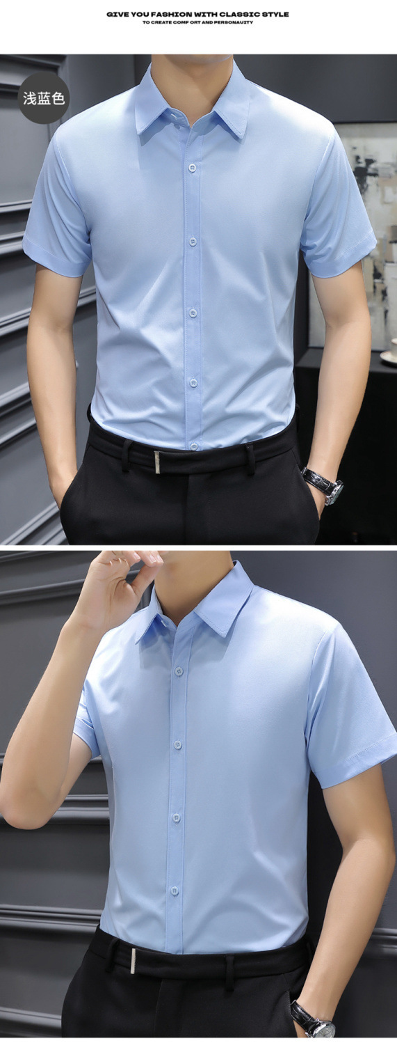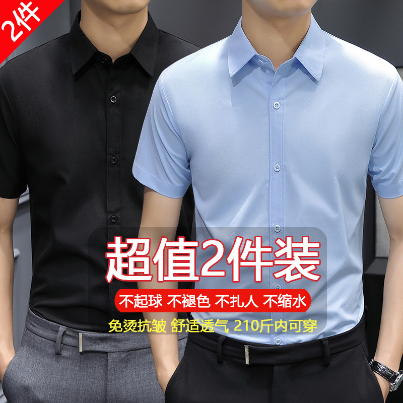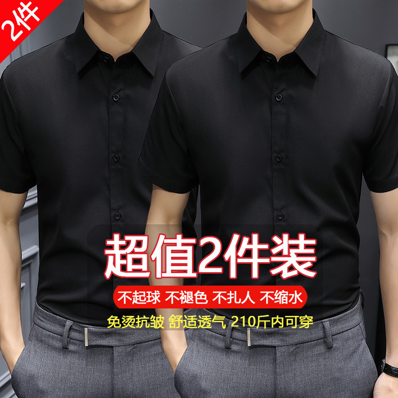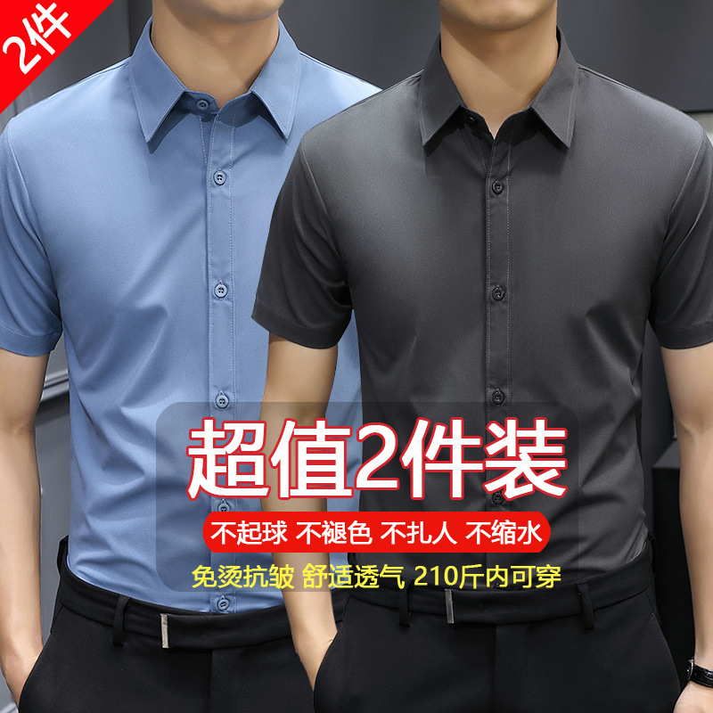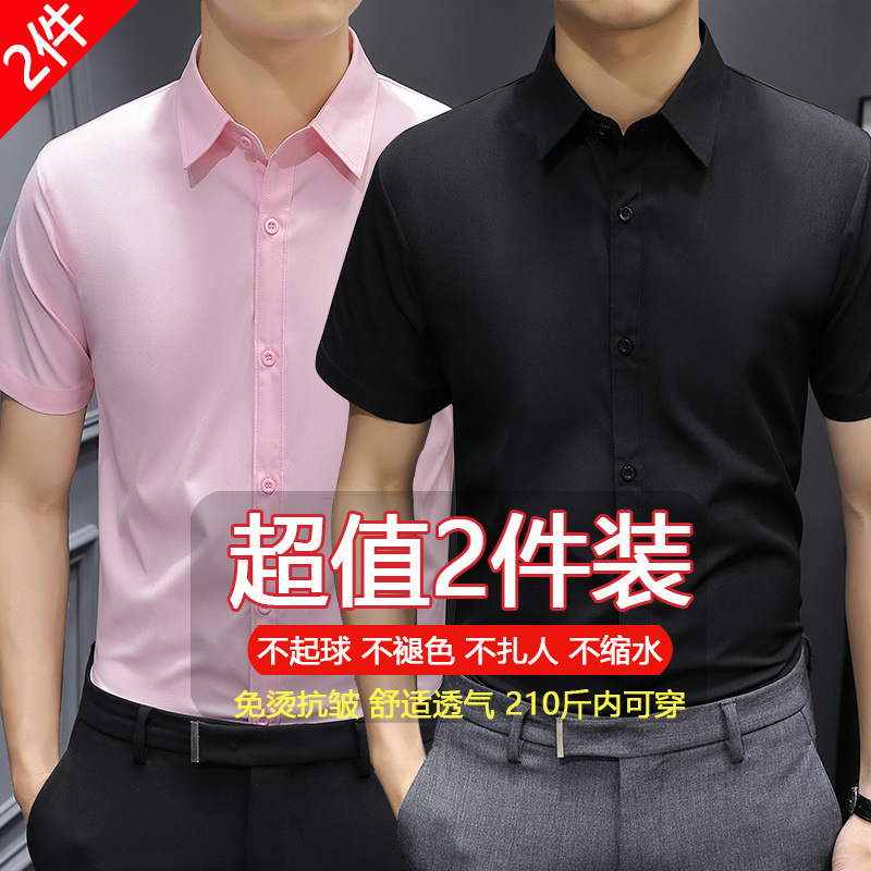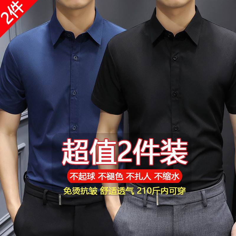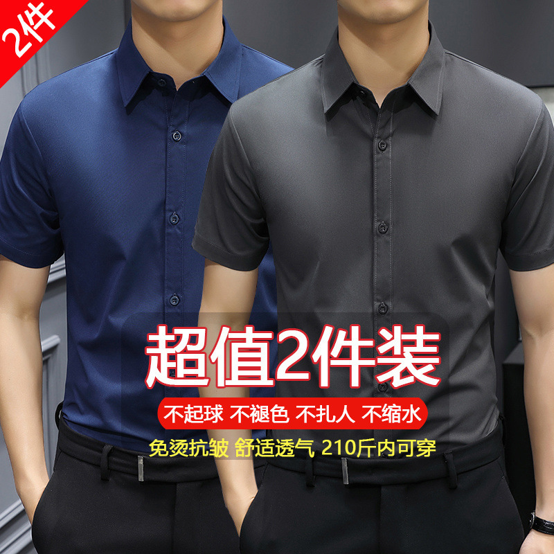 남성 여름 컬러 반팔 셔츠 2024 새로운 스타일 노 다림질 주름 방지 비즈니스 캐주얼 슬림 블랙 그레이 인치 셔츠