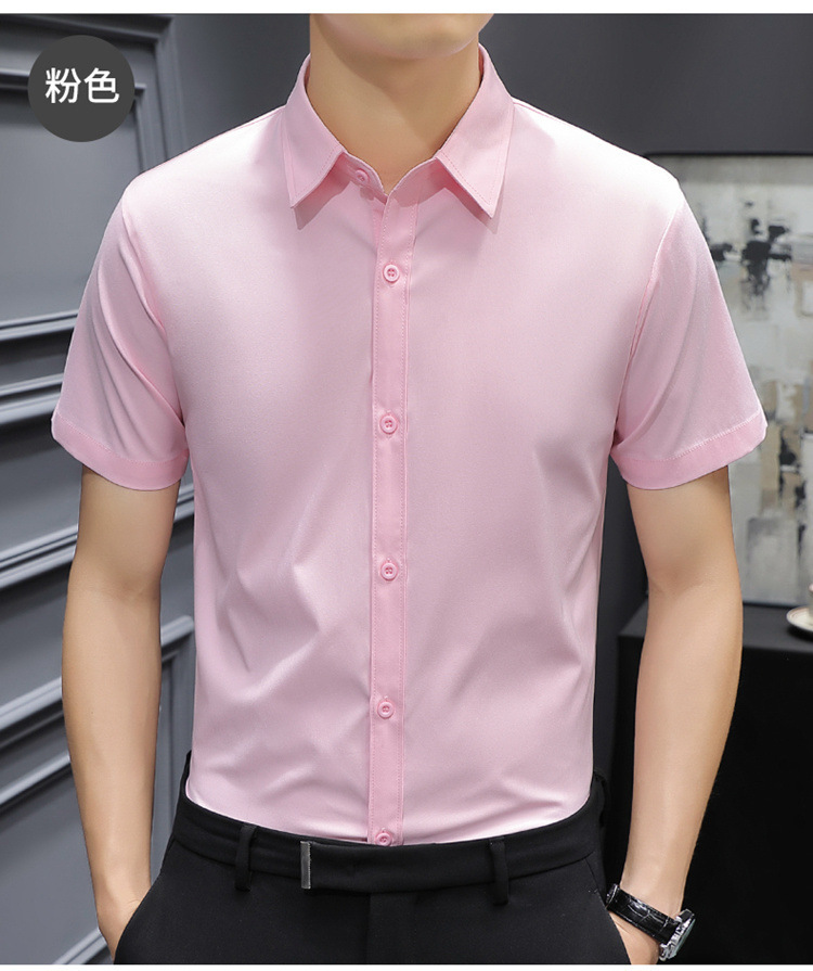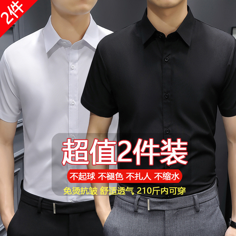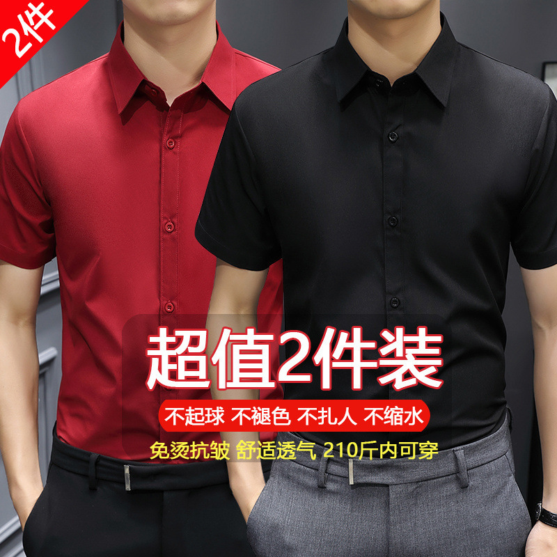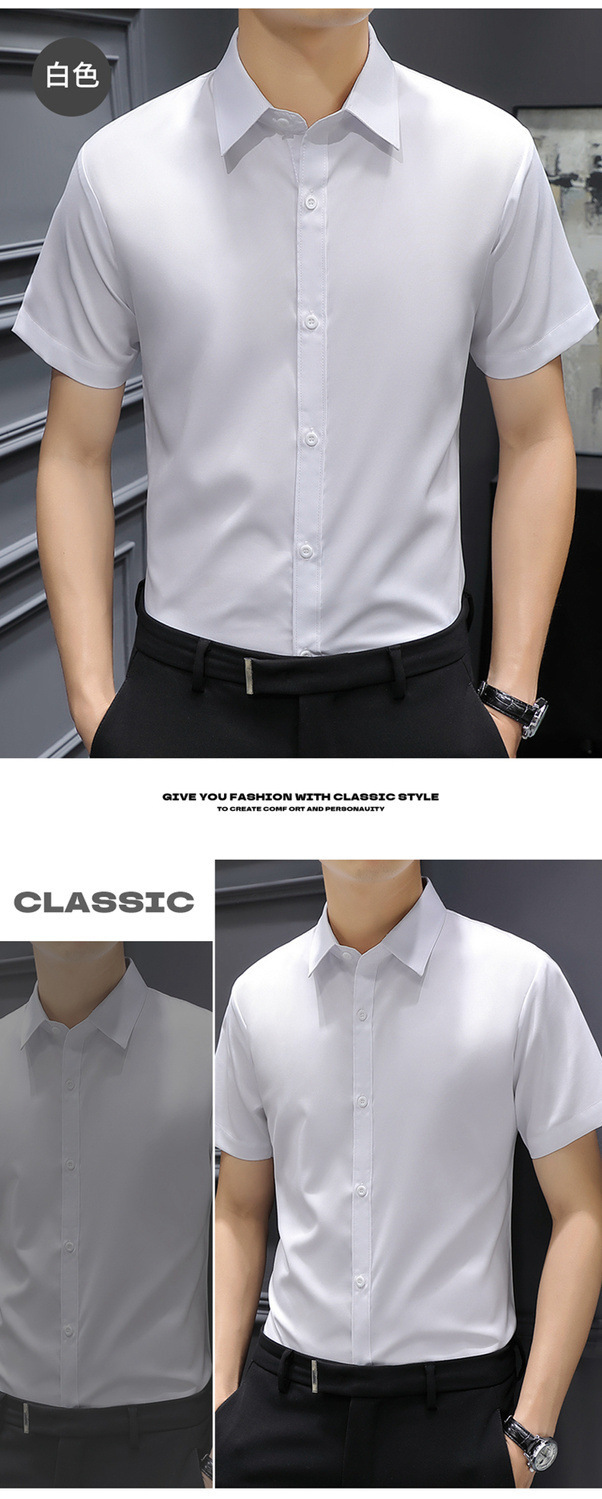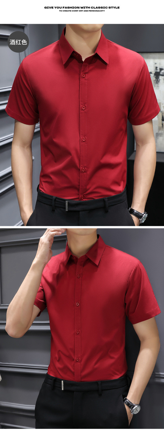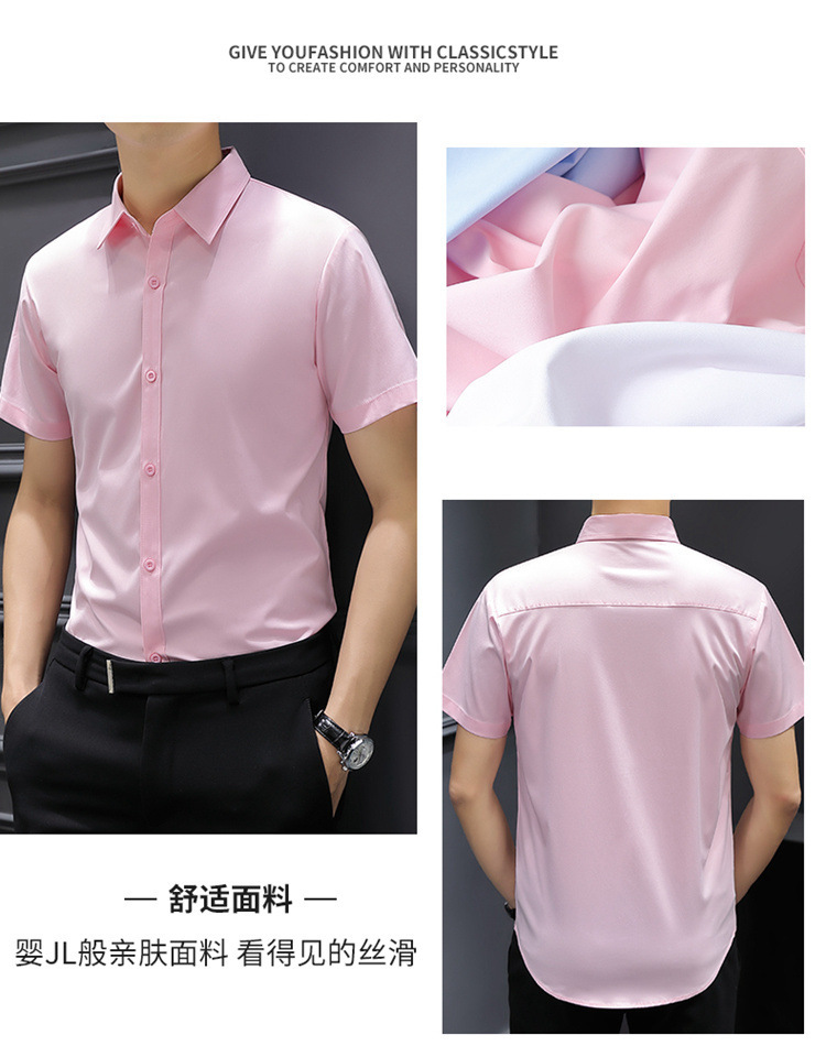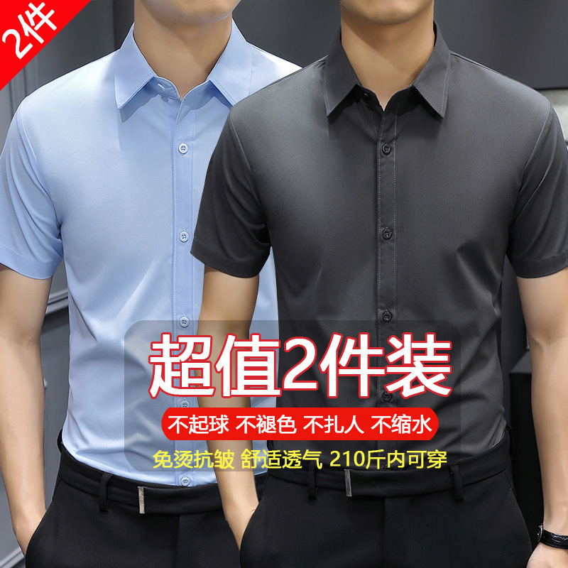 남성 여름 컬러 반팔 셔츠 2024 새로운 스타일 노 다림질 주름 방지 비즈니스 캐주얼 슬림 블랙 그레이 인치 셔츠