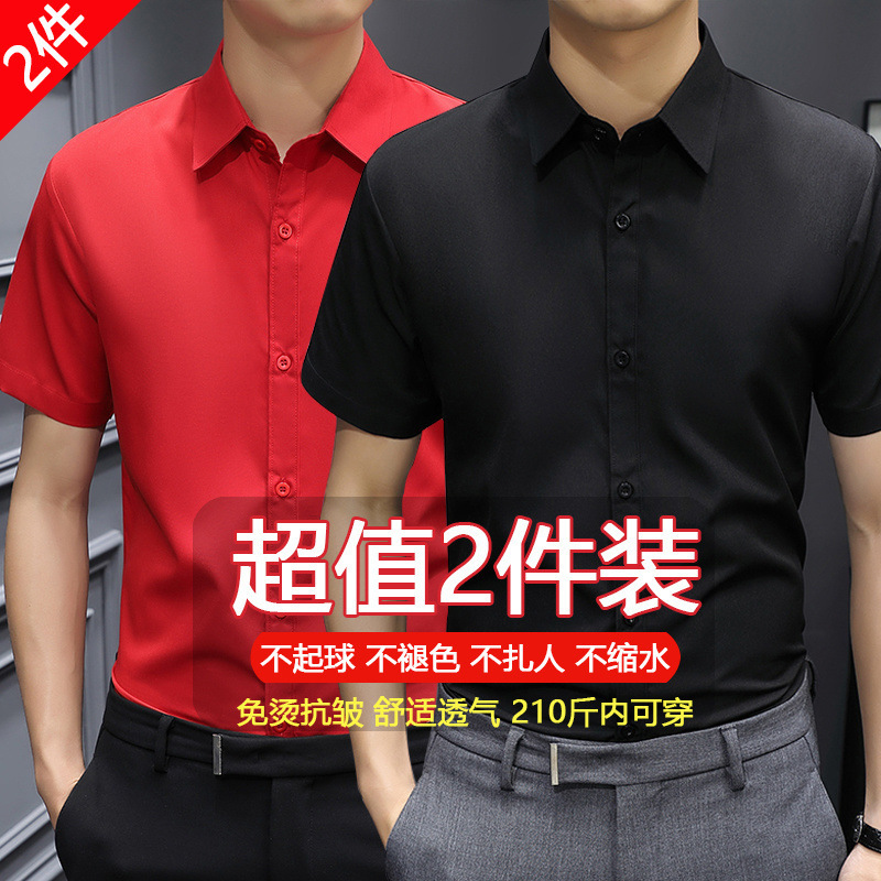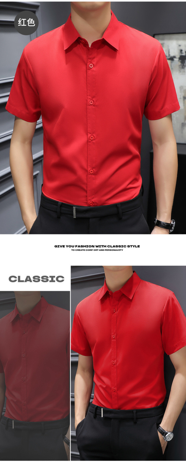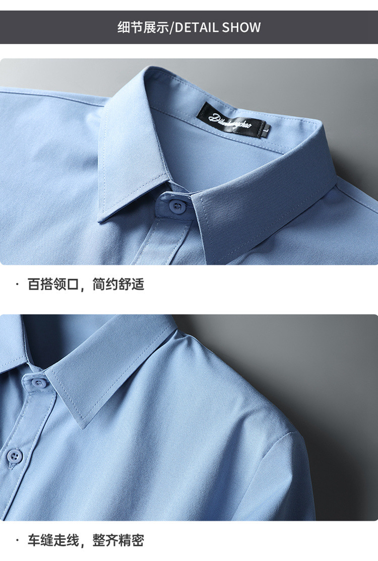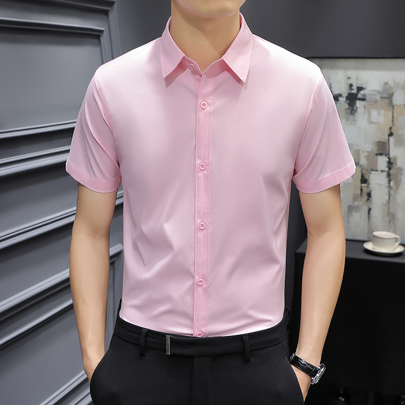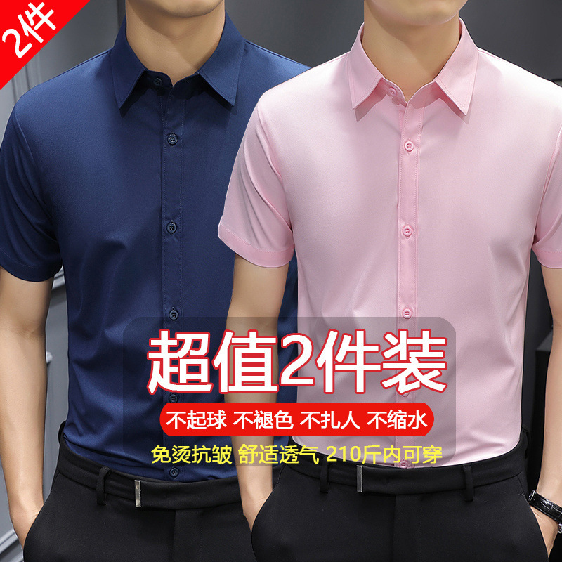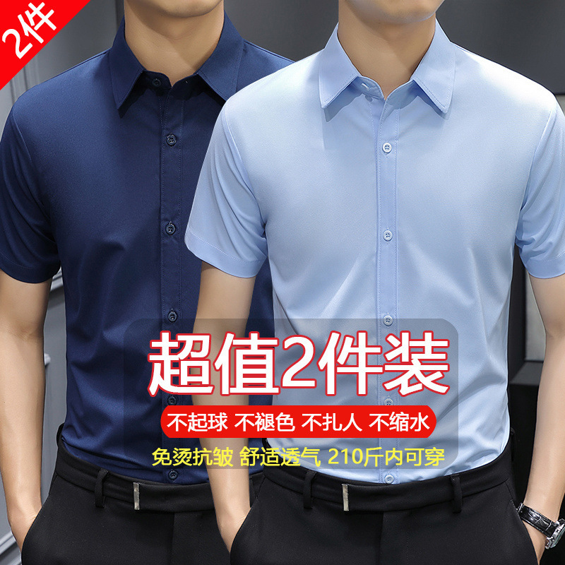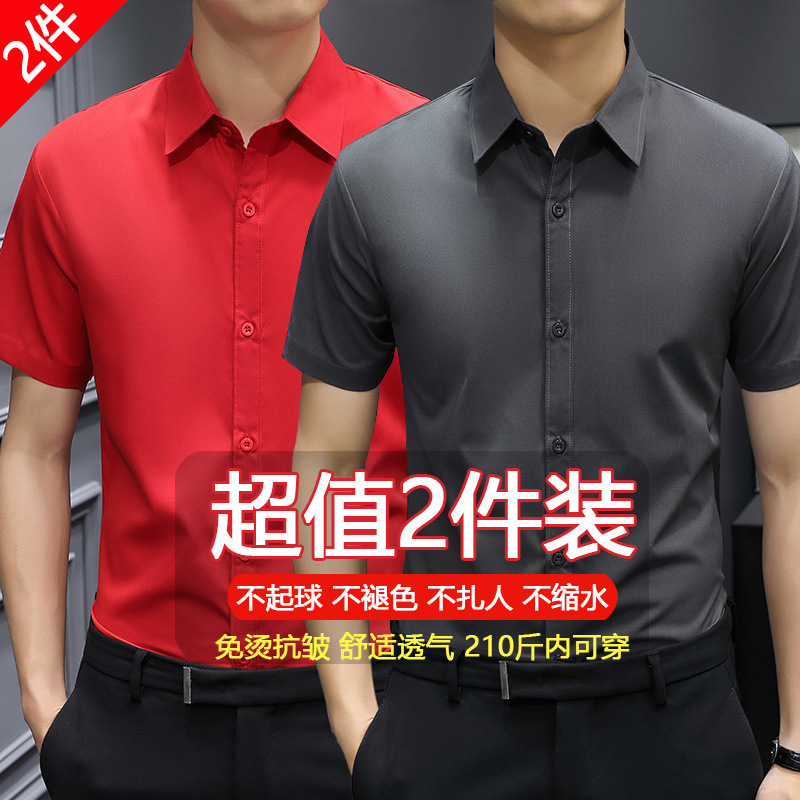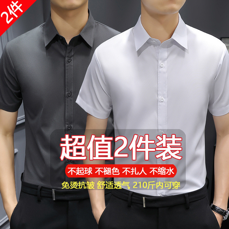남성 여름 컬러 반팔 셔츠 2024 새로운 스타일 노 다림질 주름 방지 비즈니스 캐주얼 슬림 블랙 그레이 인치 셔츠