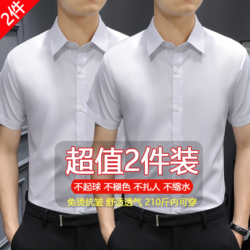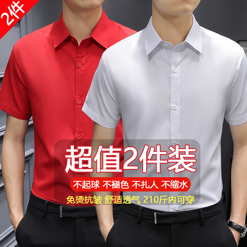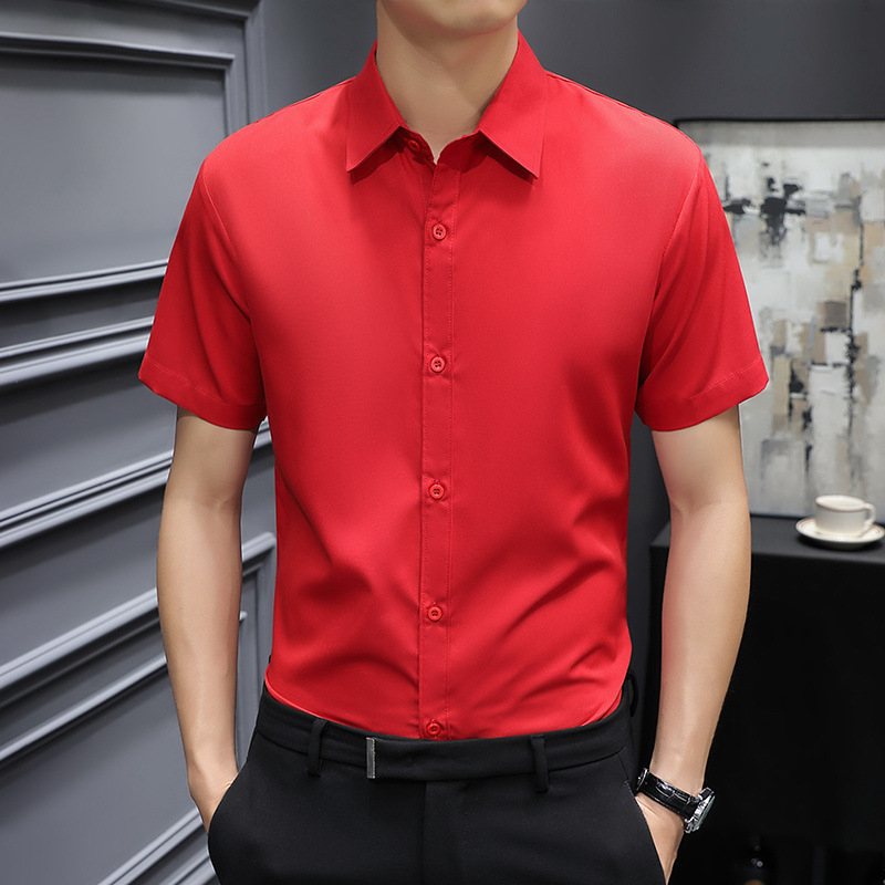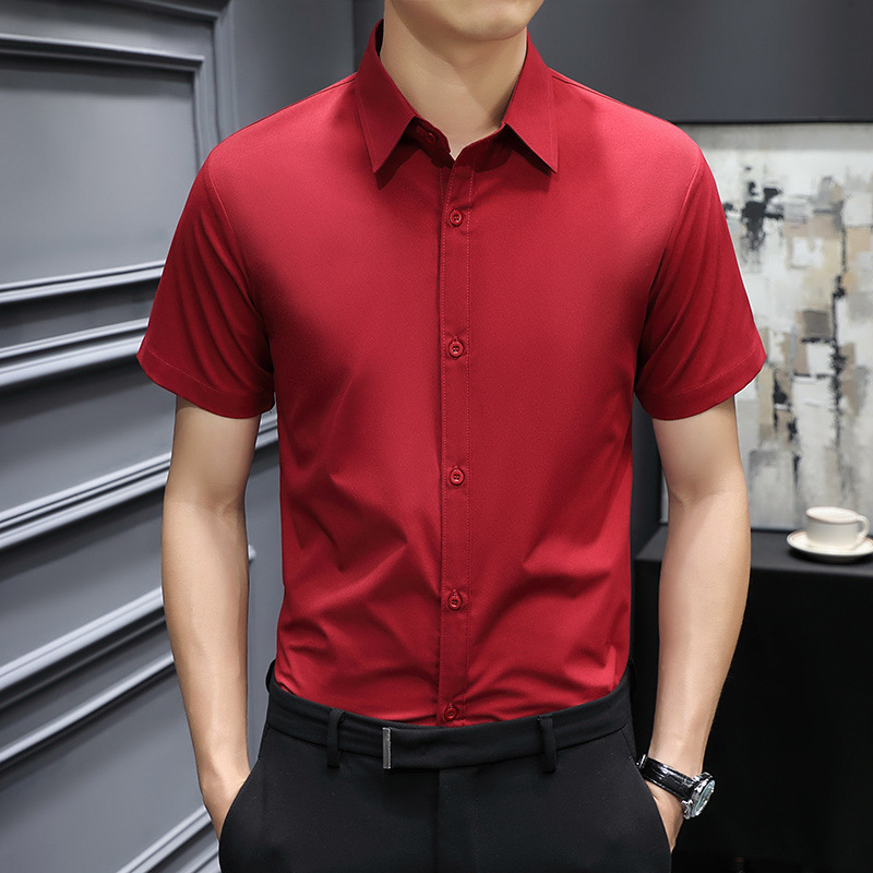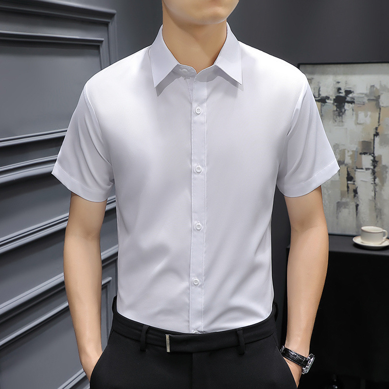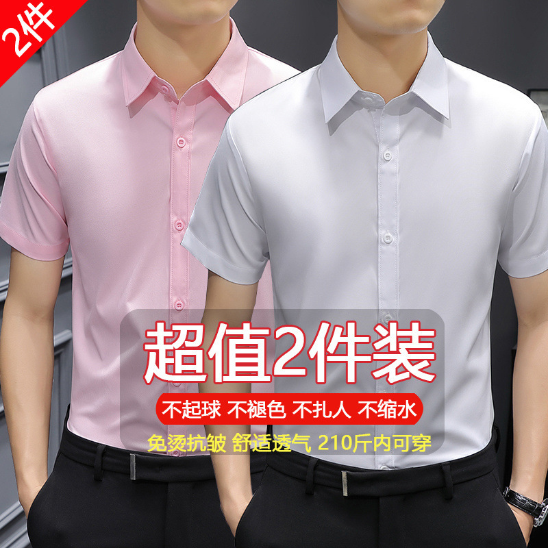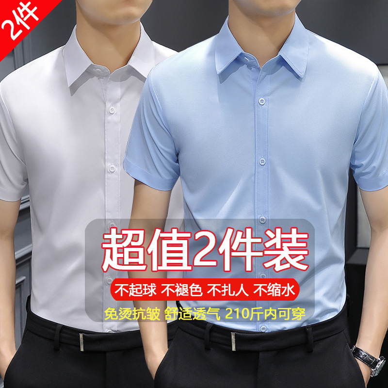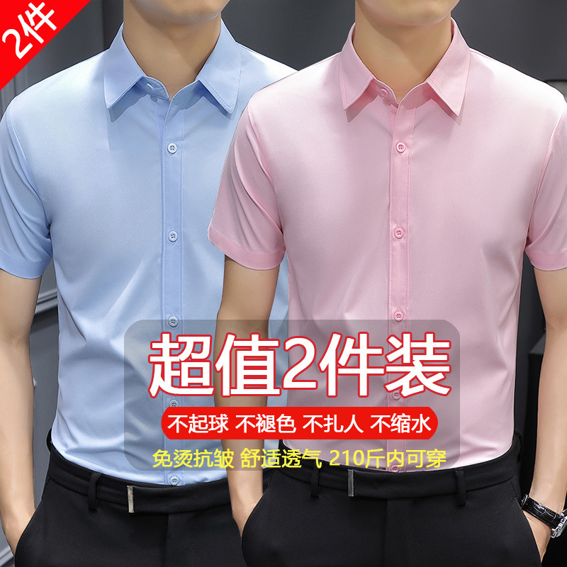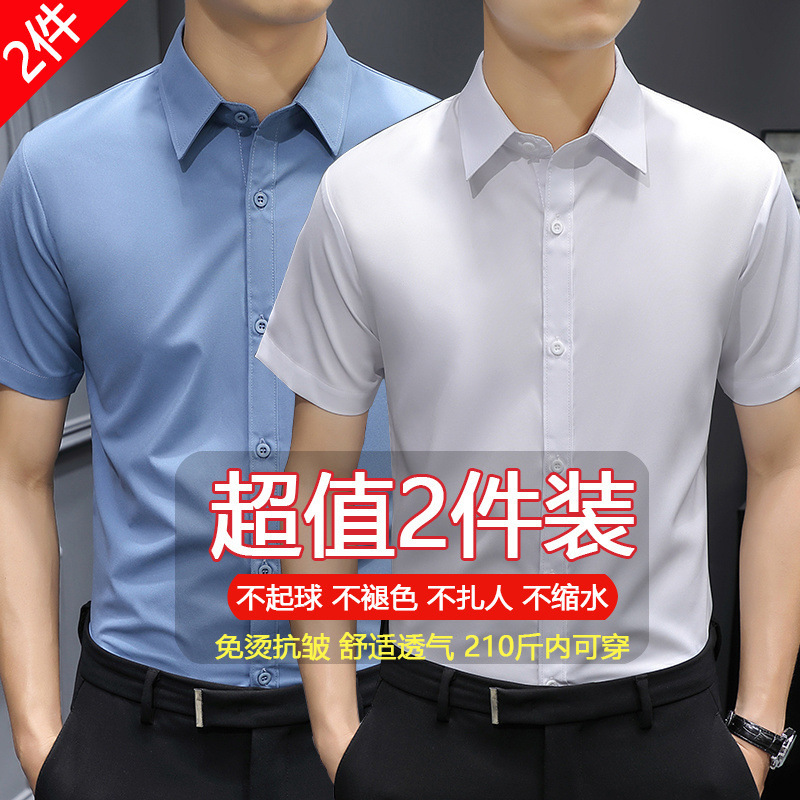 남성 여름 컬러 반팔 셔츠 2024 새로운 스타일 노 다림질 주름 방지 비즈니스 캐주얼 슬림 블랙 그레이 인치 셔츠