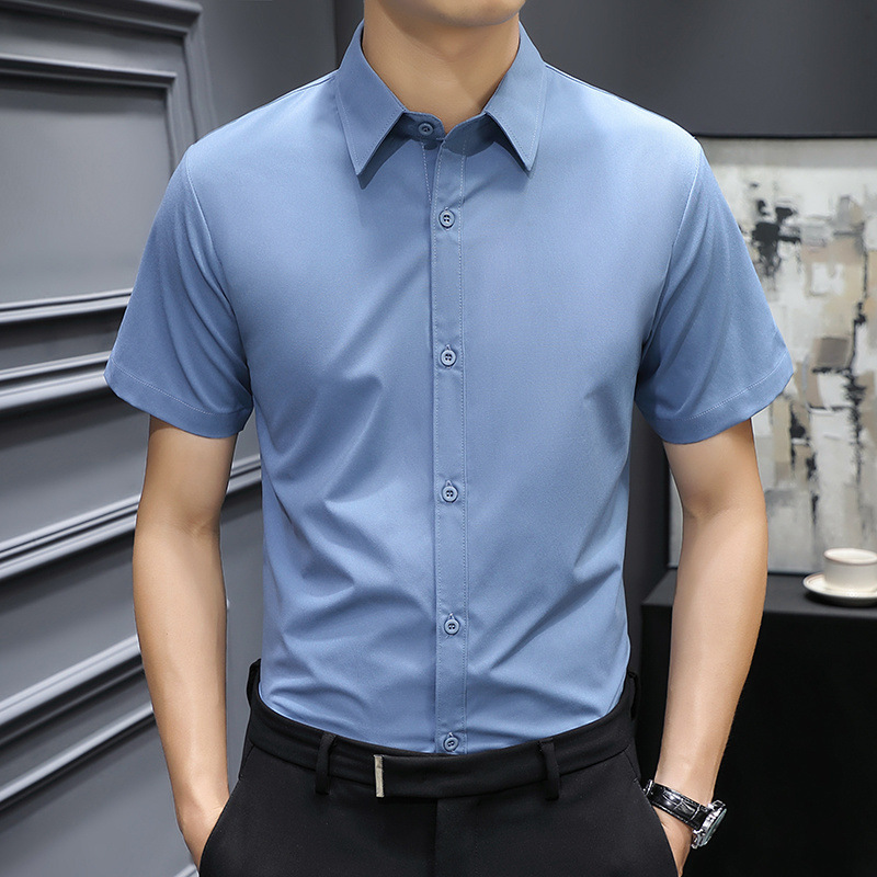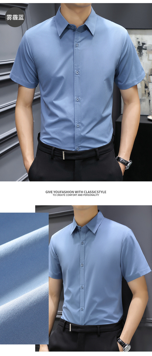 남성 여름 컬러 반팔 셔츠 2024 새로운 스타일 노 다림질 주름 방지 비즈니스 캐주얼 슬림 블랙 그레이 인치 셔츠스토어 가기