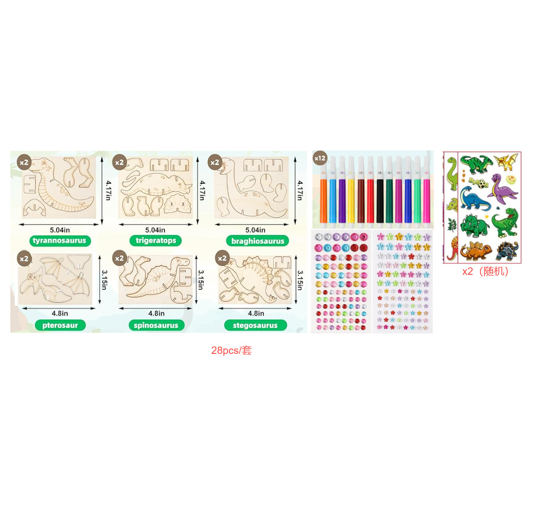 • 3차원 공룡 DIY 6종 각 2개, 컬러펜 12개, 드릴 스티커 2개, 스티커 2개, OPP백 포장