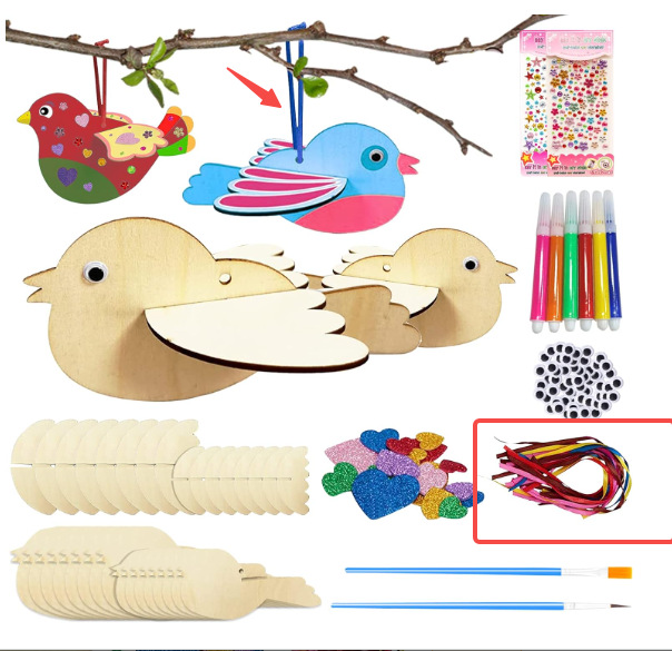 나무 새 부활절 장식 펜던트 어린이 교육 원조 로그 페인트 낙서 DIY 수제 부활절