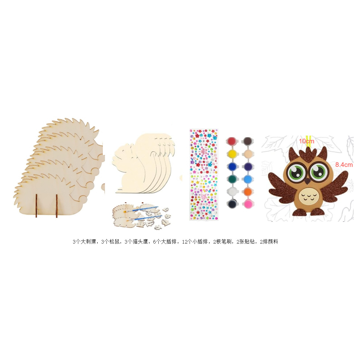• 큰 고슴도치 3개, 다람쥐 3개, 올빼미 3개, 큰 플러그 스트립 6개, 작은 플러그 스트립 12개, 브러시 2개, 다이아몬드 스티커 2개, 페인트 2줄 opp 가방 포장