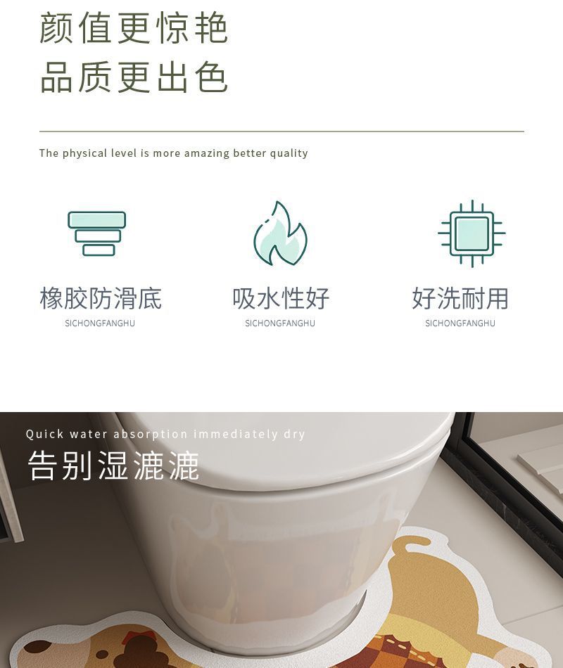 ∝【94% 호평률】변기 3종 세트 욕실 방수 속건 욕실 U자형 바닥 매트 흡수성 발 매트 LS스토어 가기