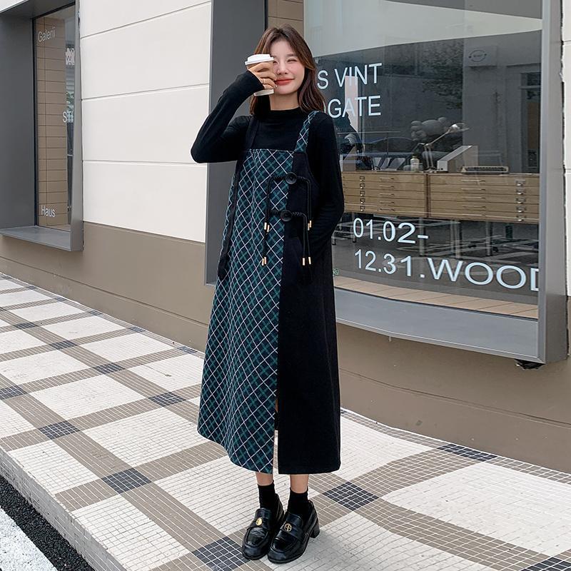 새로운 중국 착용 모직 스트랩 원피스 여성의 봄과 가을 하이 엔드 틈새 내부 조끼 롱 원피스 투피스 세트스토어 가기