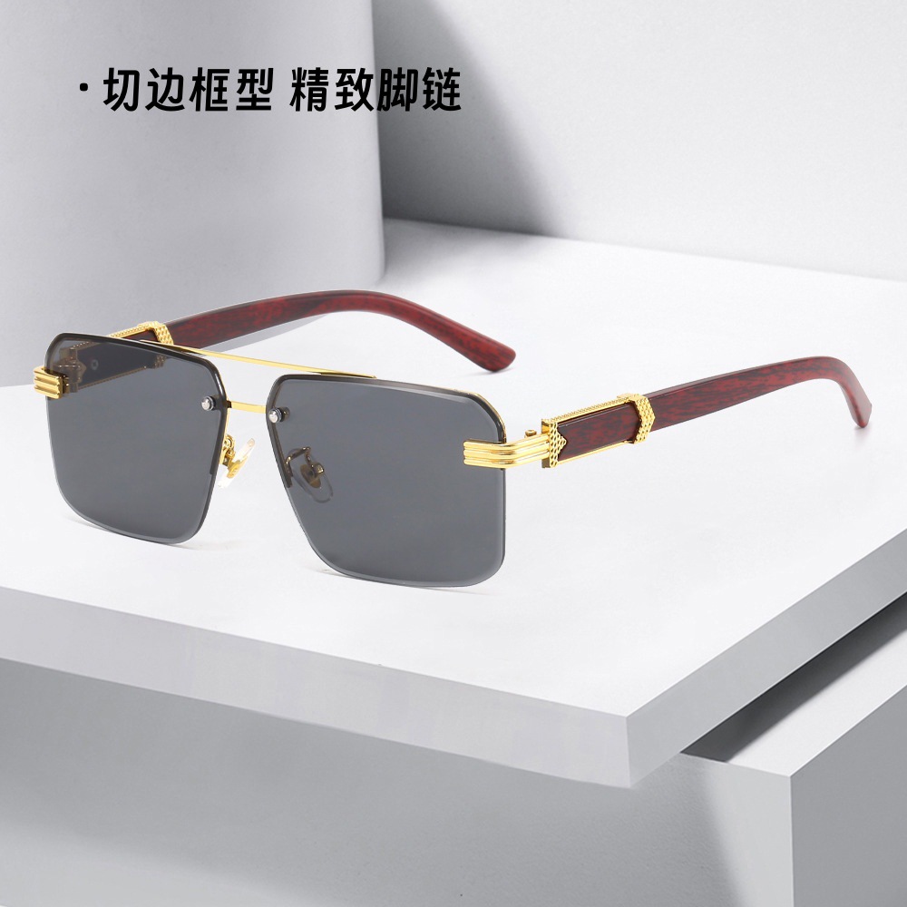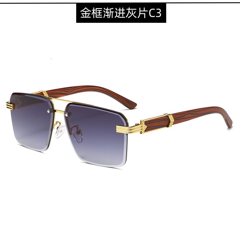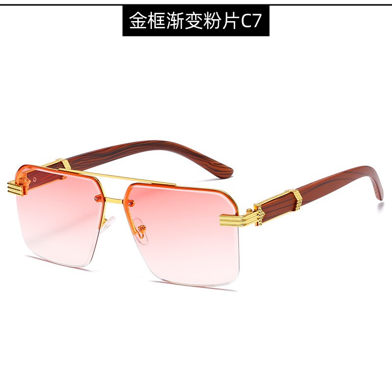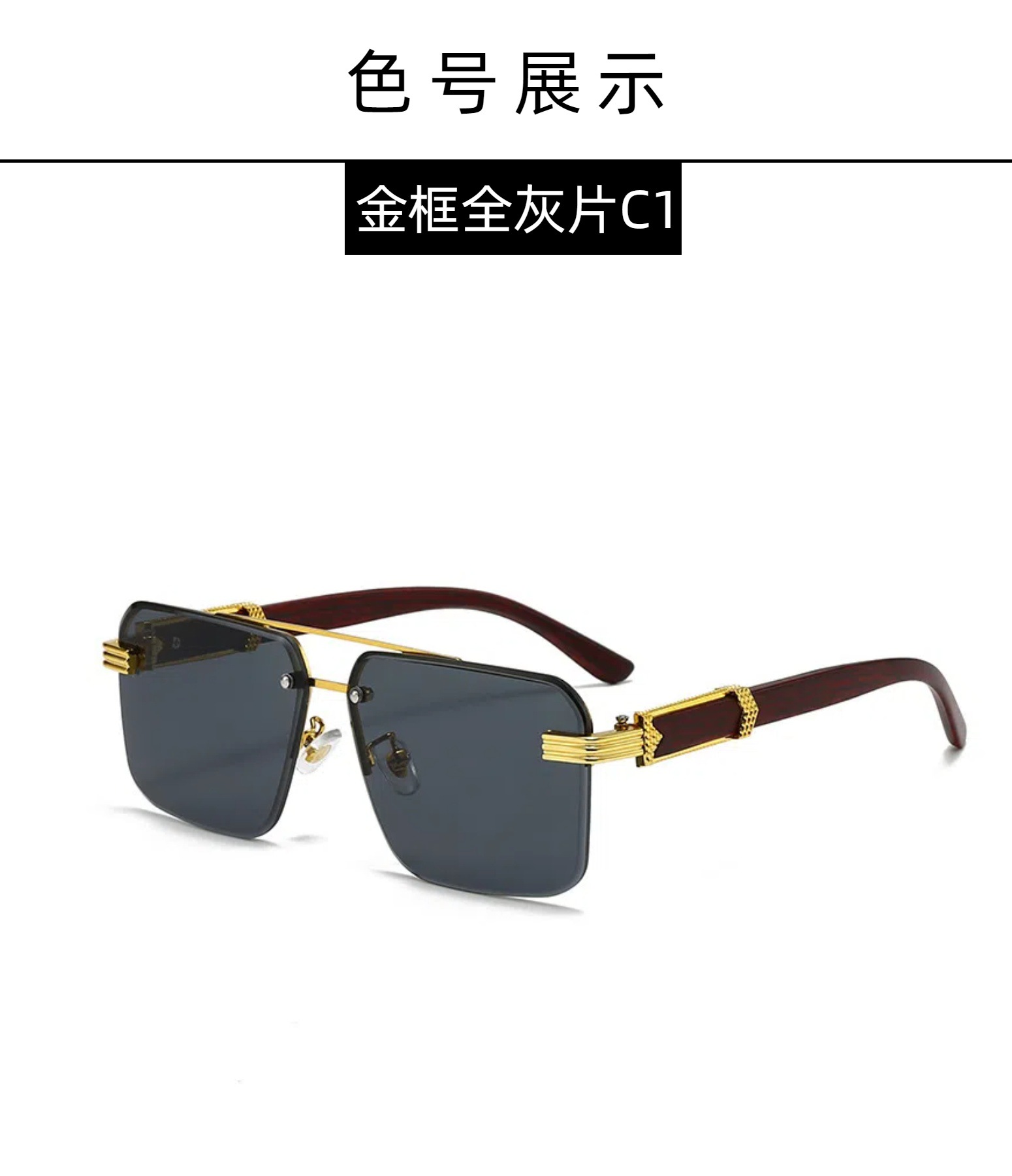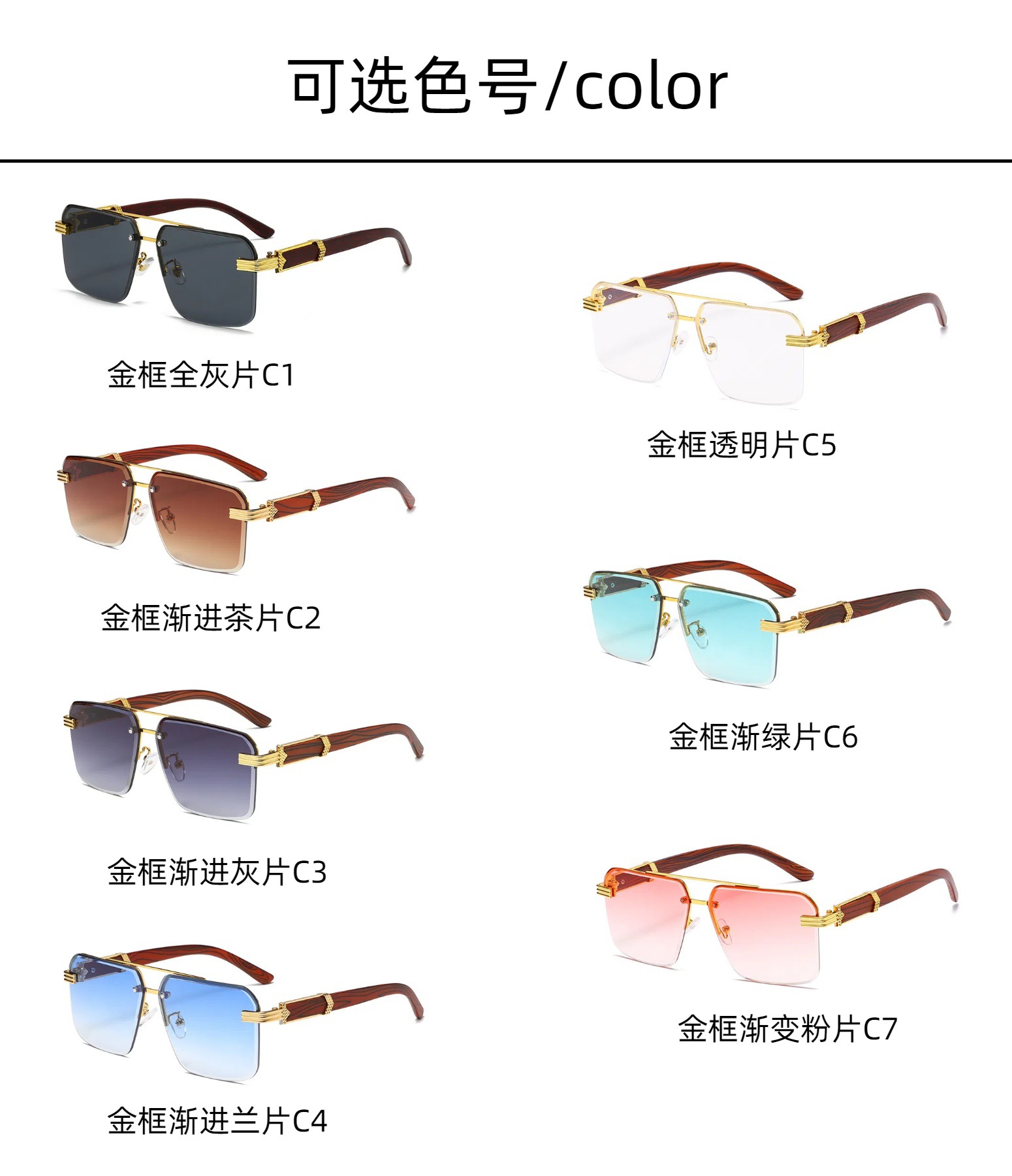 2025년 새로운 크로스보더 스타일 사각형 더블 빔 선글라스 트렌디한 남성과 여성의 맞춤형 하프 프레임 그라데이션 나뭇결 다리 태양