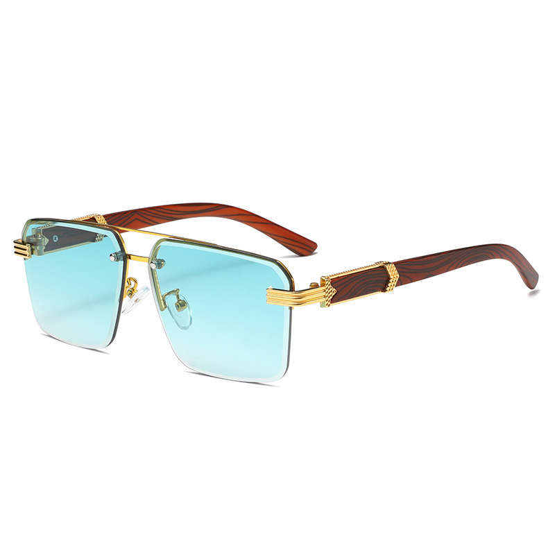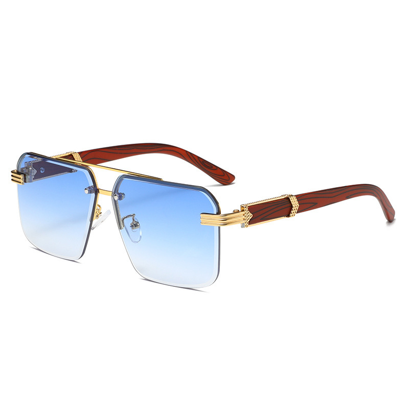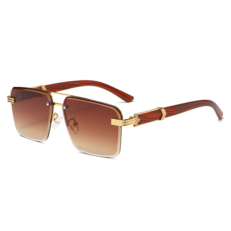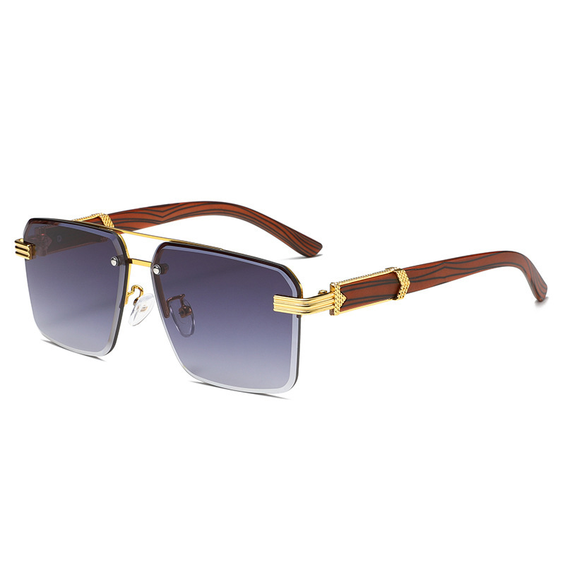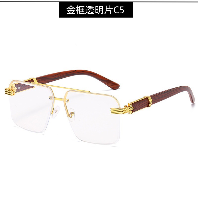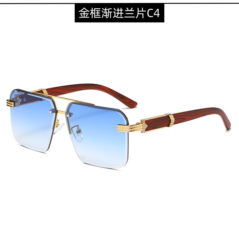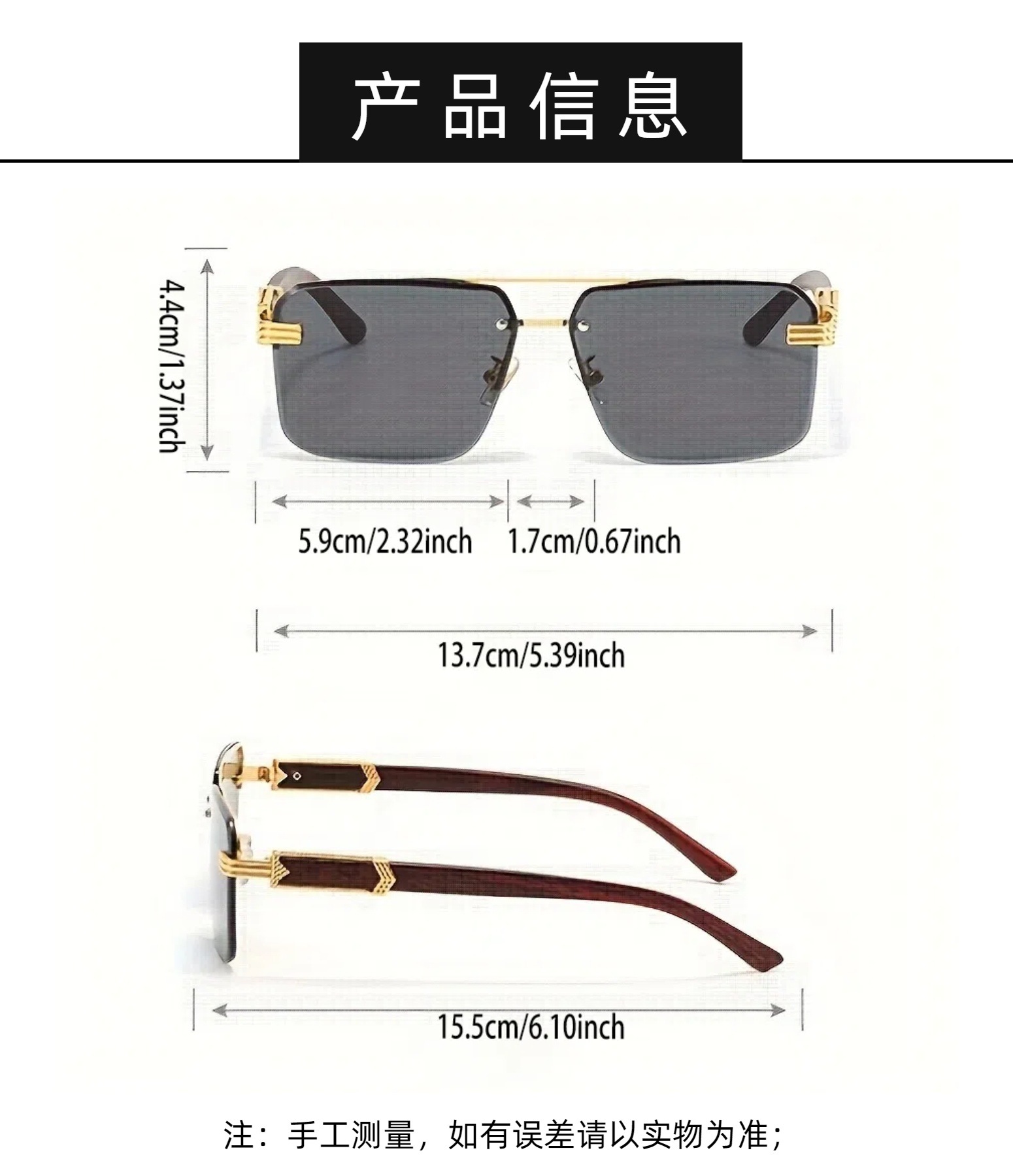 2025년 새로운 크로스보더 스타일 사각형 더블 빔 선글라스 트렌디한 남성과 여성의 맞춤형 하프 프레임 그라데이션 나뭇결 다리 태양