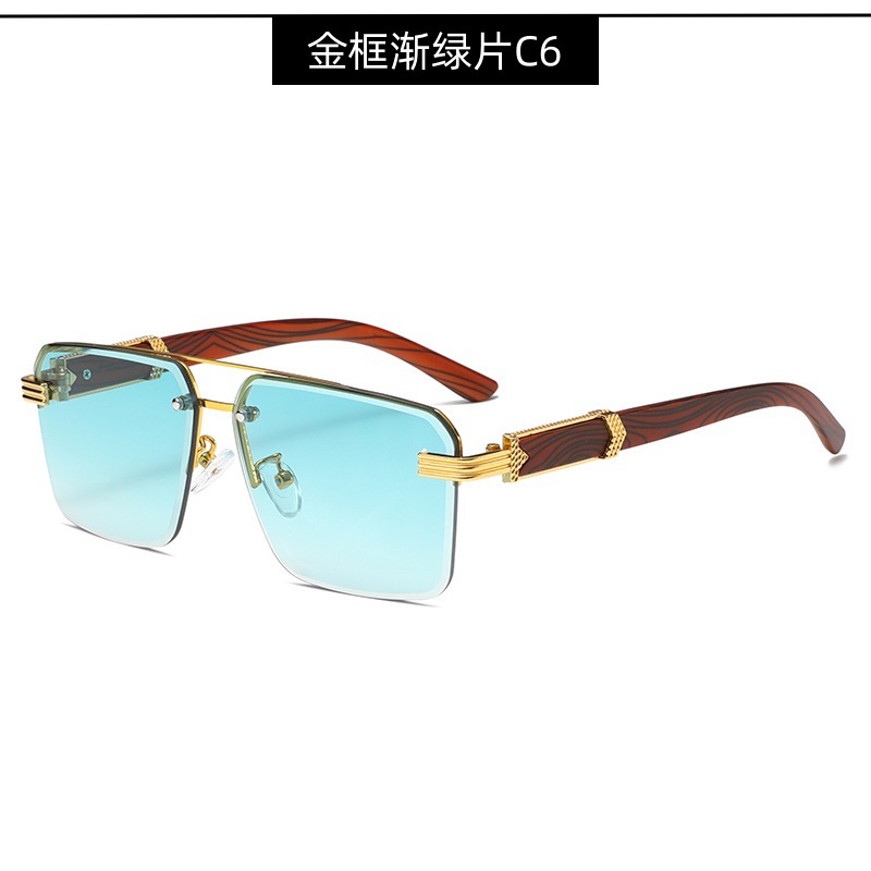 2025년 새로운 크로스보더 스타일 사각형 더블 빔 선글라스 트렌디한 남성과 여성의 맞춤형 하프 프레임 그라데이션 나뭇결 다리 태양스토어 가기