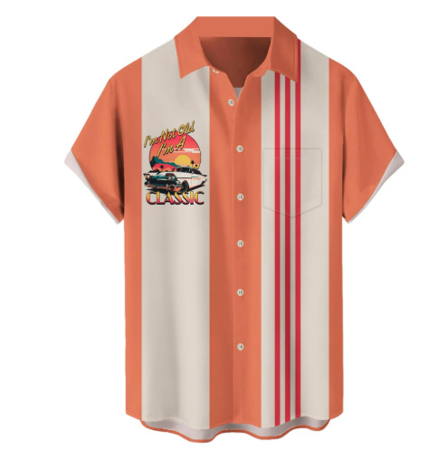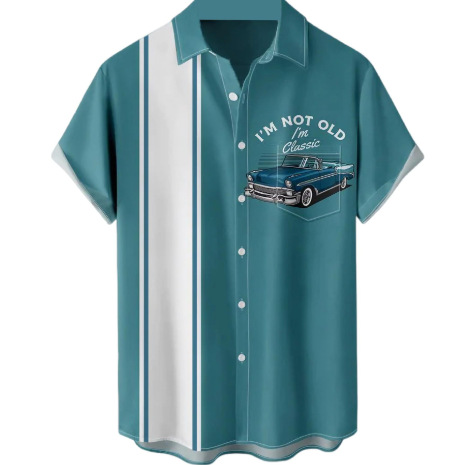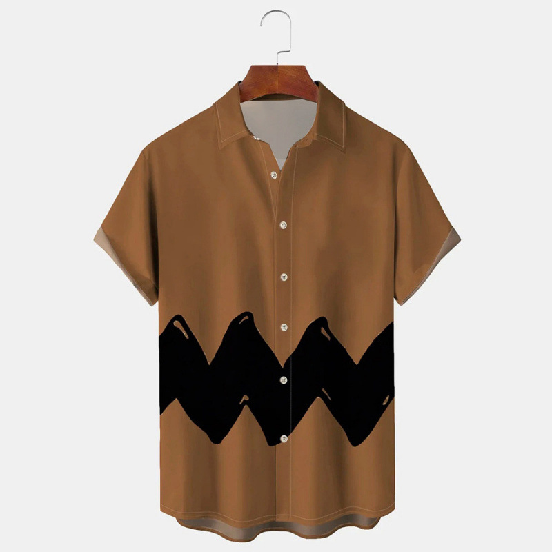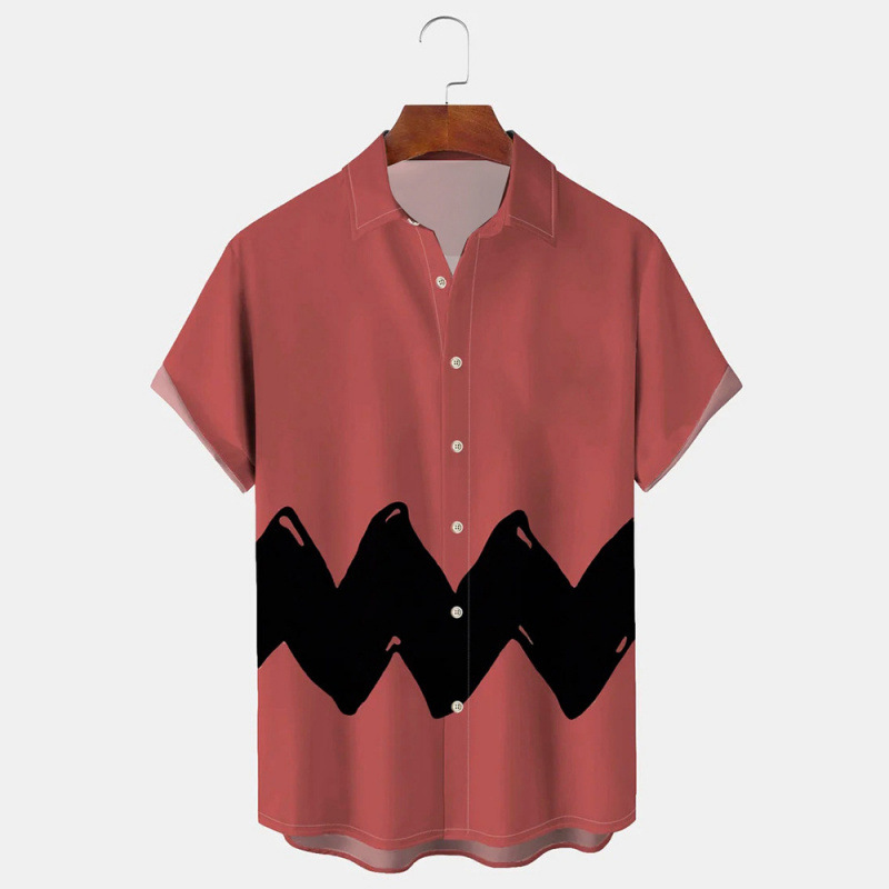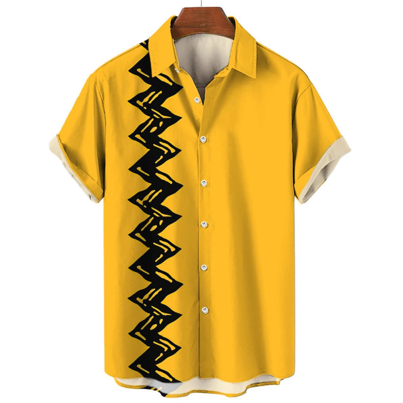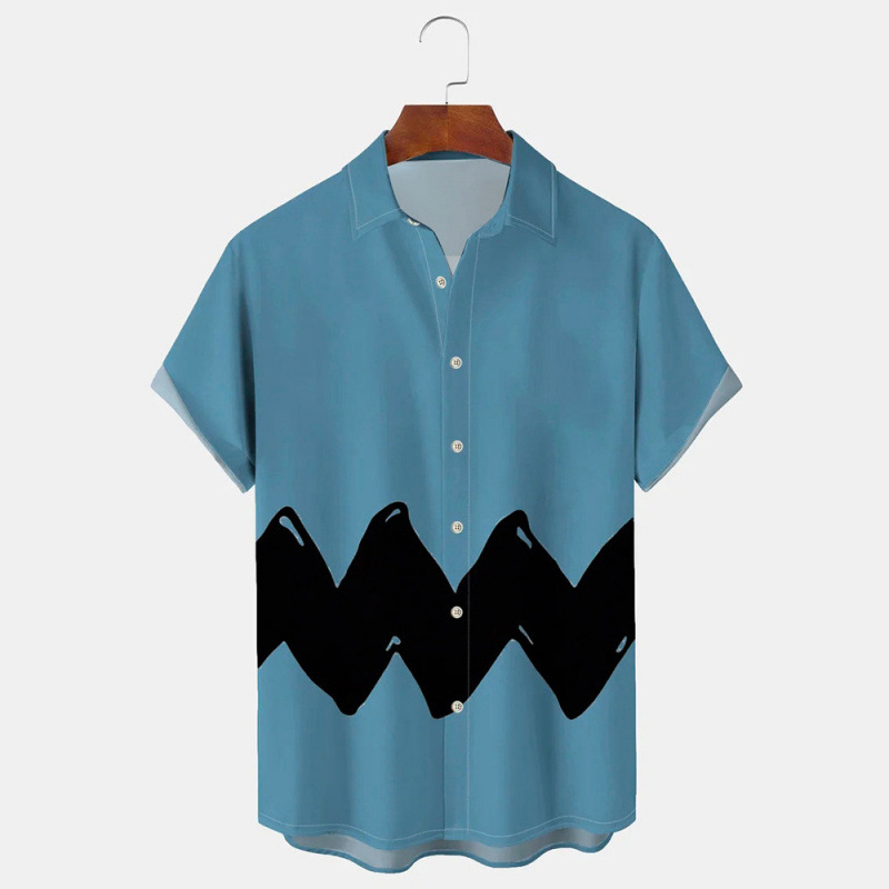 새로운 패션 남성 셔츠 캐주얼 스트라이프 셔츠 하와이 3D 인쇄 반팔 탑 셔츠