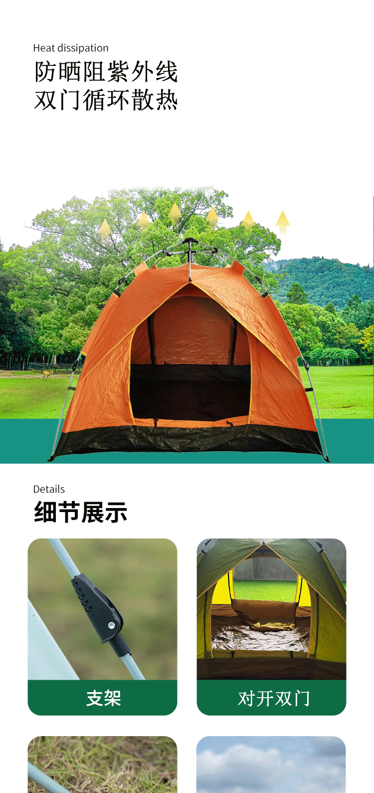 간단한 야외 캠핑 텐트 태양 보호 2 인 야외 야외 외출 무료 빠른 오프닝 파크 해변 텐트 접기스토어 가기