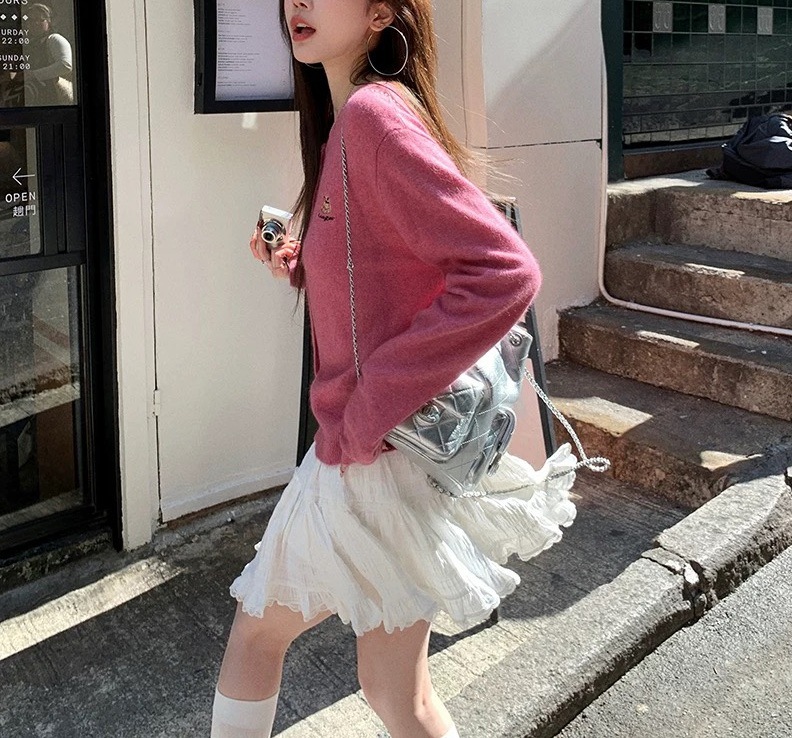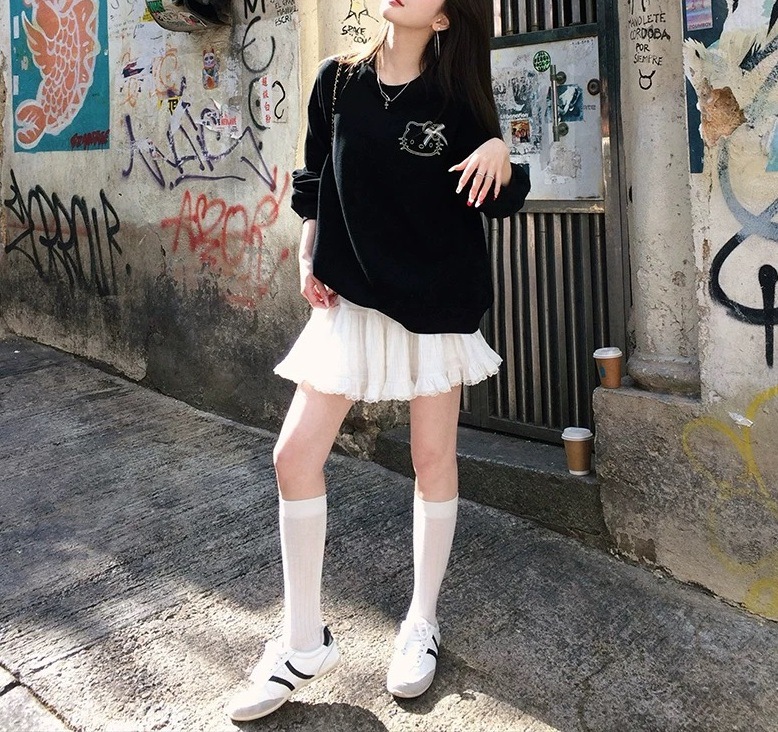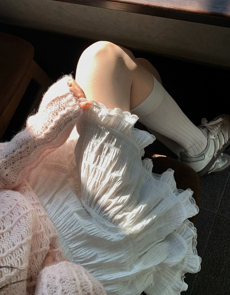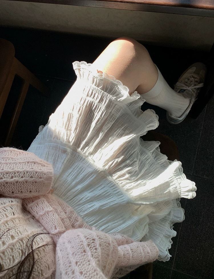 레이스 스플라이싱 첫사랑 케이크 MINI 스커트 캐주얼하고 활용도가 높은 신축성 있는 허리 스커트스토어 가기