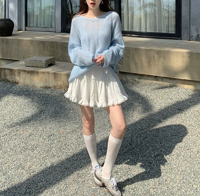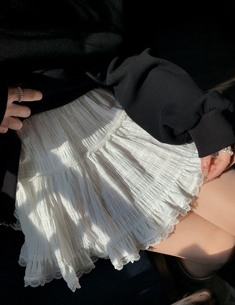 레이스 스플라이싱 첫사랑 케이크 MINI 스커트 캐주얼하고 활용도가 높은 신축성 있는 허리 스커트