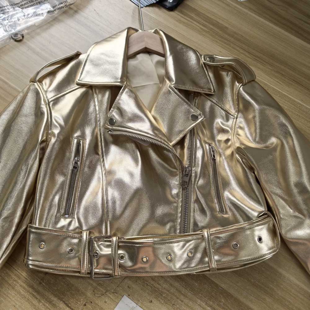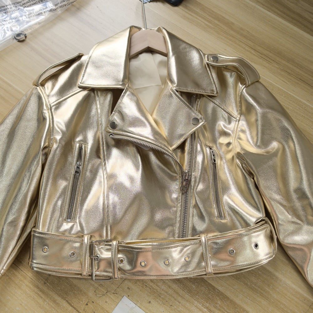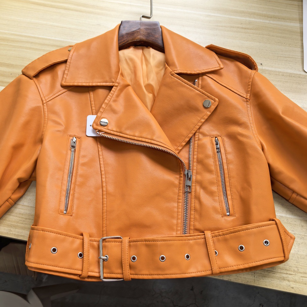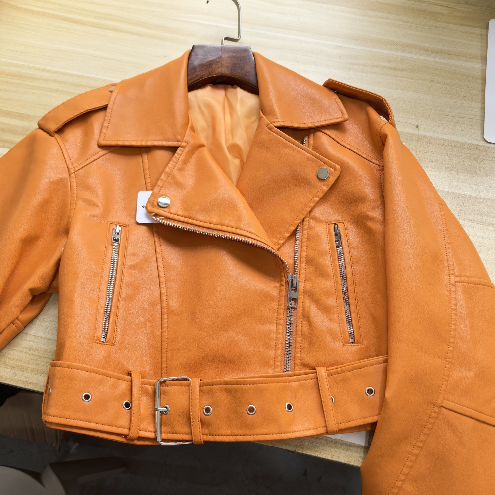 여성의 봄과 가을 여성의 새로운 옷깃 짧은 재킷 스타일 오토바이 패션 캐주얼 유럽과 미국 스타일의 슬림 가죽 자켓