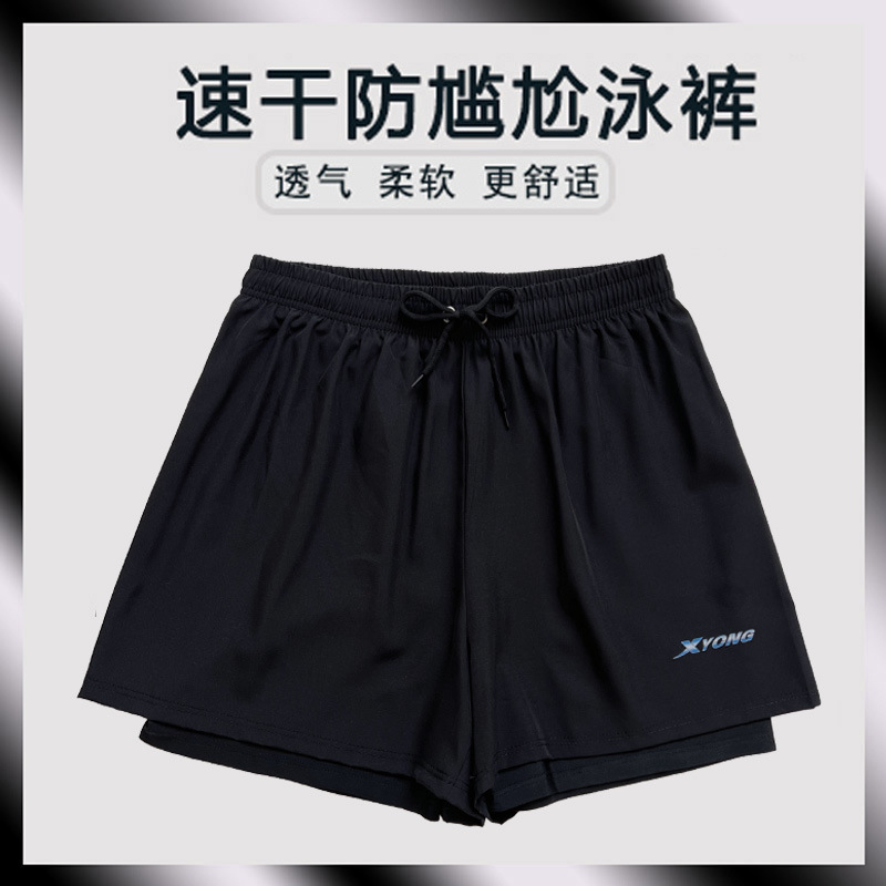 남성 수영 트렁크 성인 플러스 사이즈 빠른 건조 더블 레이어 방황 수영 트렁크 느슨한 해변 홀리데이 비치 트렁크 온천