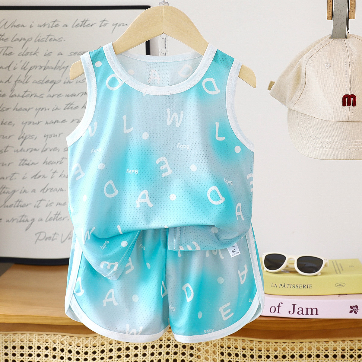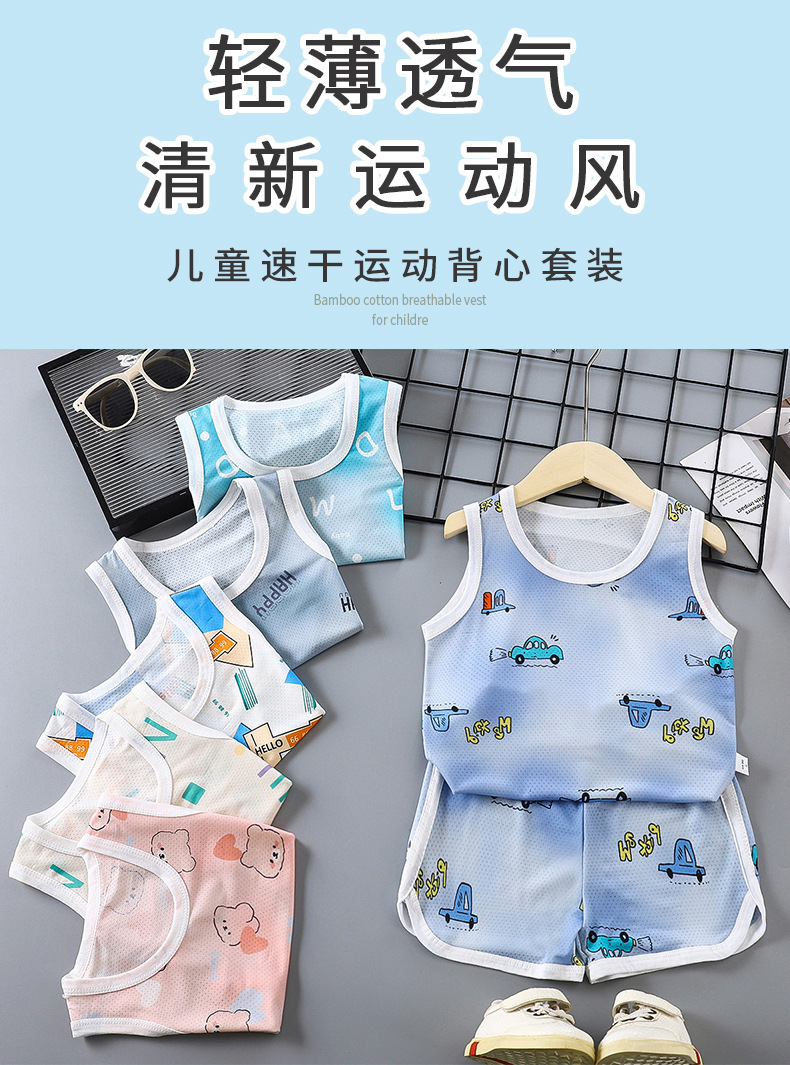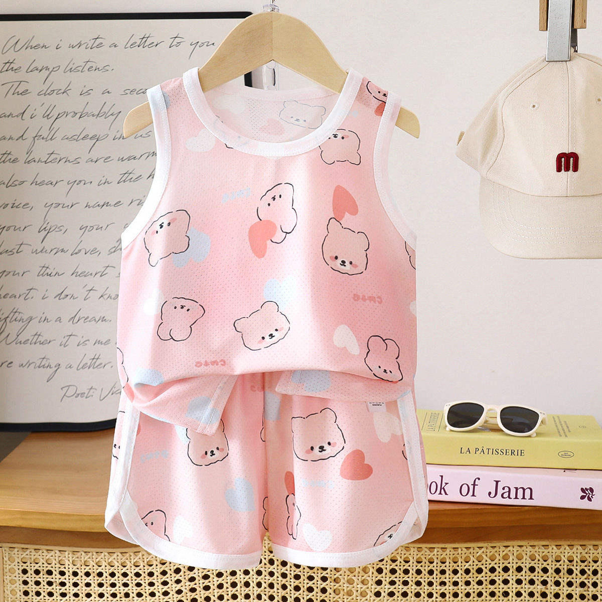 아동용 조끼 세트, 아이스 실크 민소매 여아용 슬리브리스, 속건성 의류, 남아용 메쉬 얇은 아동복, 만화 캐릭터 풀오버스토어 가기