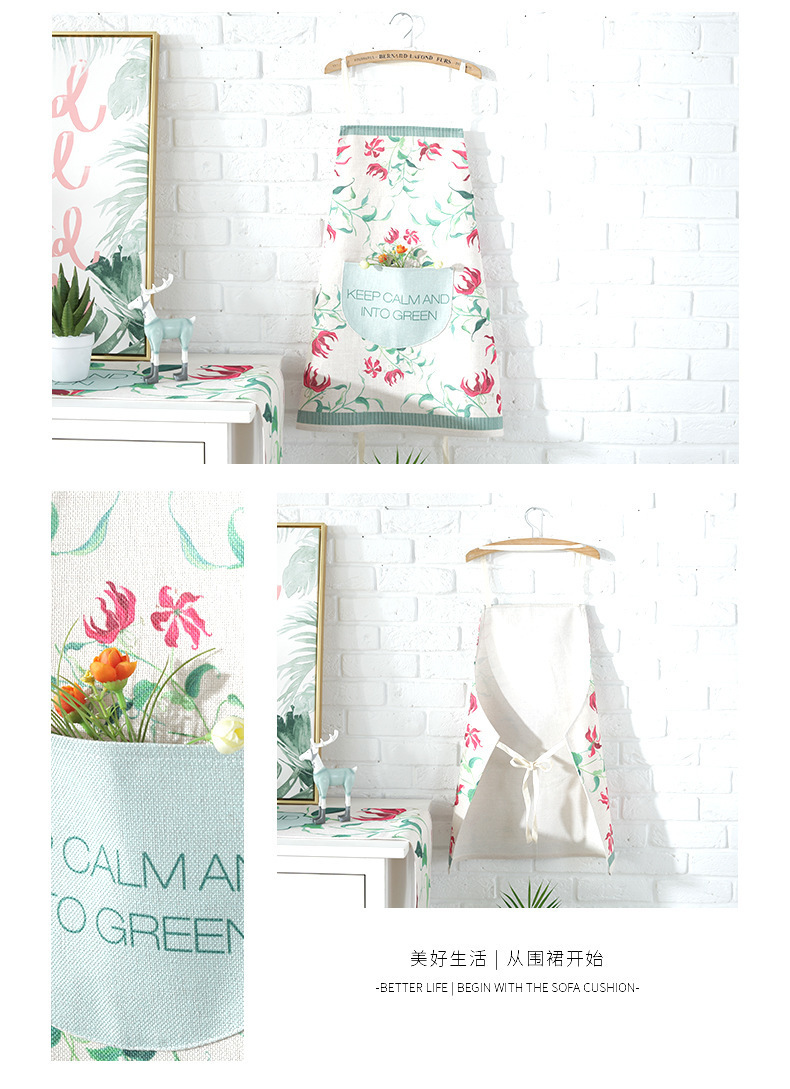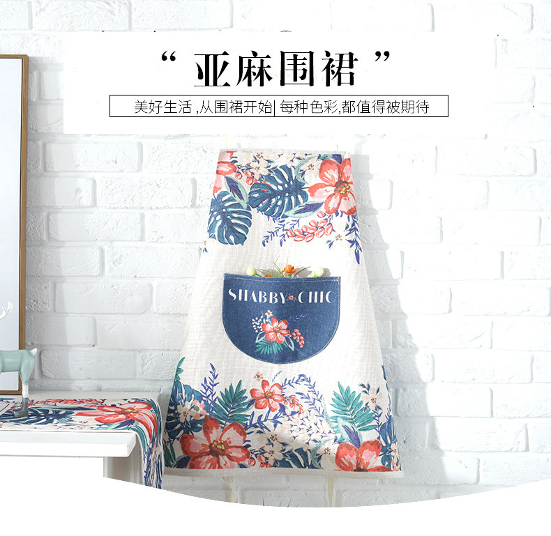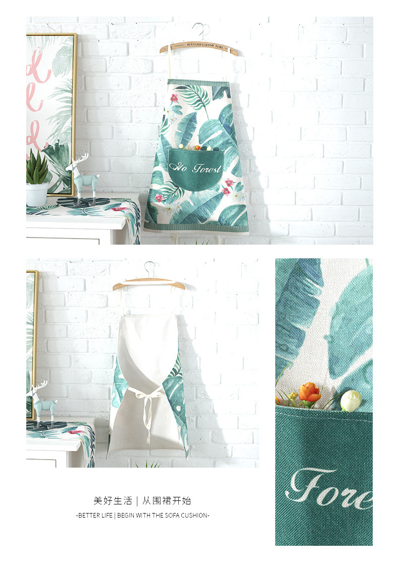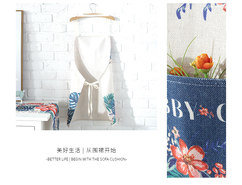 ∝작고 신선한 린넨 앞치마 면 및 린넨 홈 주방 앞치마 슬리브 베이킹 작업복 베이커리 하프 길이 LS