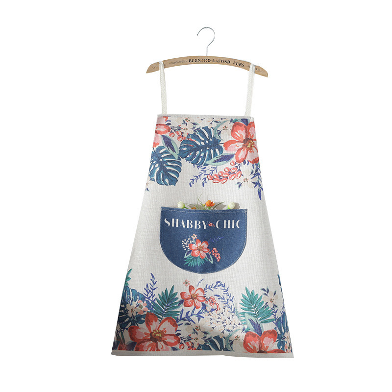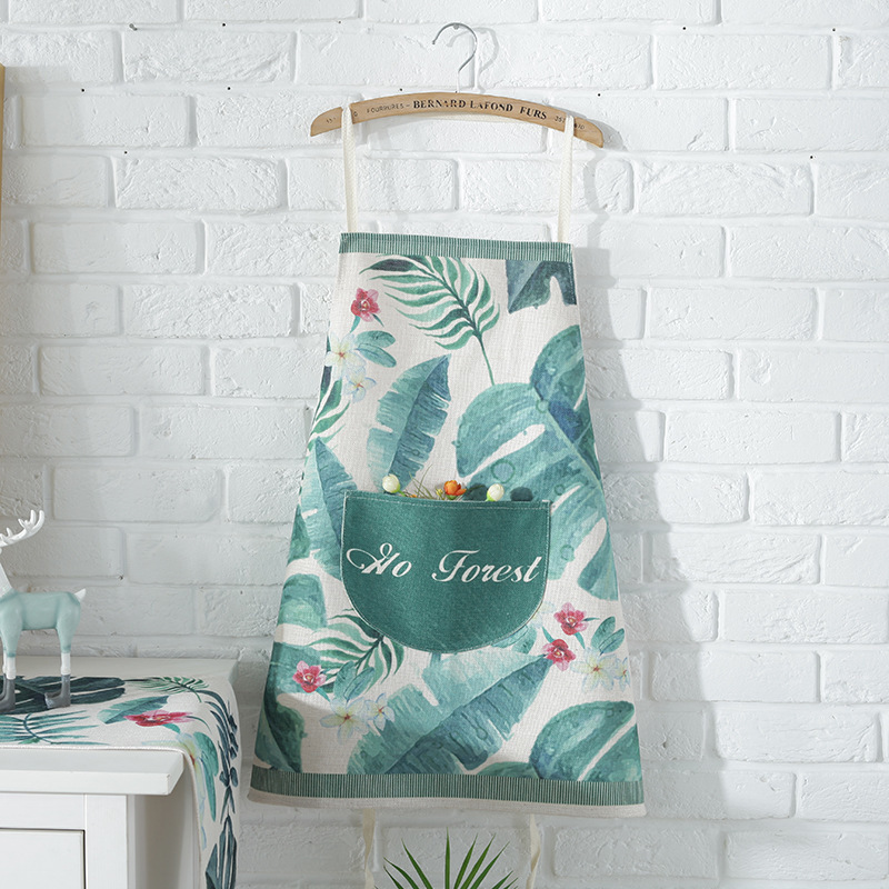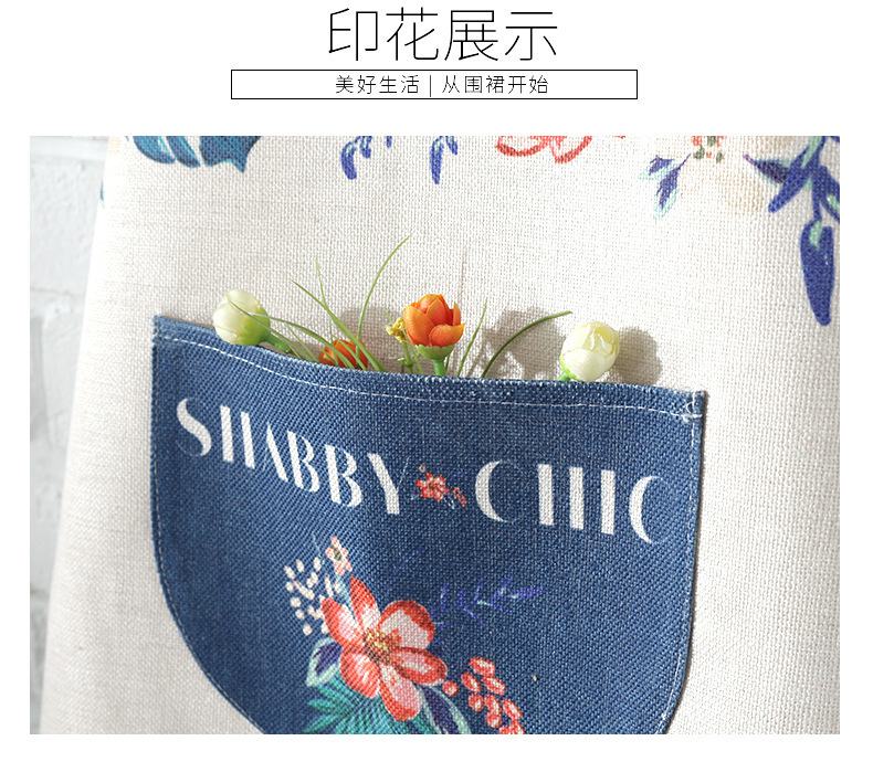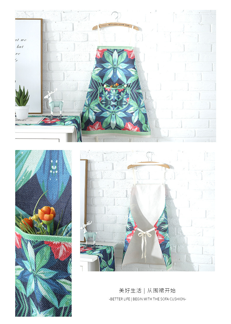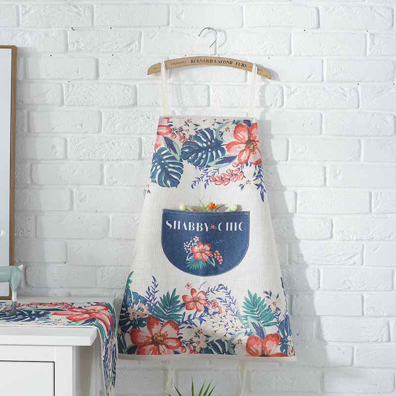 ∝작고 신선한 린넨 앞치마 면 및 린넨 홈 주방 앞치마 슬리브 베이킹 작업복 베이커리 하프 길이 LS