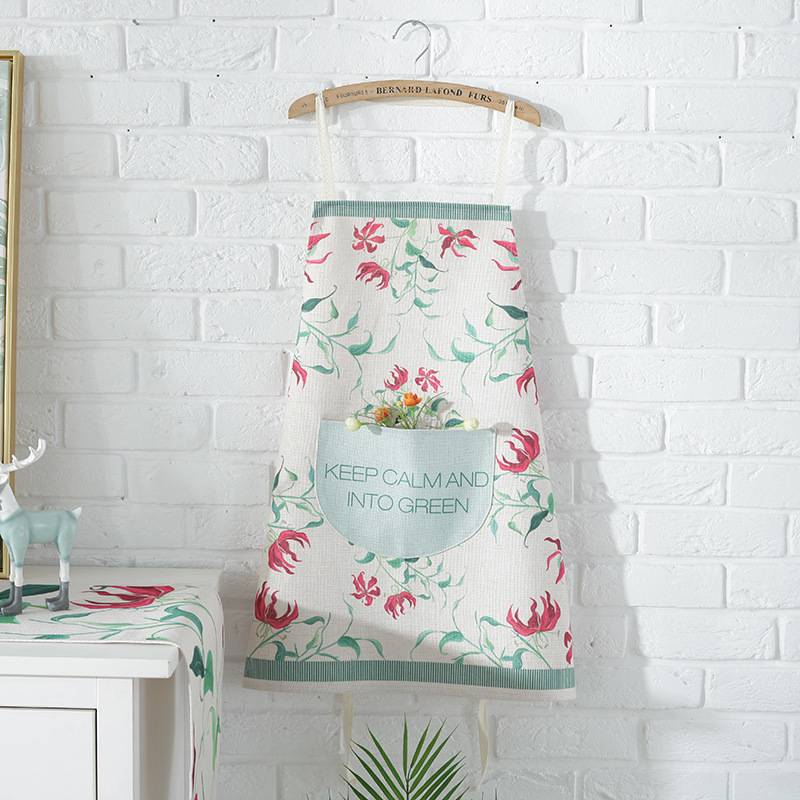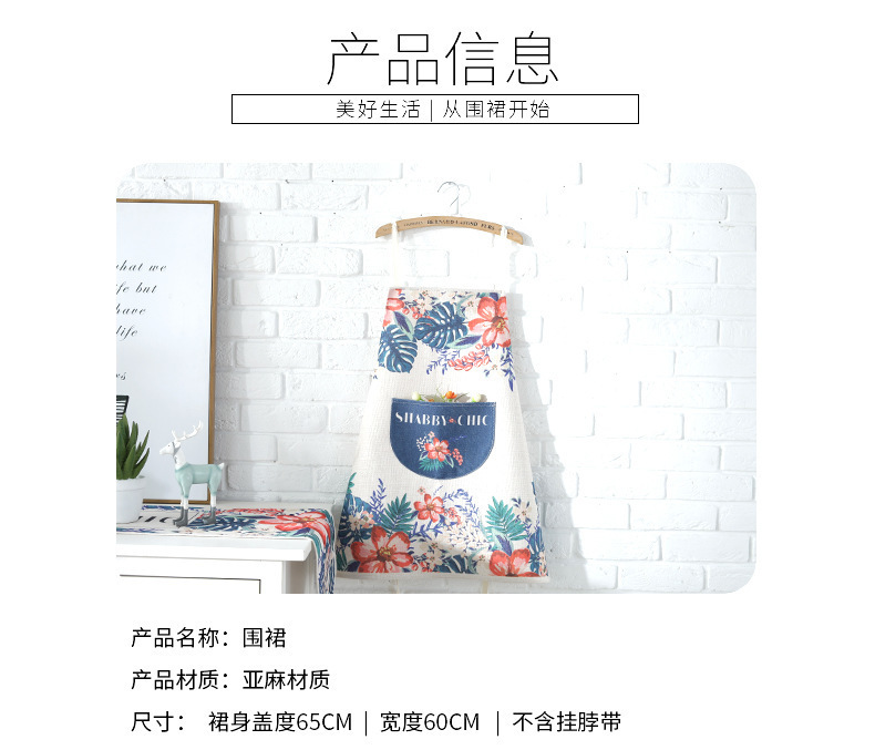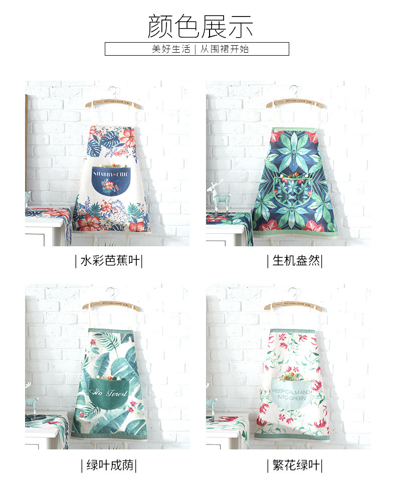 ∝작고 신선한 린넨 앞치마 면 및 린넨 홈 주방 앞치마 슬리브 베이킹 작업복 베이커리 하프 길이 LS스토어 가기