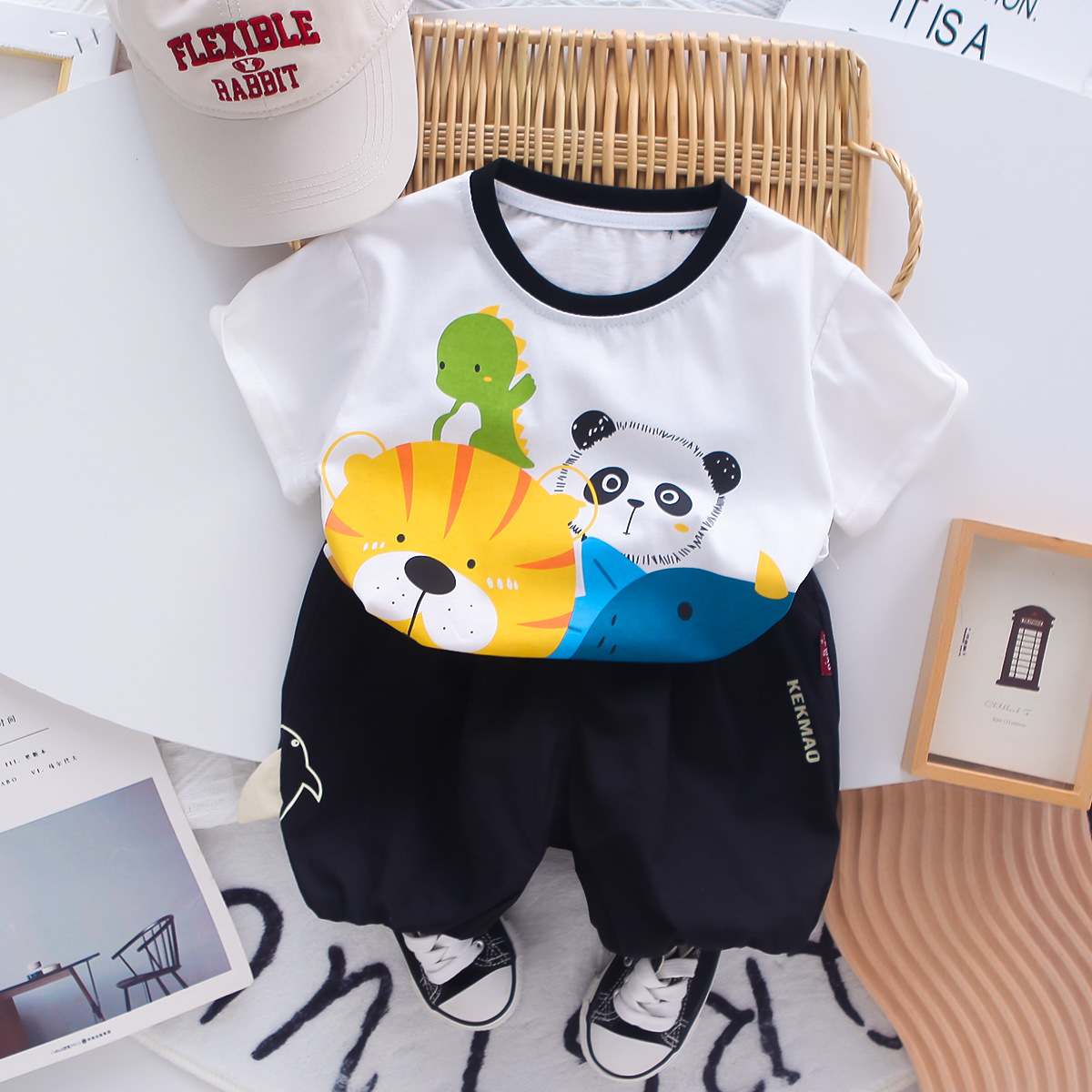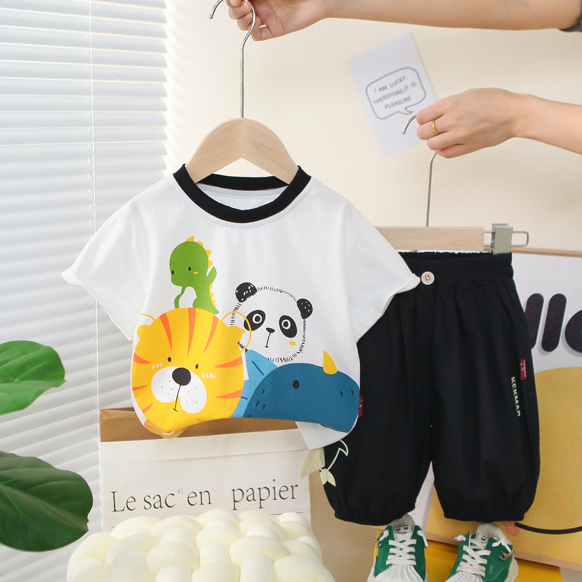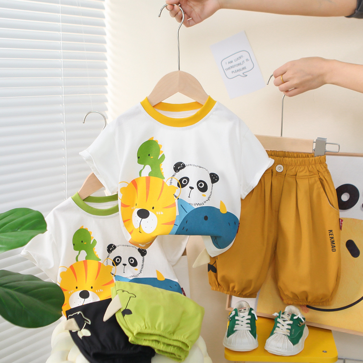 아기 티셔츠 여름 소년과 소녀 아기 어린이 여름 반팔 탑 캐주얼 반팔 투피스 세트스토어 가기