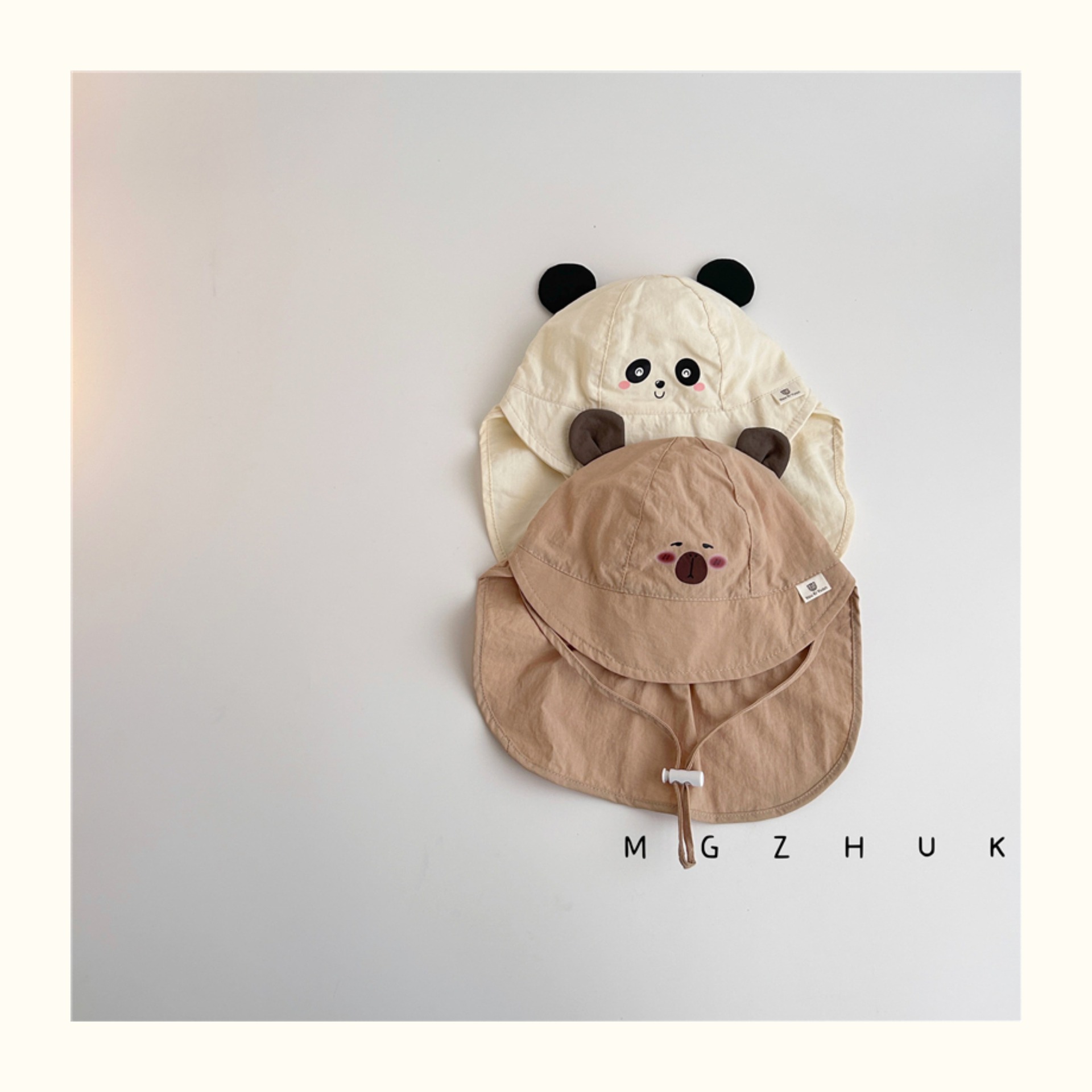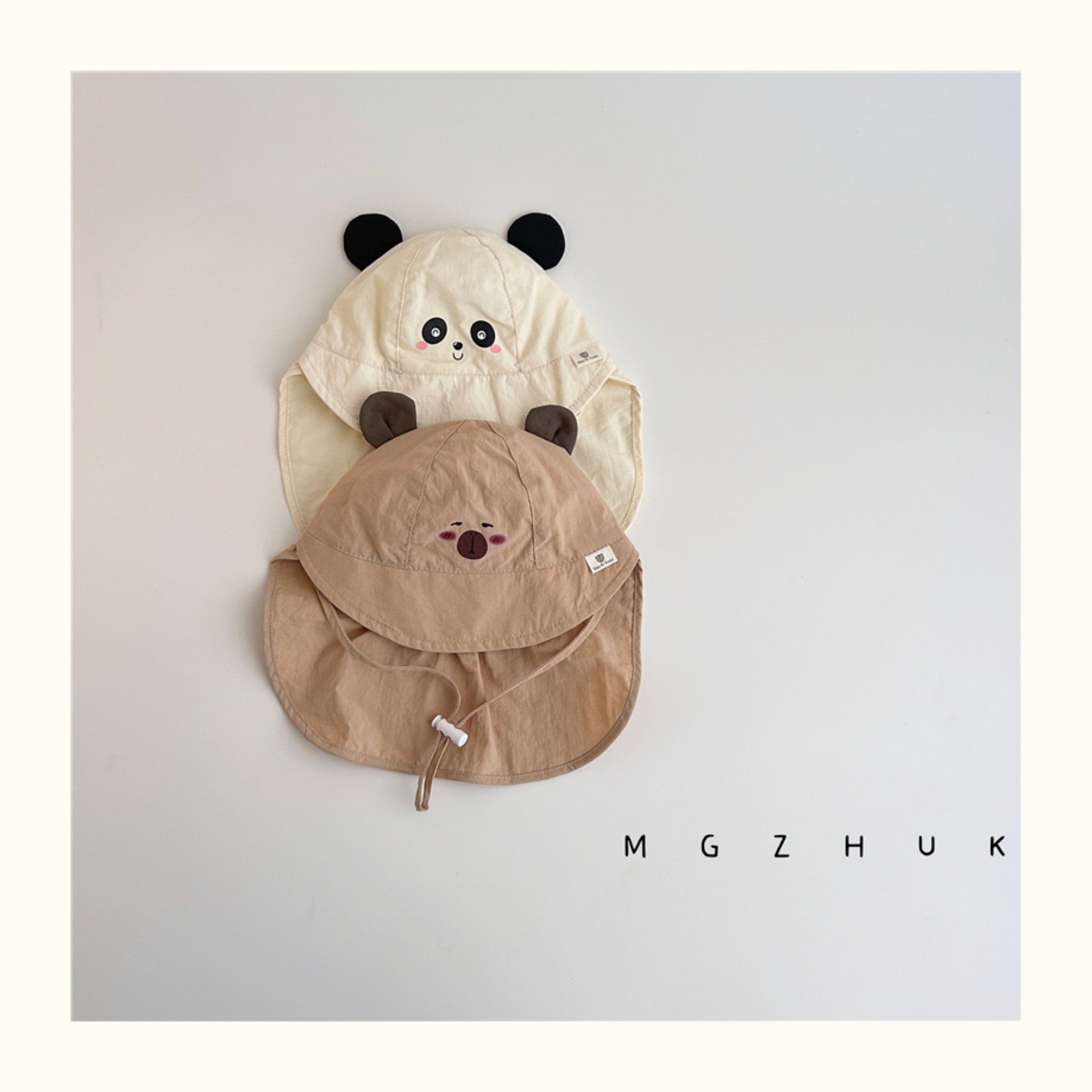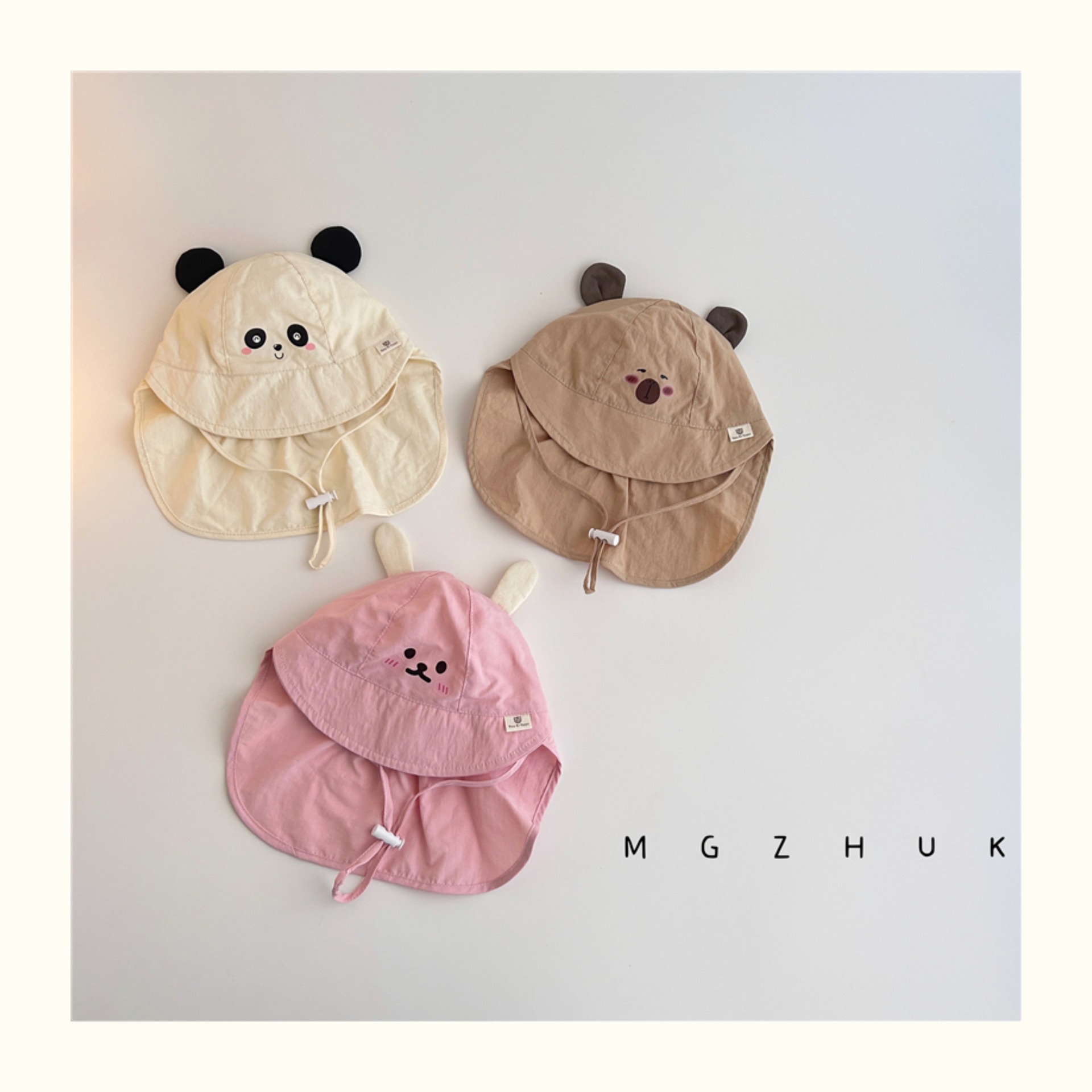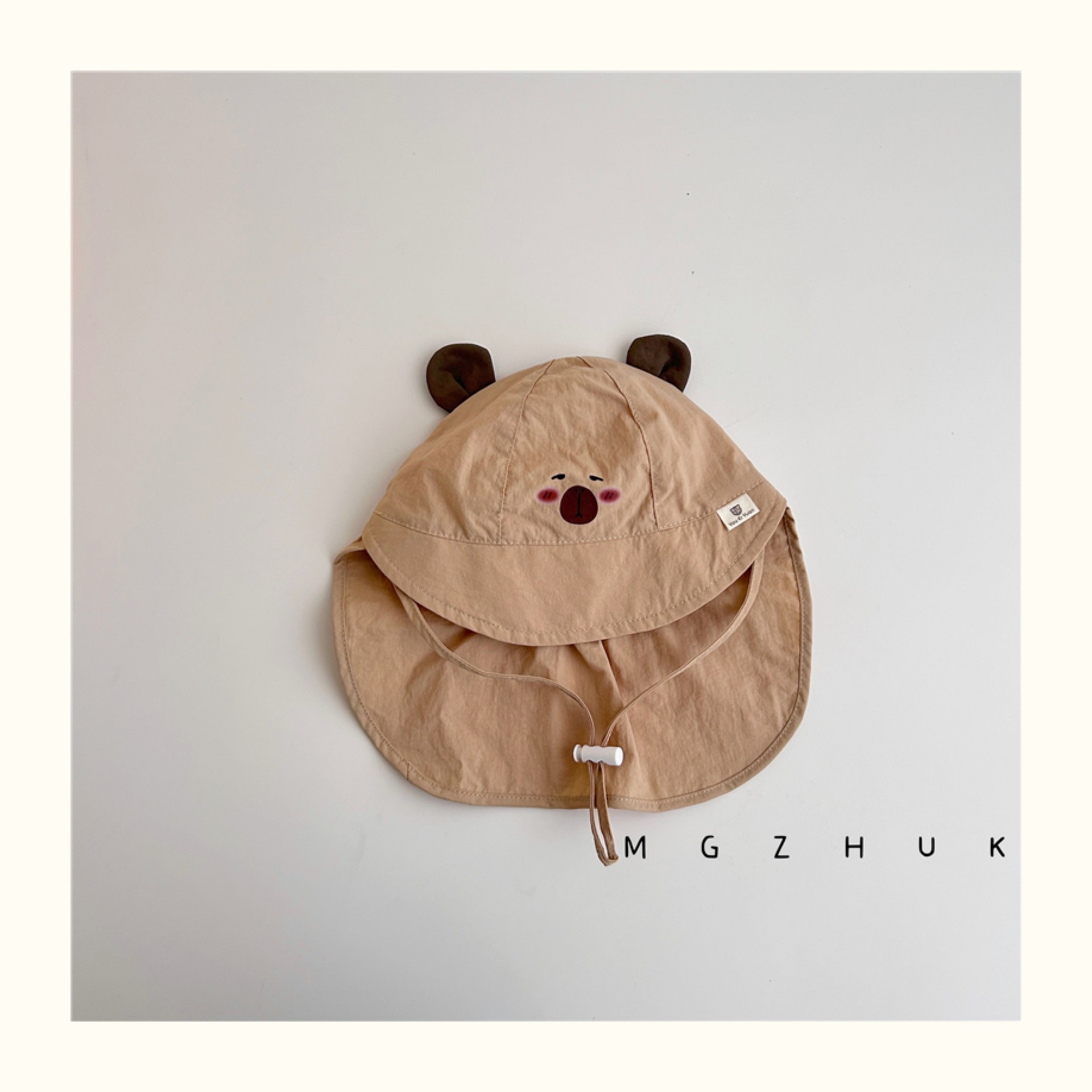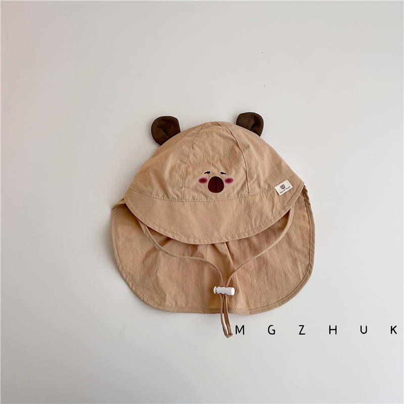 아기 선스크린 모자 여름 큰 브림 목도리 아기 햇빛 모자 야외 빠른 건조 통기성 곰 어부 모자 트렌디스토어 가기