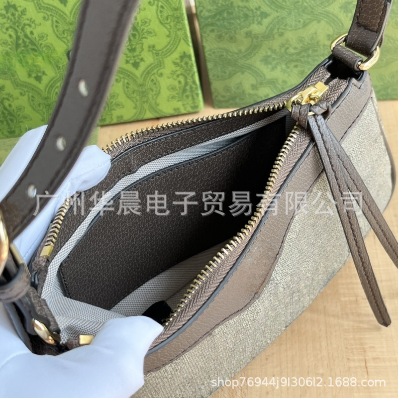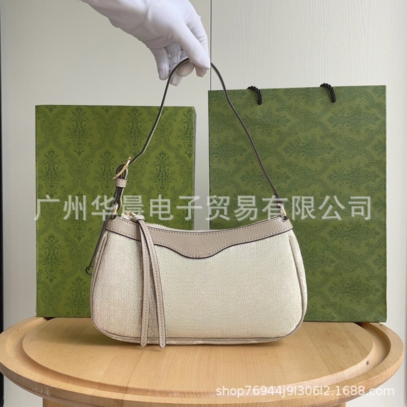 2023 새로운 정품 가죽 소 가죽 겨드랑이 가방 초승달 가방 딸기 펜던트 어깨 크로스 바디 캔버스 가방 핸드 헬드 여성 가방스토어 가기