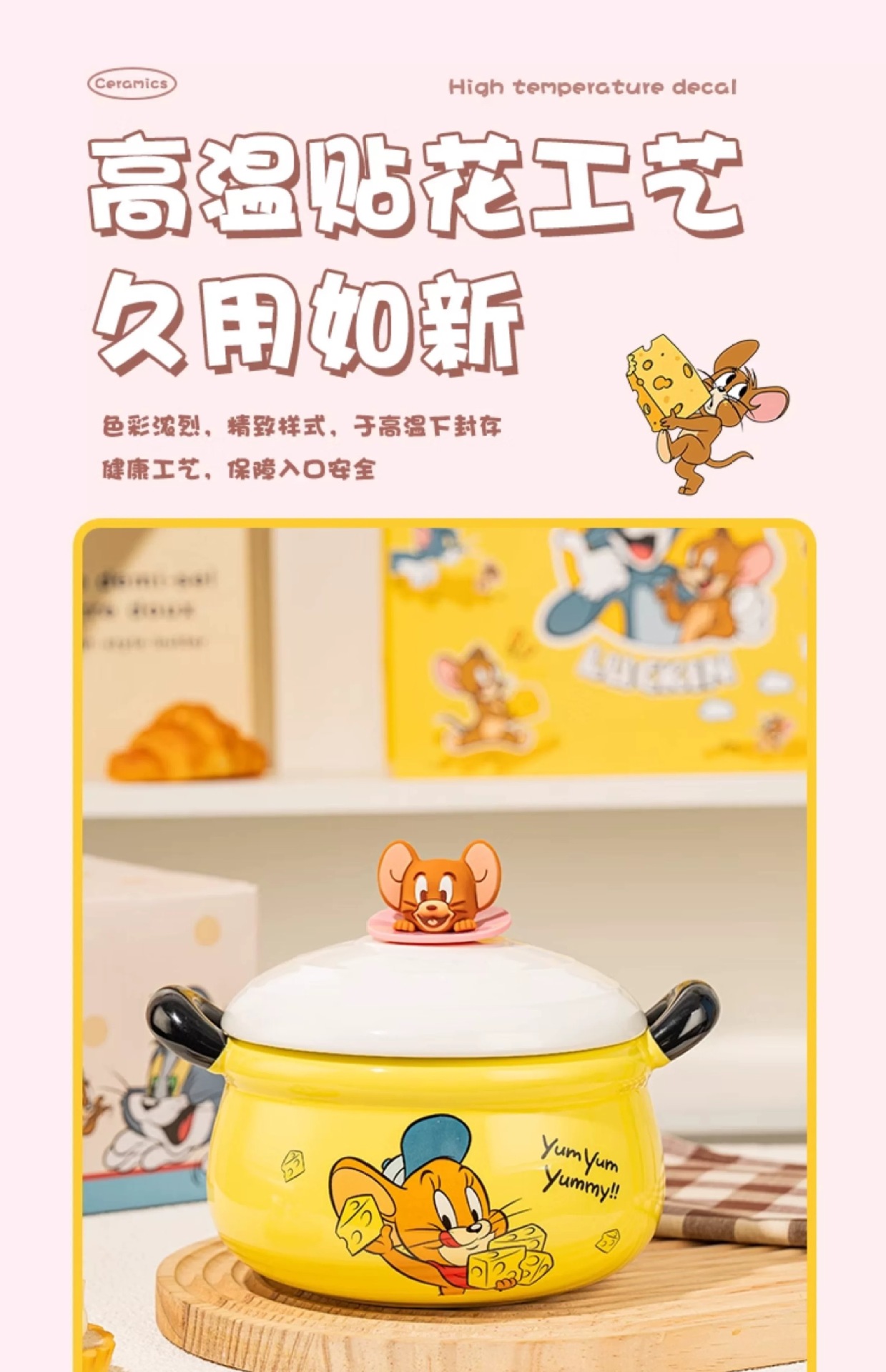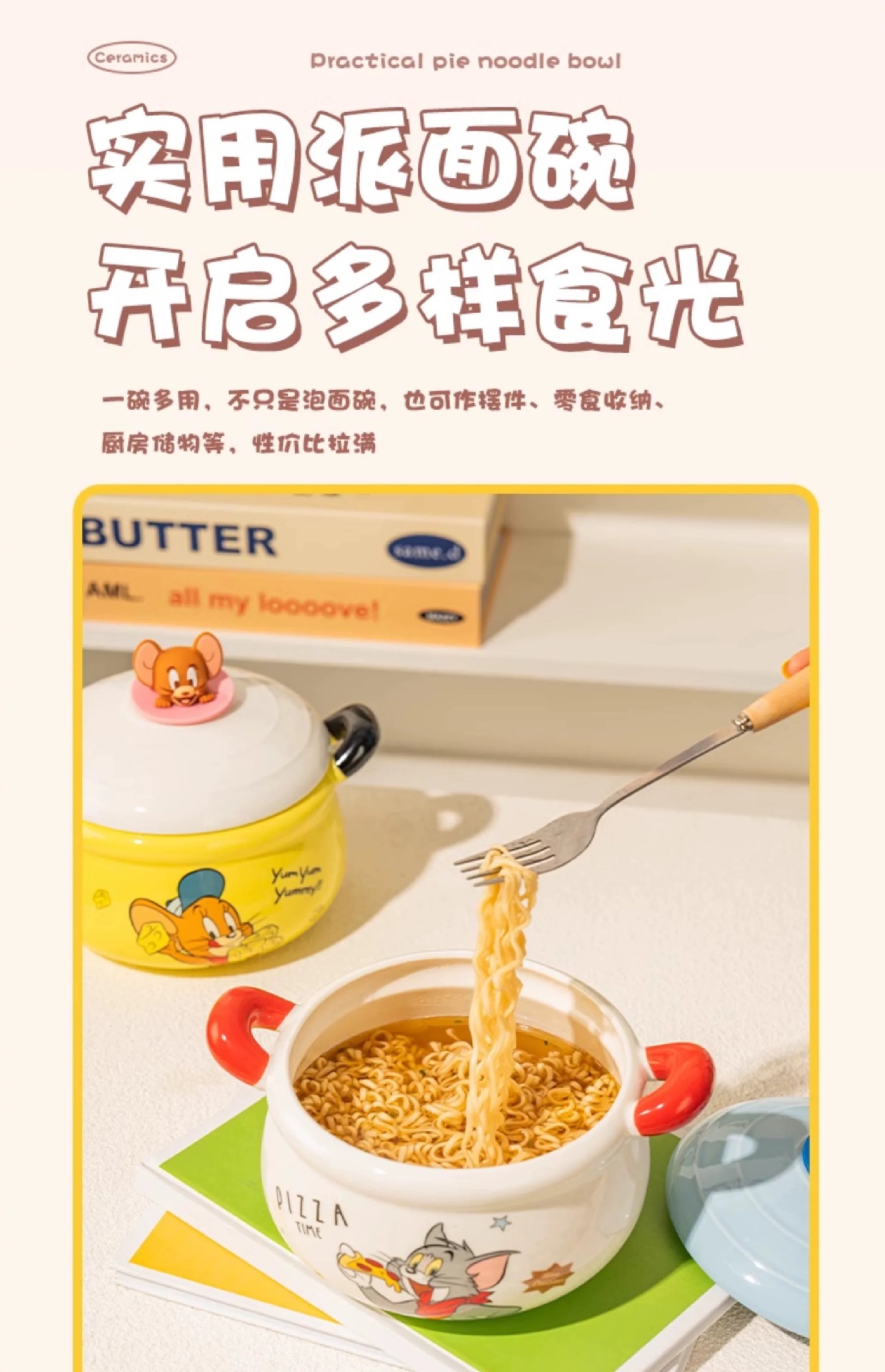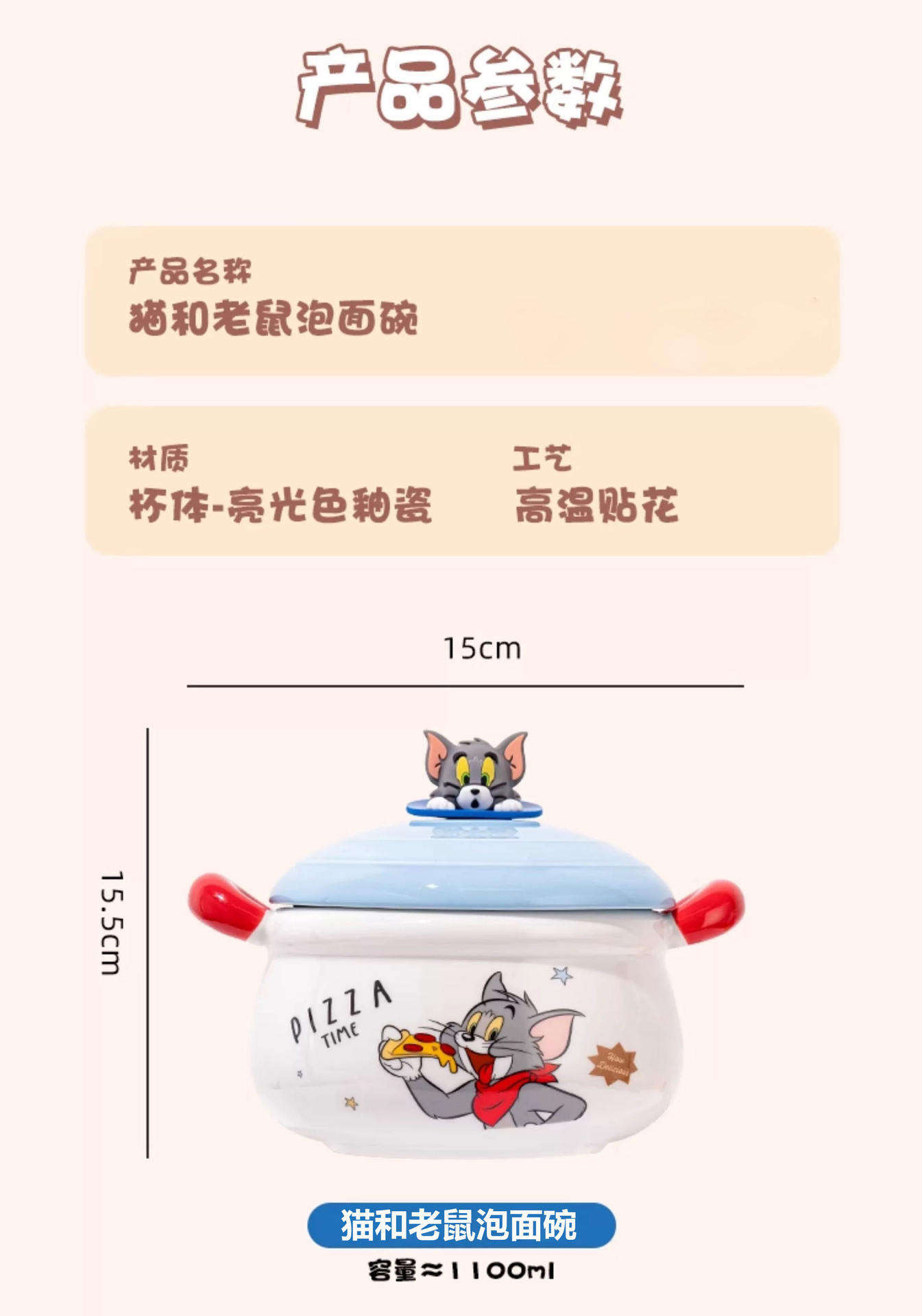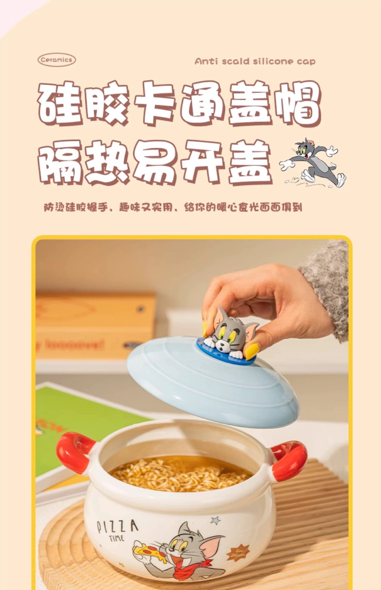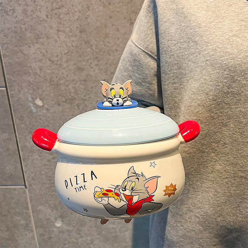 고양이와 마우스 학생 기숙사 가정용 고 가치 대용량 수프 그릇 손으로 선물하는 뚜껑이있는 세라믹 인스턴트 국수 그릇
