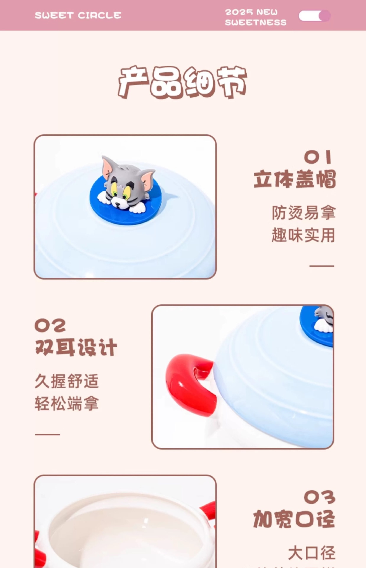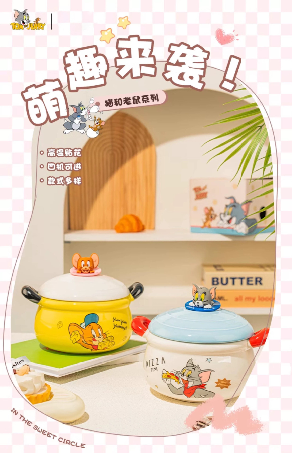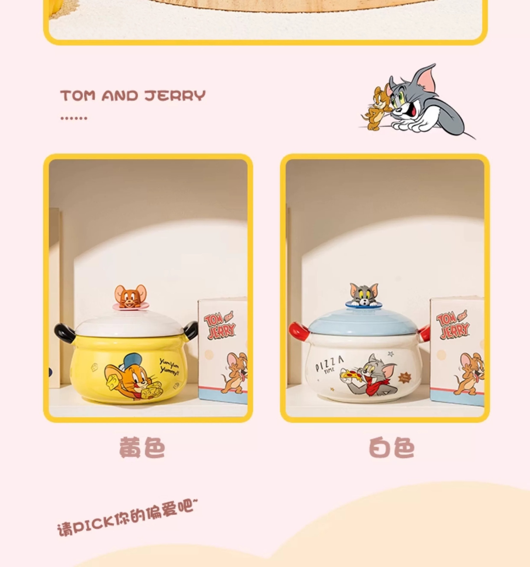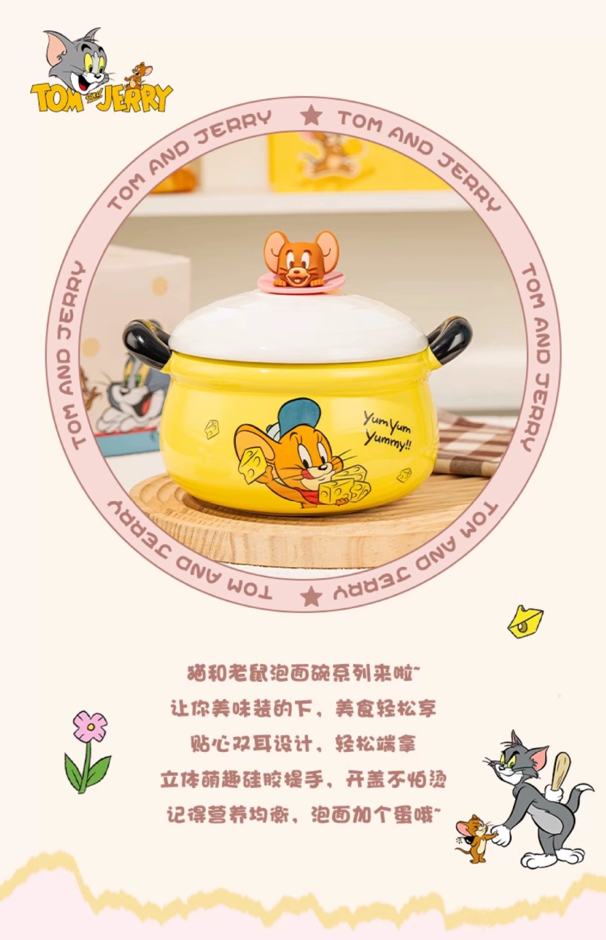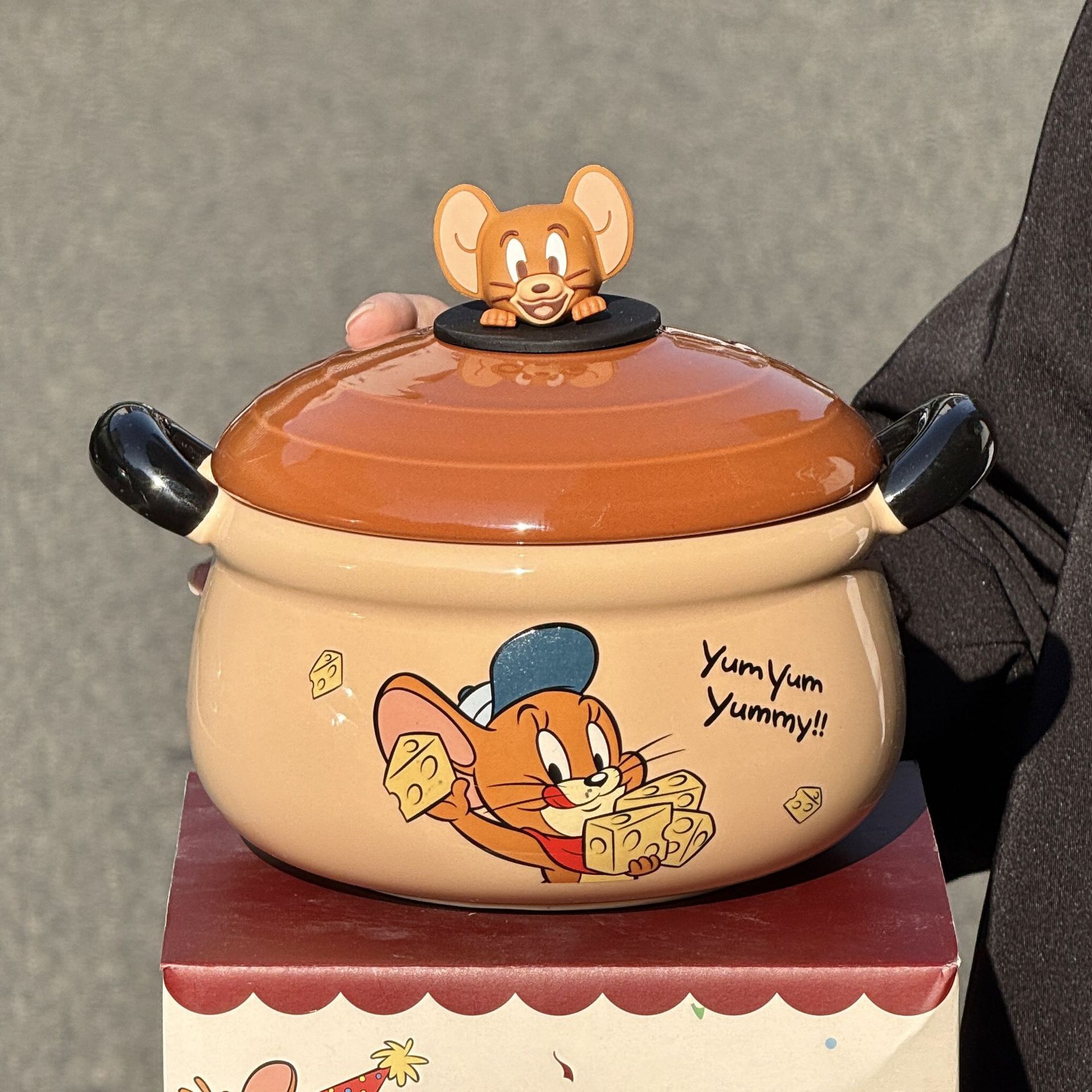 고양이와 마우스 학생 기숙사 가정용 고 가치 대용량 수프 그릇 손으로 선물하는 뚜껑이있는 세라믹 인스턴트 국수 그릇