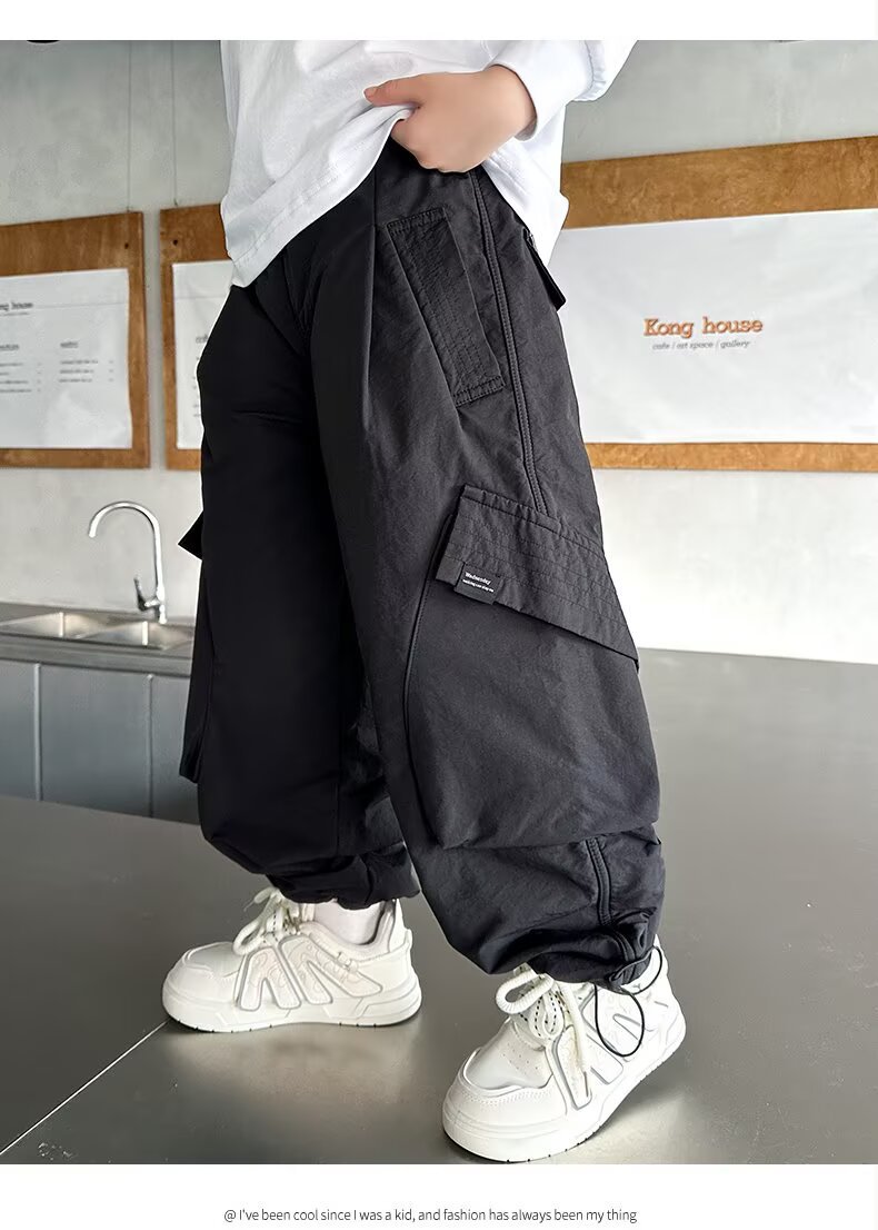 소년 크레인 바지 봄과 여름 2025 새로운 봄 어린이 봄 바지 캐주얼 스트레이트 빅 뚱뚱한 소년 잘 생긴 스타일스토어 가기