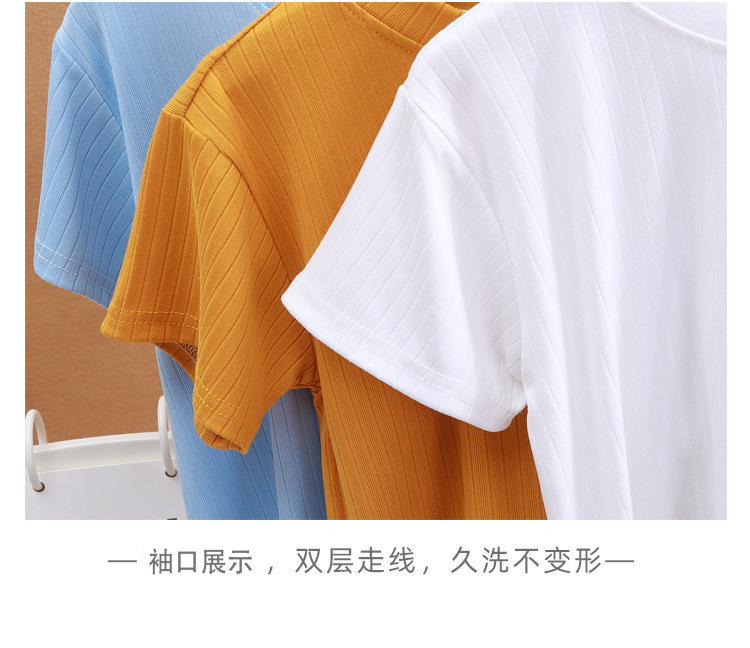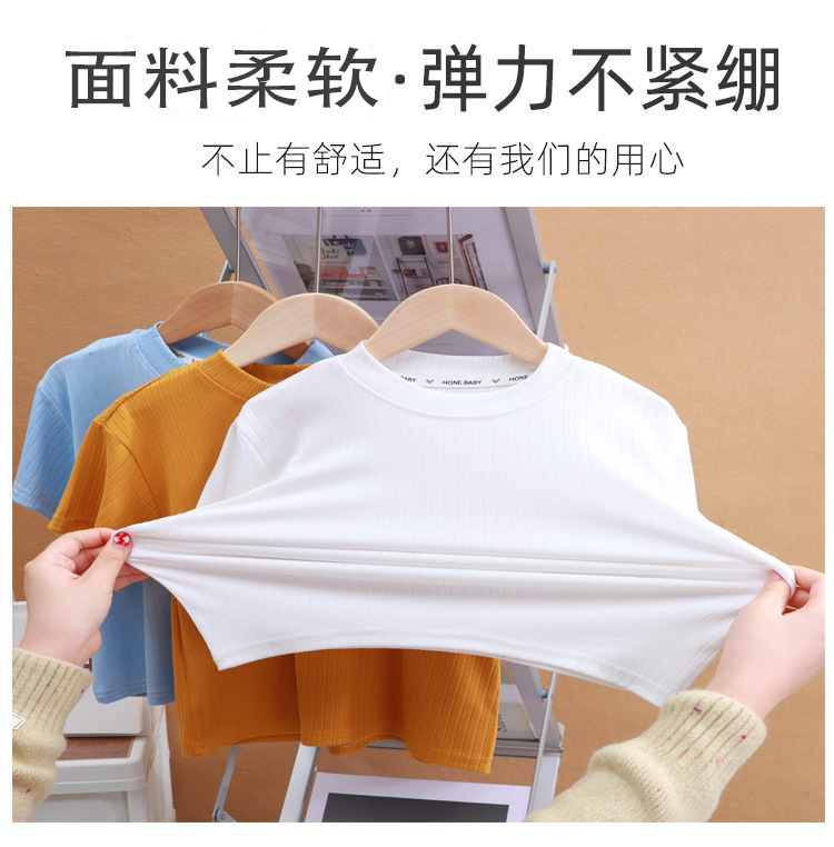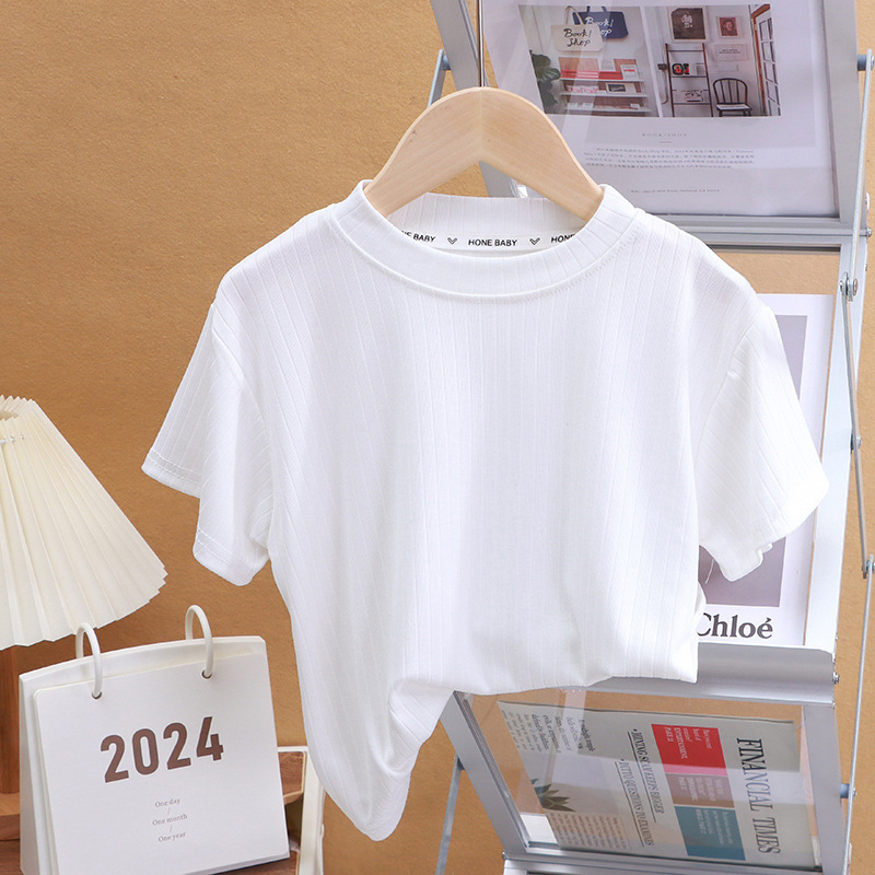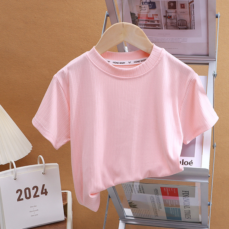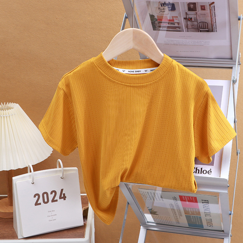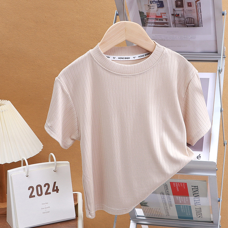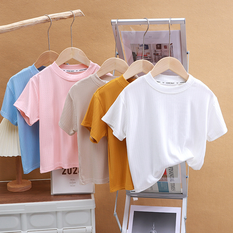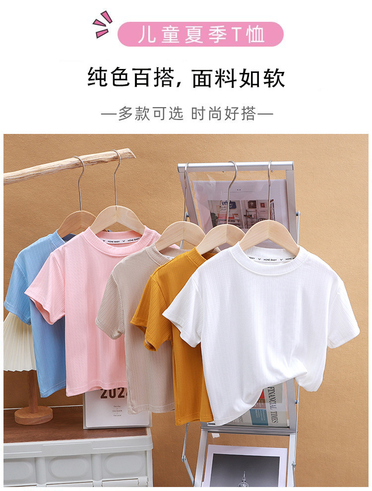 어린이 반소매 티셔츠 여름 아이스 실크 패션 조커 소년 소녀 싱글 피스 라운드 넥 반소매 솔리드 컬러 탑 아동복스토어 가기
