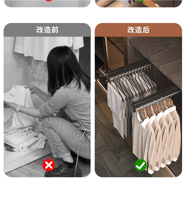 카베 바지걸이 옷장 내장형 상단 풀아웃 접이식 바지걸이 슬라이드 레일 수납 가정용 바지걸이 하드웨어 액세서리스토어 가기