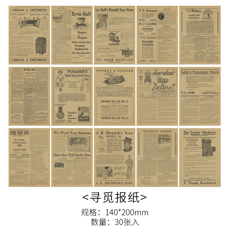 복고풍 영감 시리즈 가벼운 종이 30 장 재료 배경 백킹 손 계정 재료 장식 DIY 손 계정 신문스토어 가기